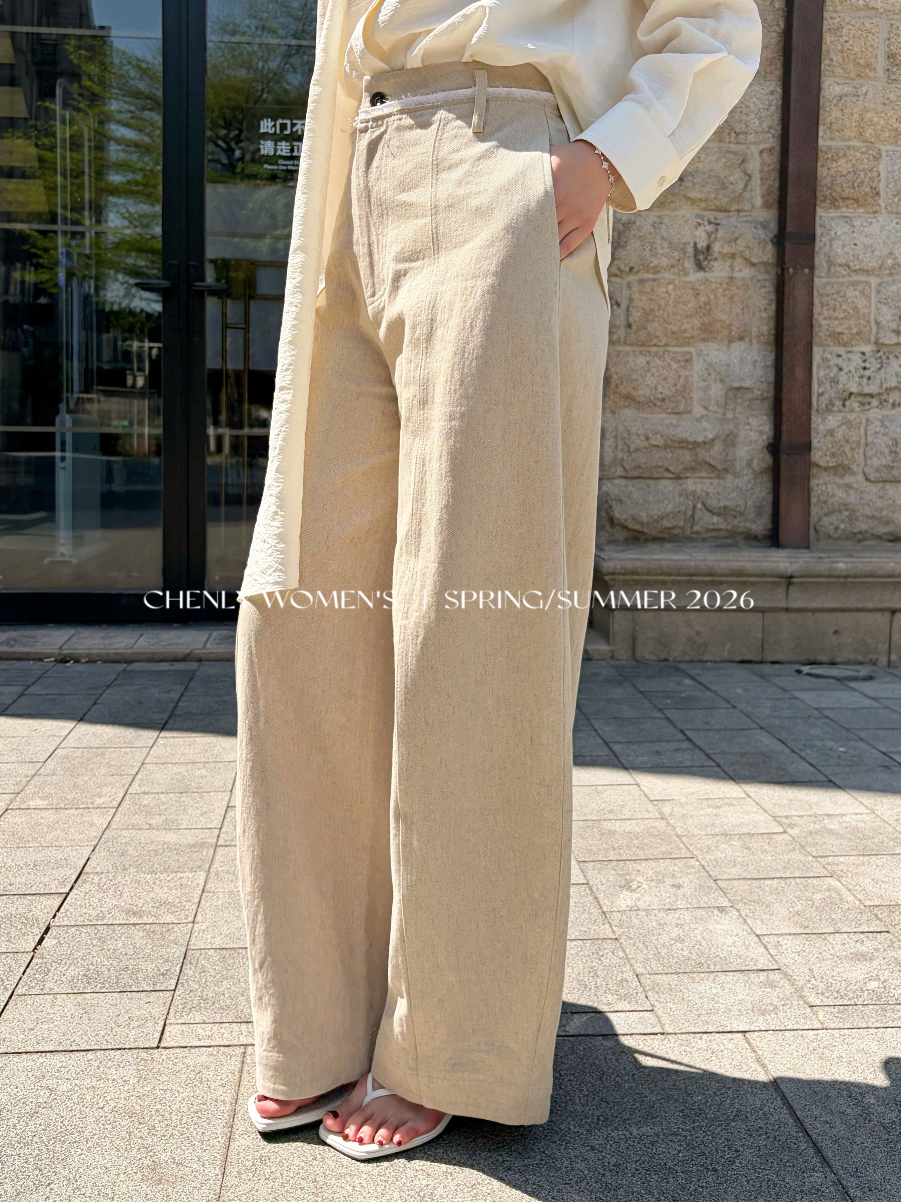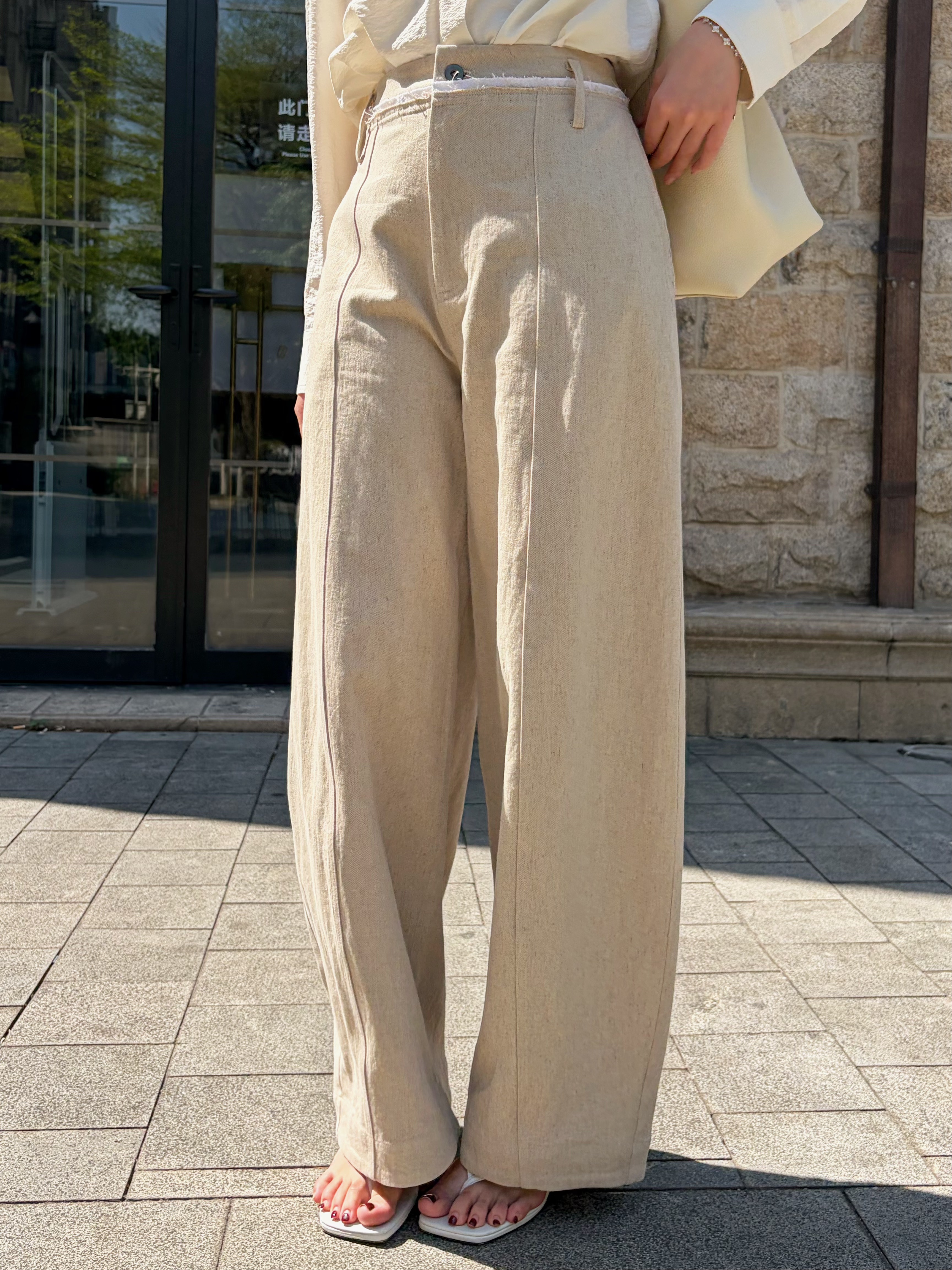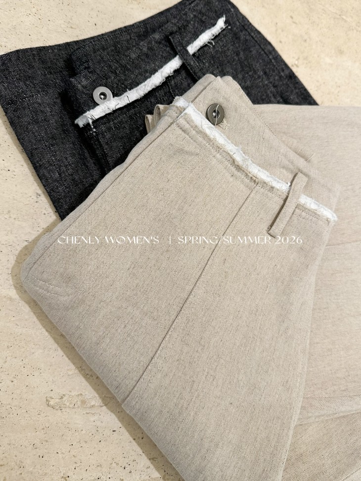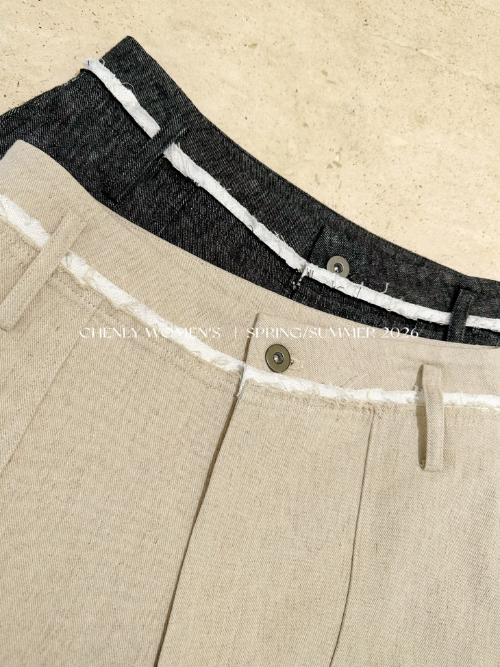 尘衣|26SS毛边撞色腰头镰刀亚麻裤