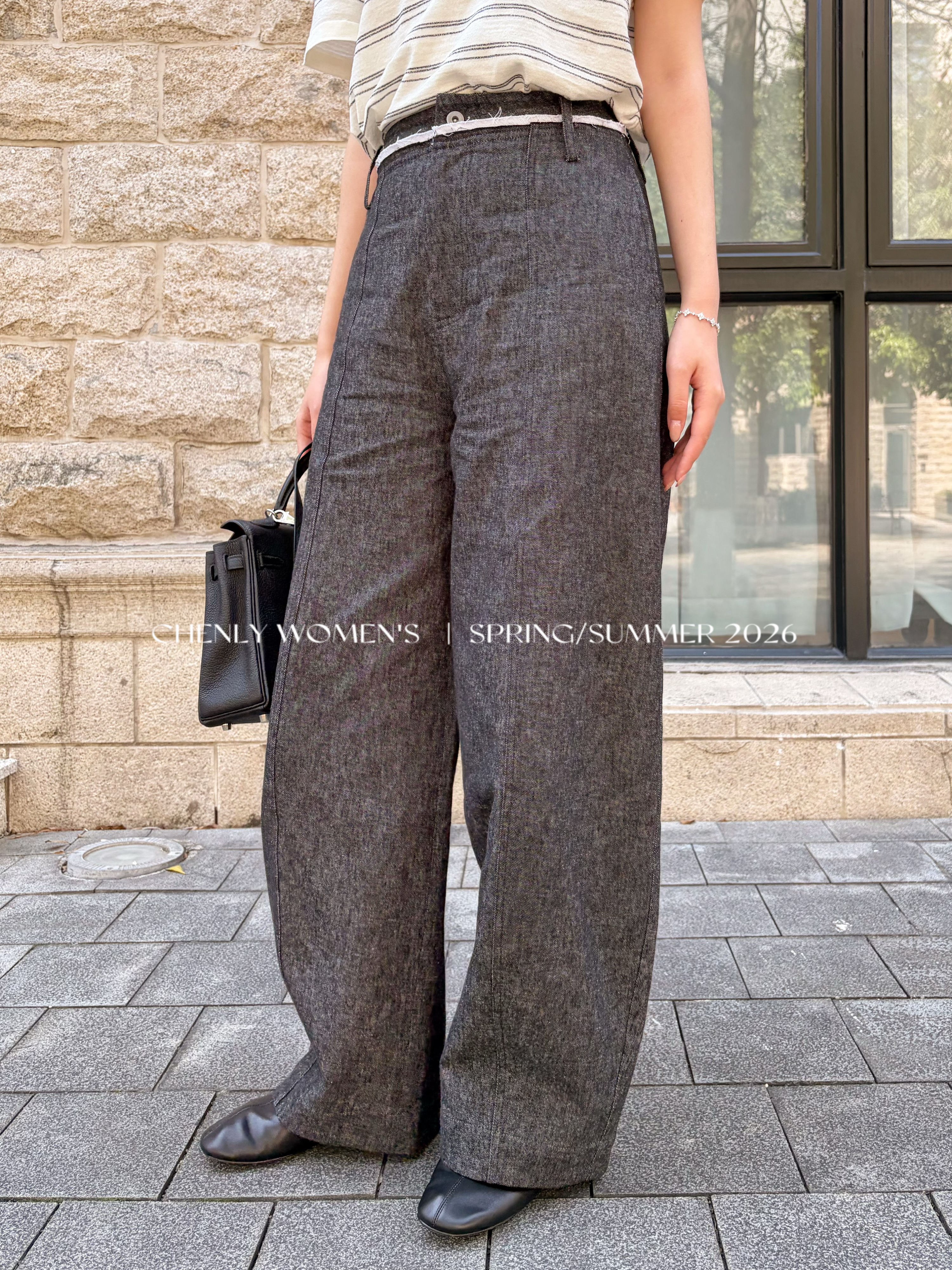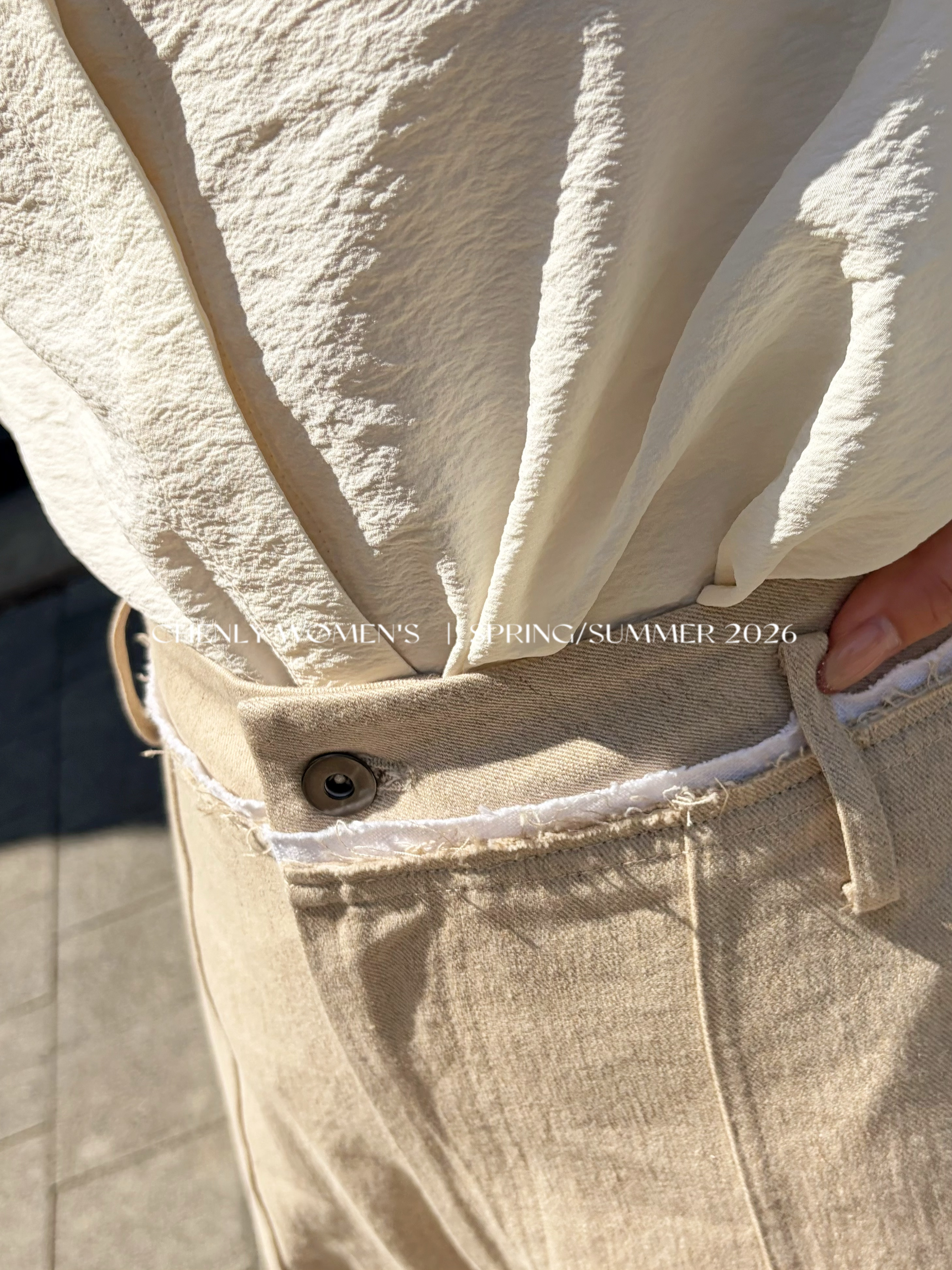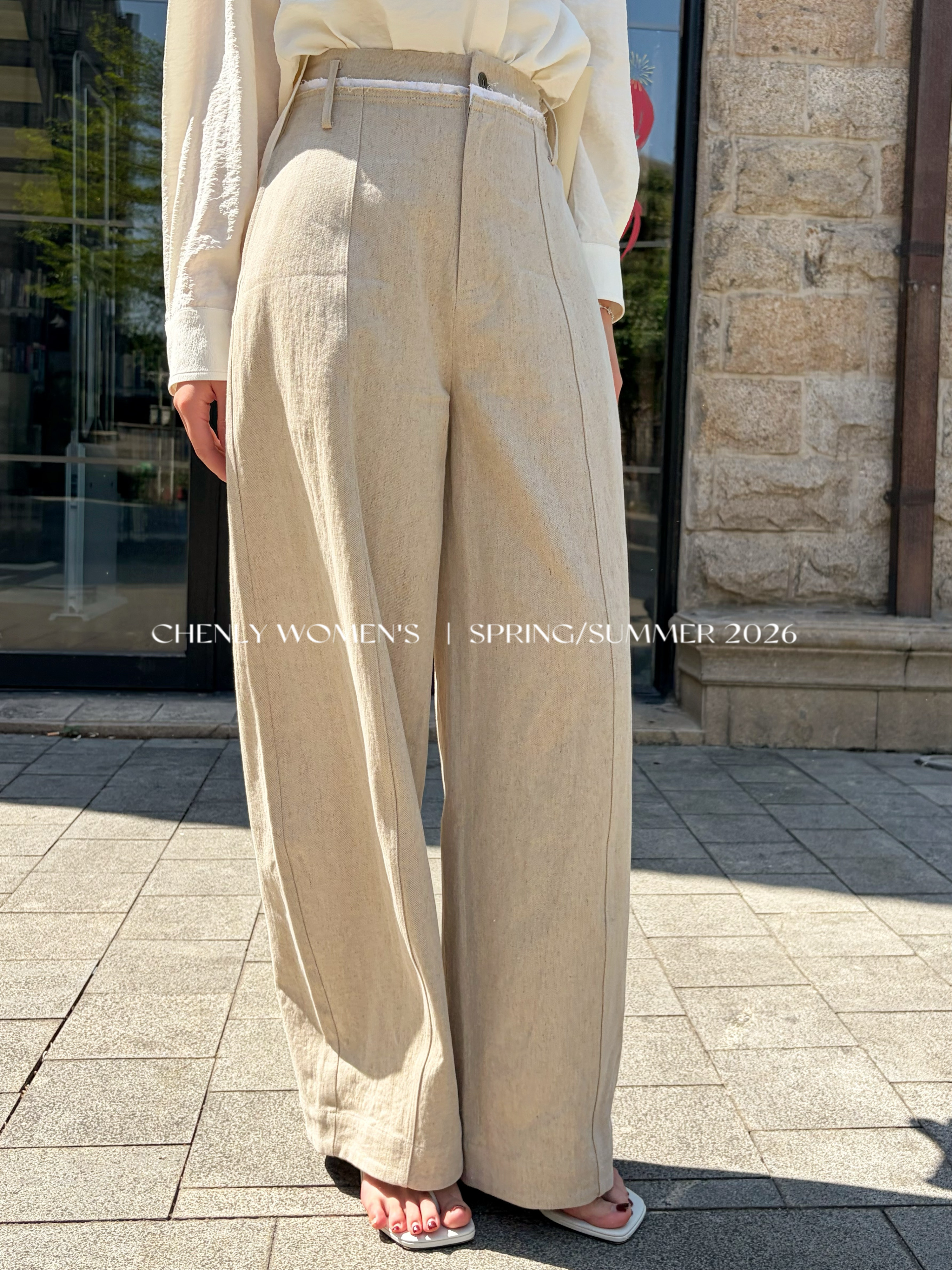 尘衣|26SS毛边撞色腰头镰刀亚麻裤