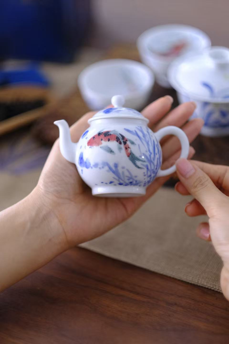 【景德镇纯手工陶瓷】功夫茶茶具青花加彩,薄胚盖碗宫灯茶壶谢浩飞老师手绘传统烧制 千年瓷都万年窑火,从泥到瓷的距离,是一千三百摄氏度茶当配器,青花加彩邂逅千年茶韵,茶以养人,器以聚香