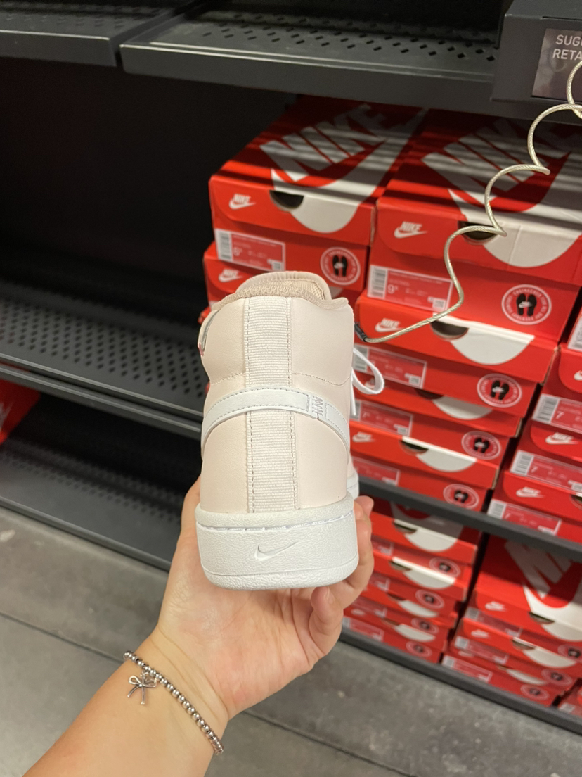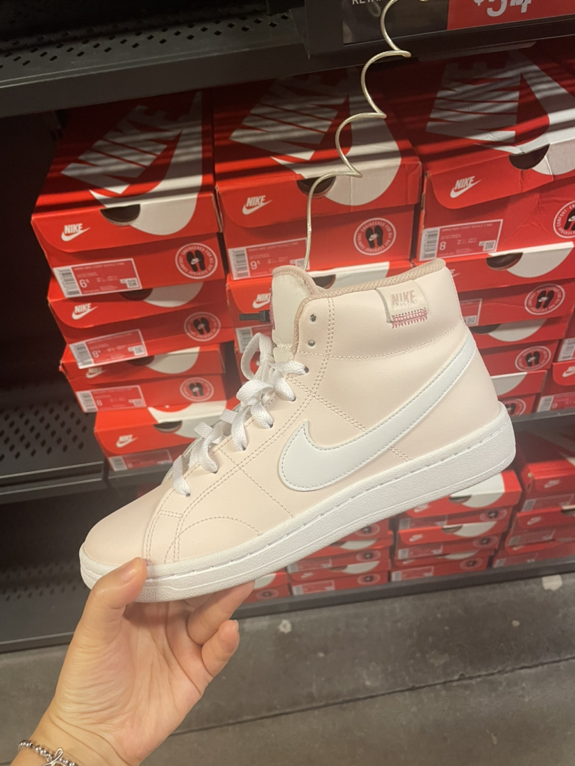 浅浅的粉色,配上白色的Nike Logo,中帮设计,保护脚踝,黄金尺码全,分分钟断货。