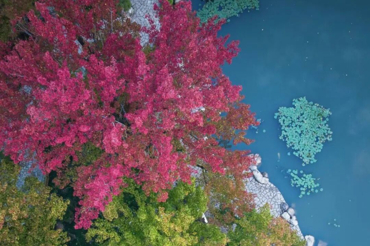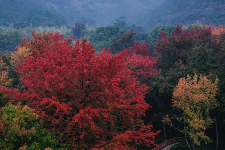 这里是中国四大赏枫地之一,秋风刮起漫山红枫,层林尽染,绝美五彩枫交错交融,让整座山美如诗画。