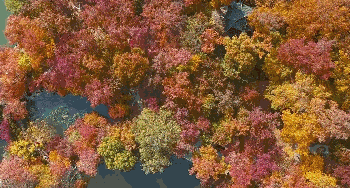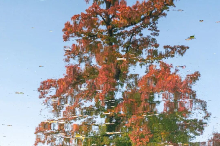 十里塘的枫叶是经典的五彩枫,人在桥上走,如在画中游。