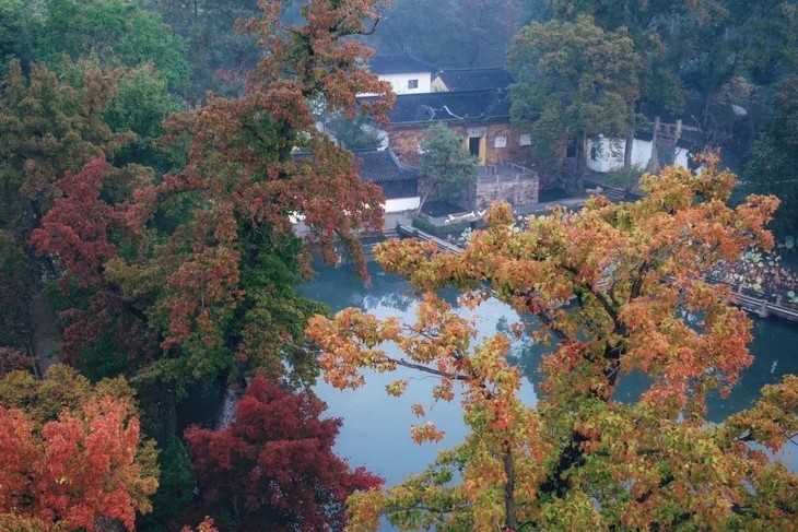 天平山赏秋久负盛名,是华东地区规模最大的古枫香群落,与象山、栖霞山、岳麓山并称为中国四大赏枫圣地。