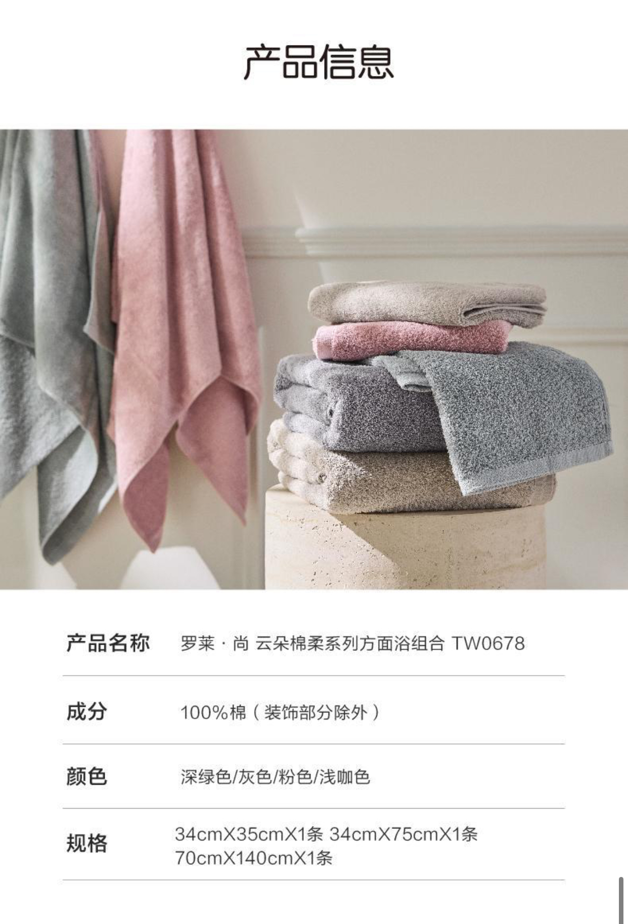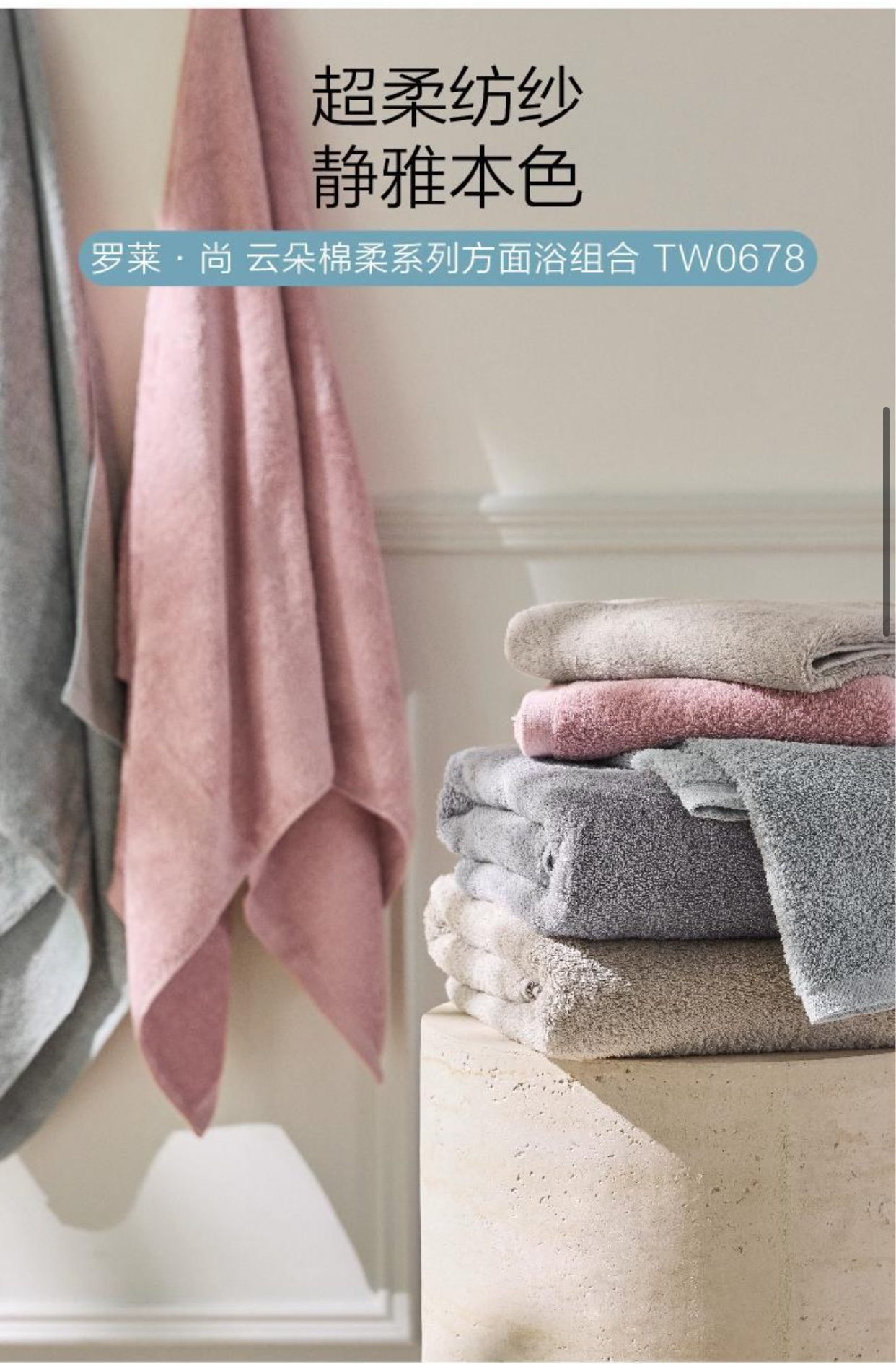 10楼罗莱·尚 云朵棉柔系列方面浴组合 TW0678(粉色、灰色)吊牌价299 活动价99元