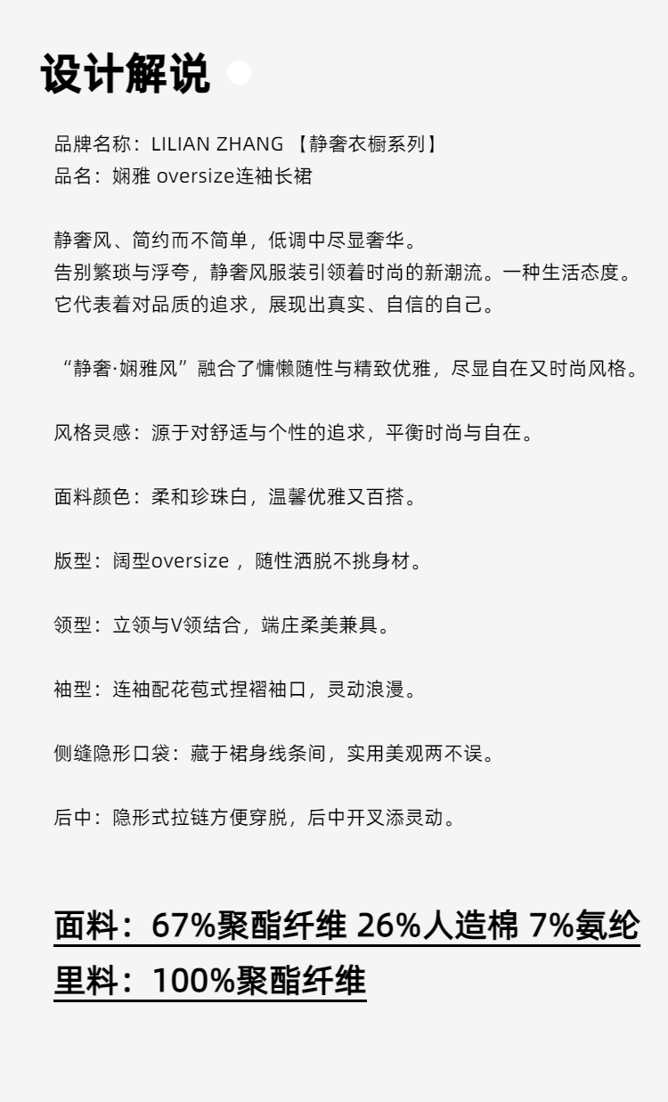 E-“定制”静奢风、都市摩登—— 娴雅 oversize连袖长连衣裙 2401240