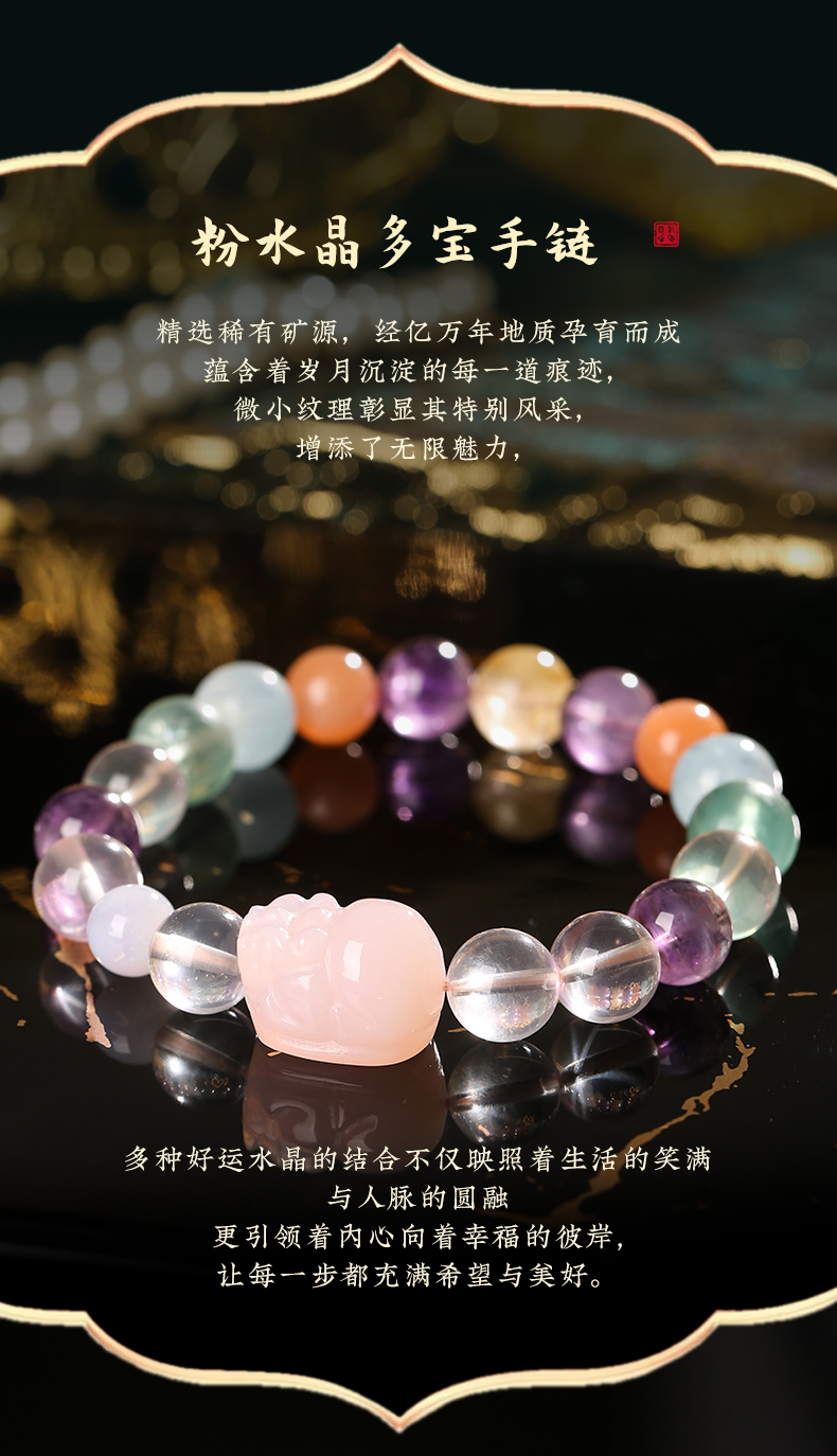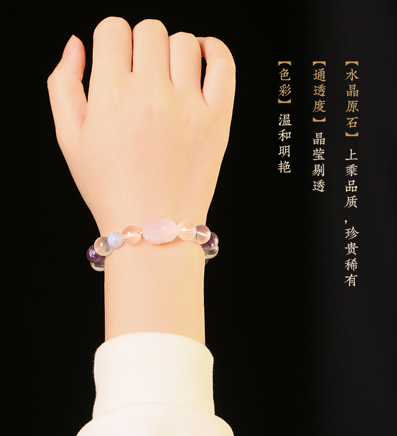 灵机生活馆粉水晶多宝手链 玛瑙貔貅高颜值手链