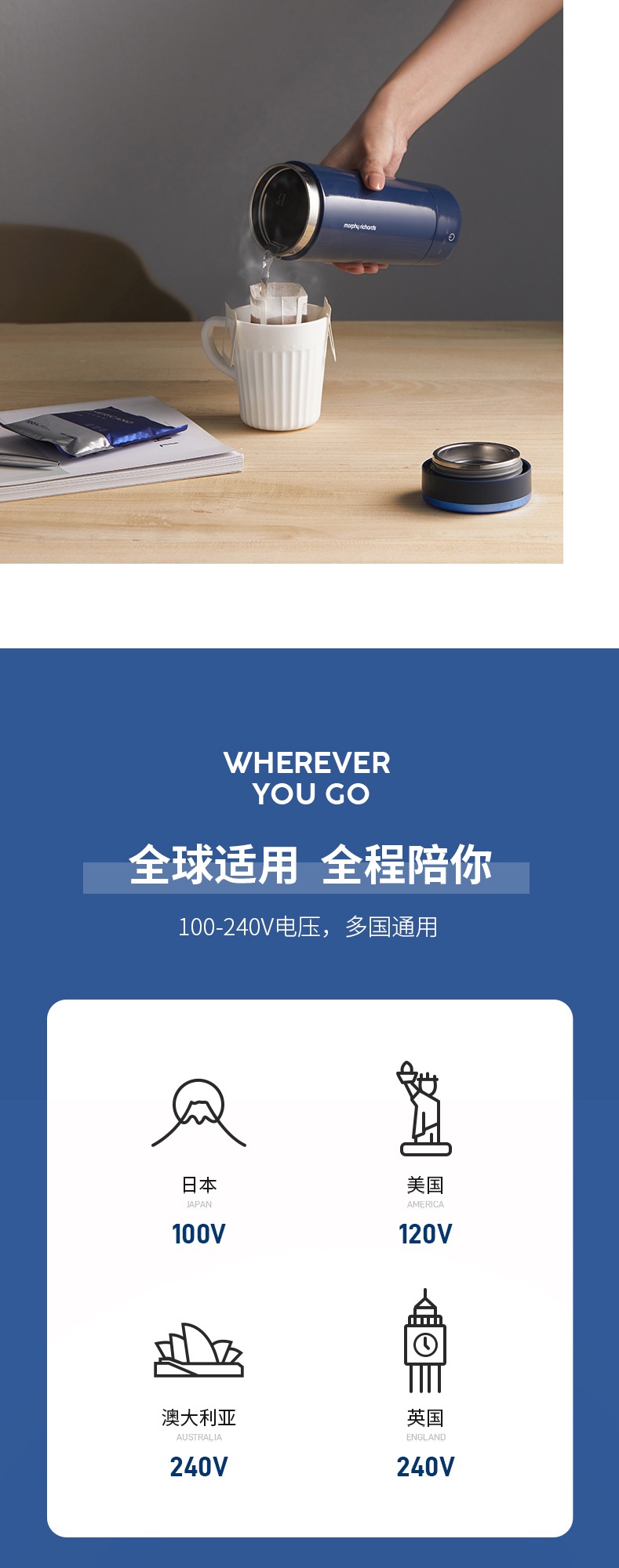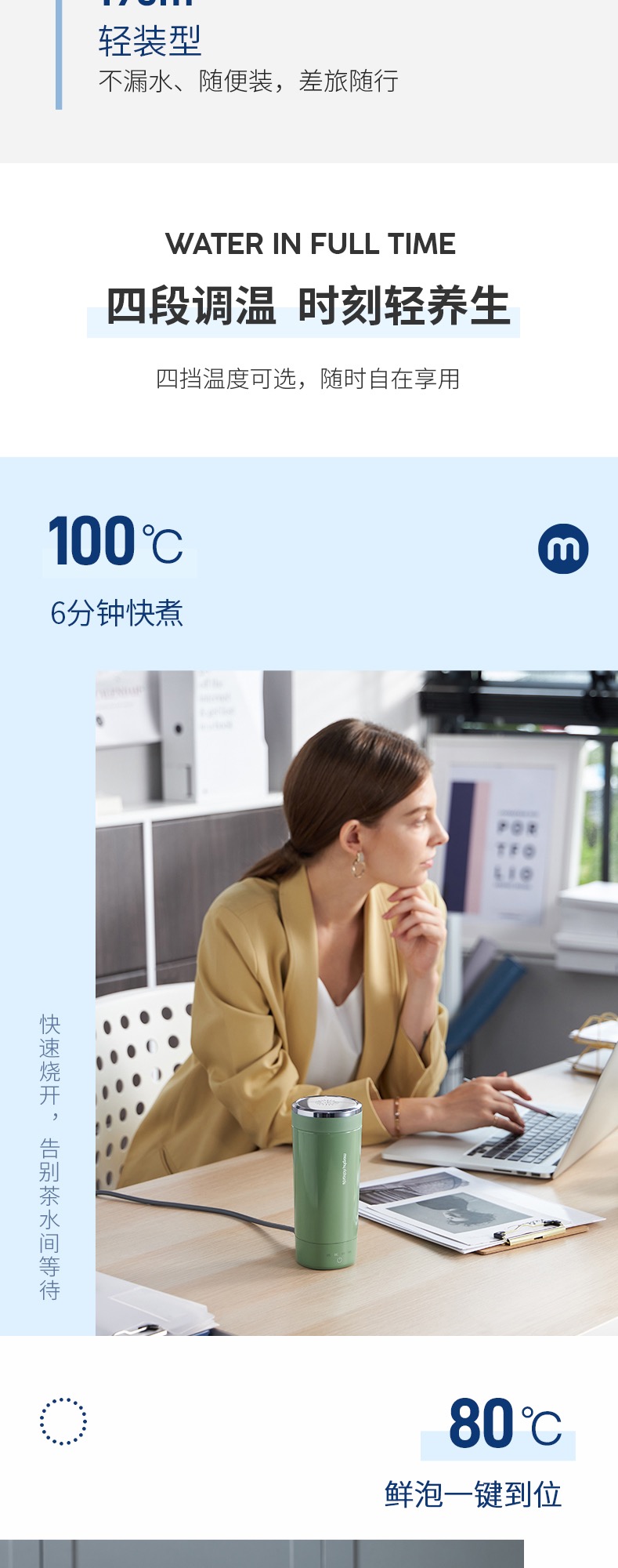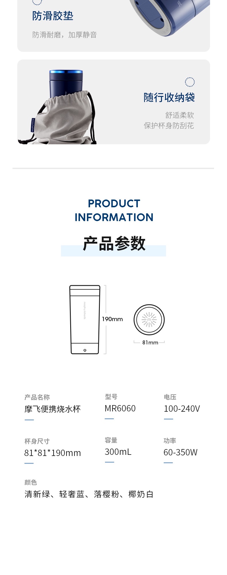 MORPHY RICHARDS摩飞电炖杯便携式烧水壶轻养杯家用小型保温加热电热烧水杯养生杯