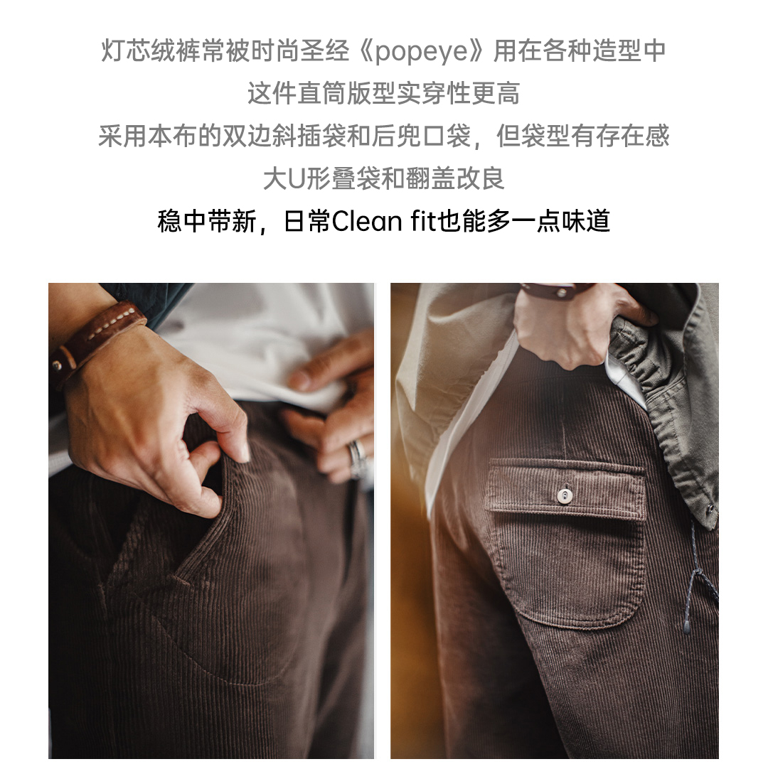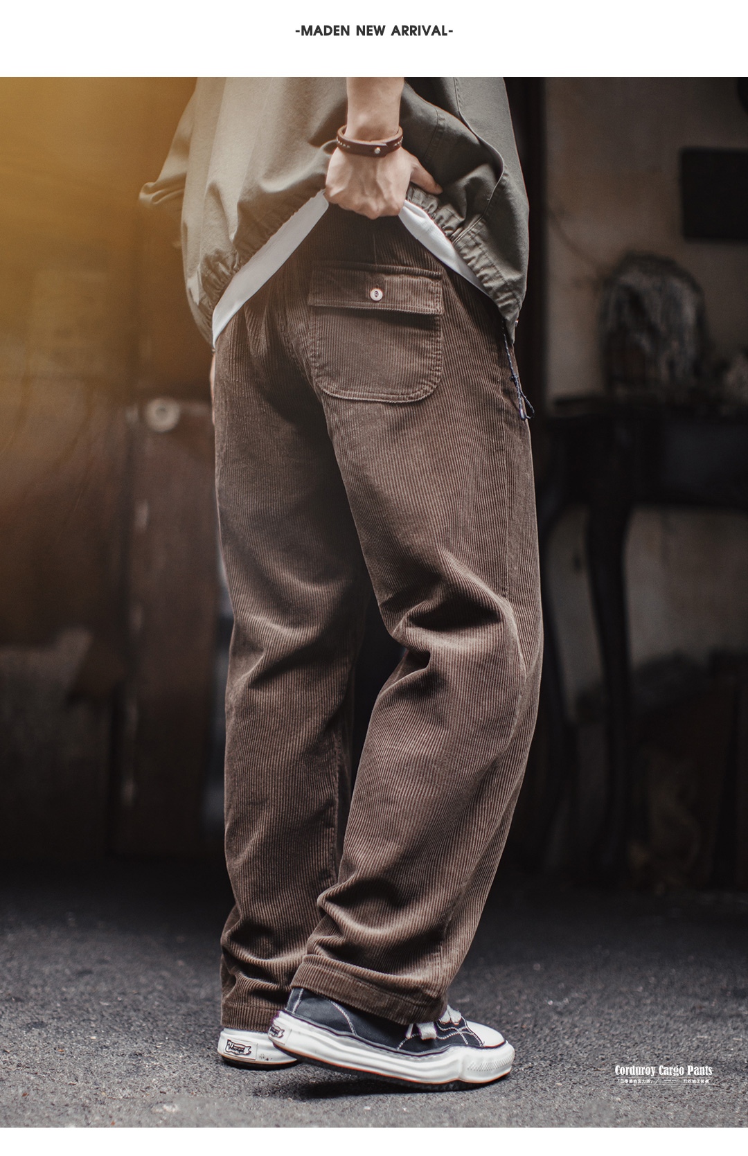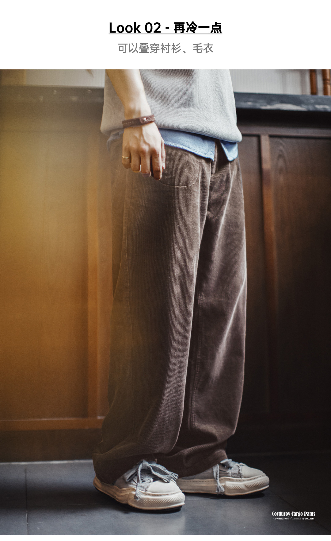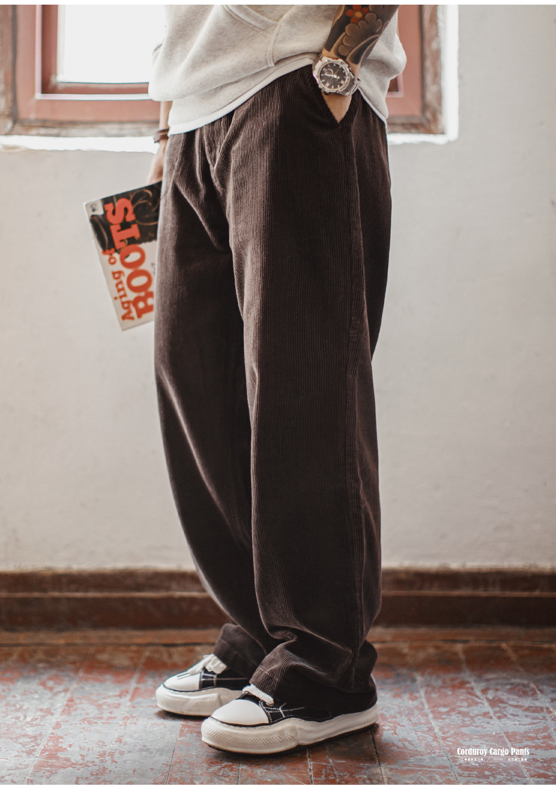 马登工装美式复古灯芯绒休闲裤咖色加厚直筒垂感阔腿长裤子男秋冬