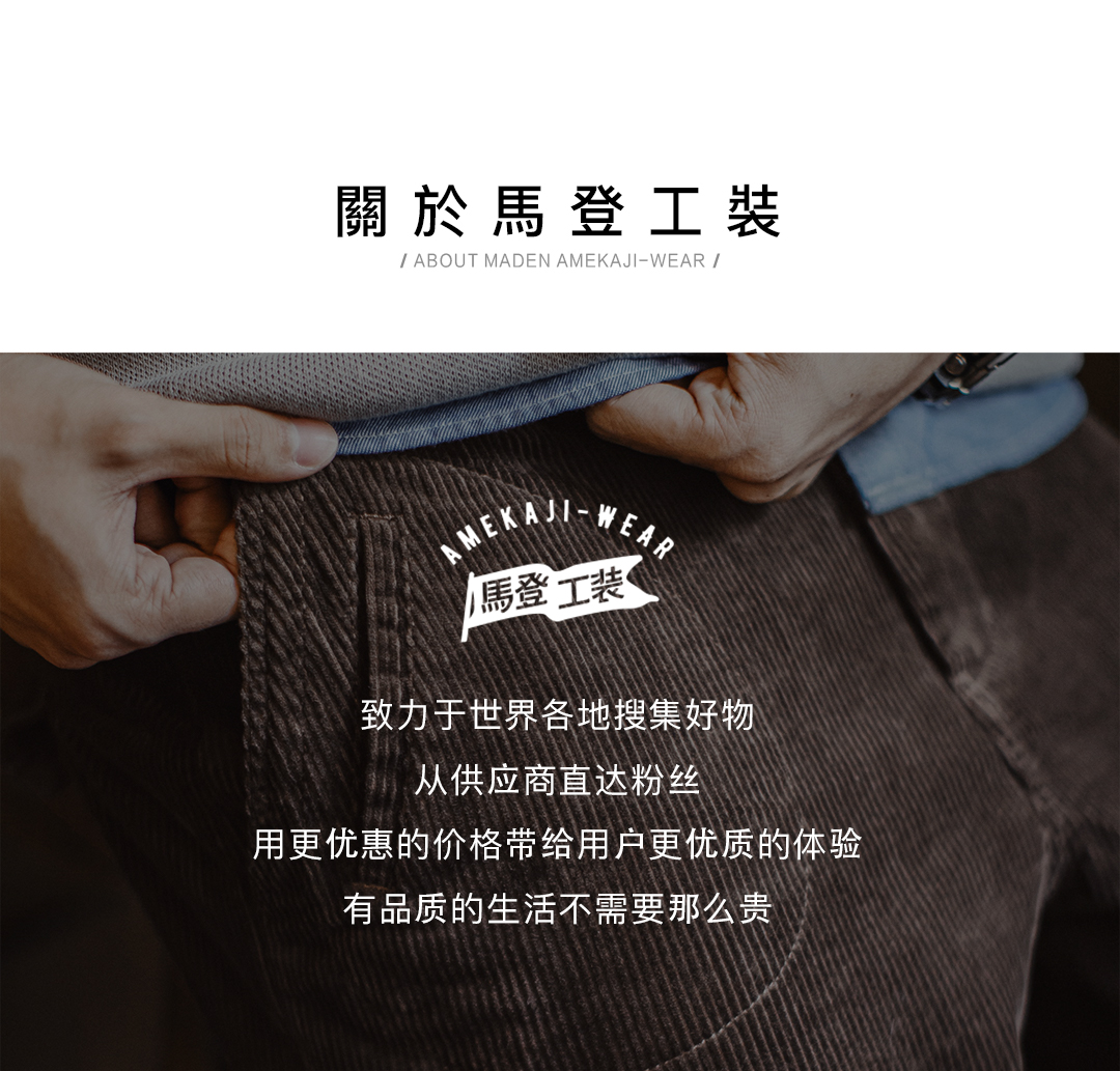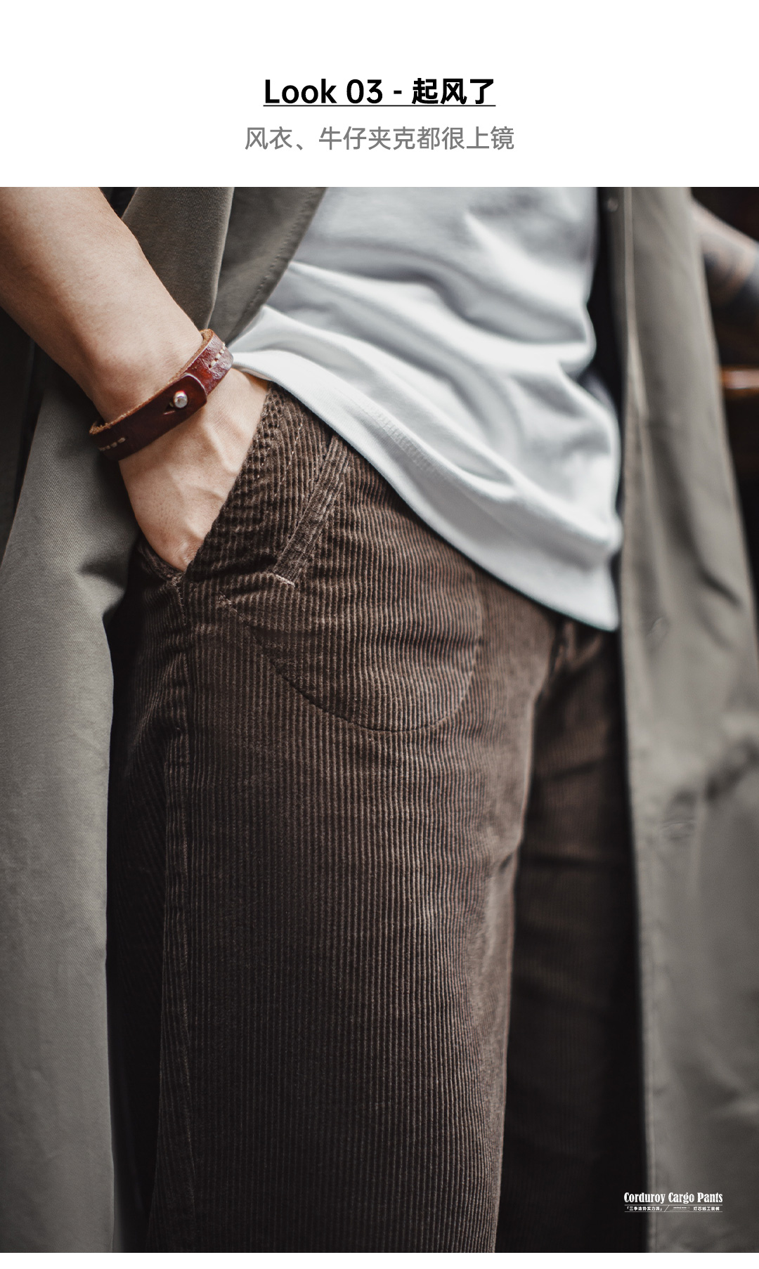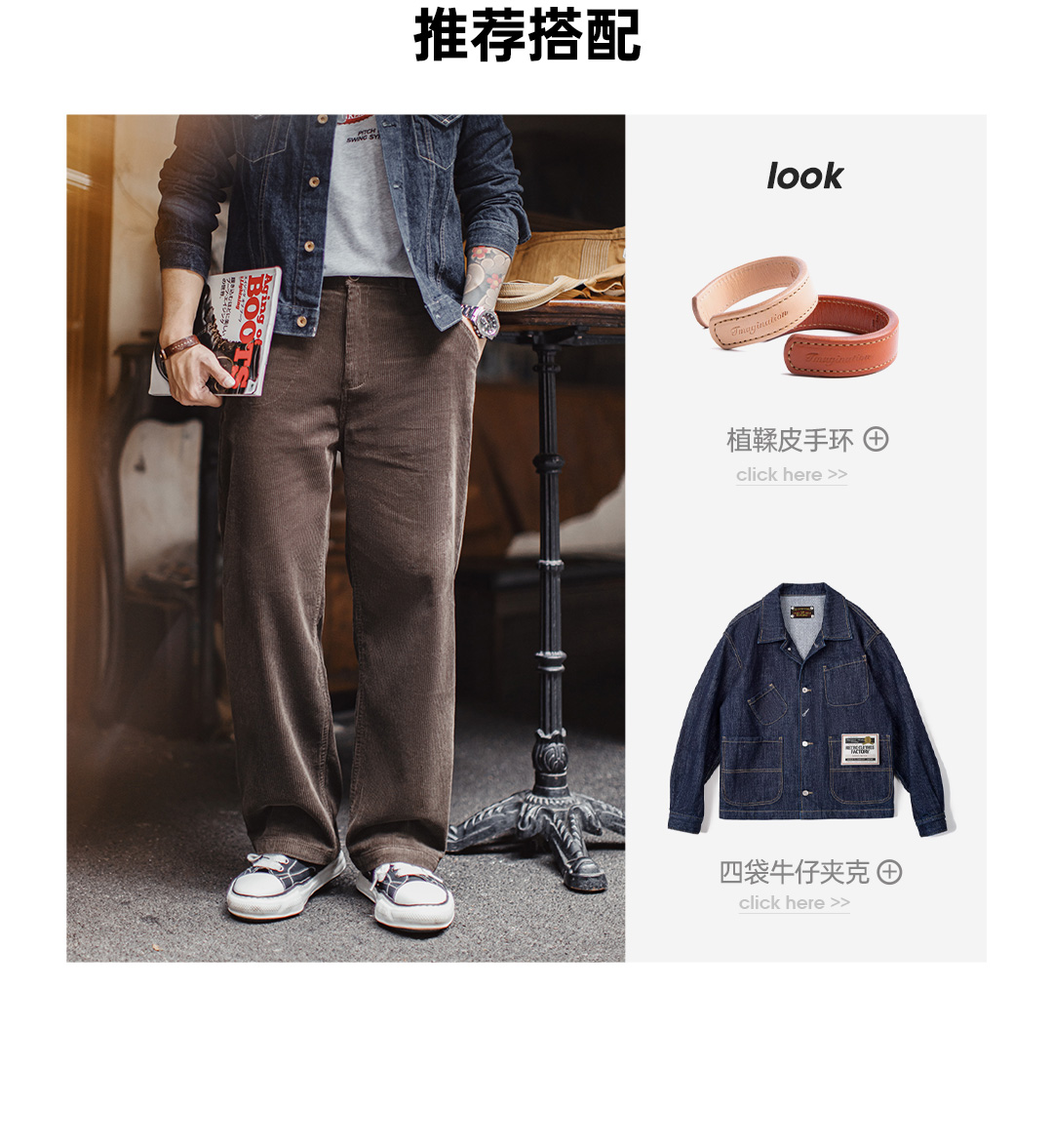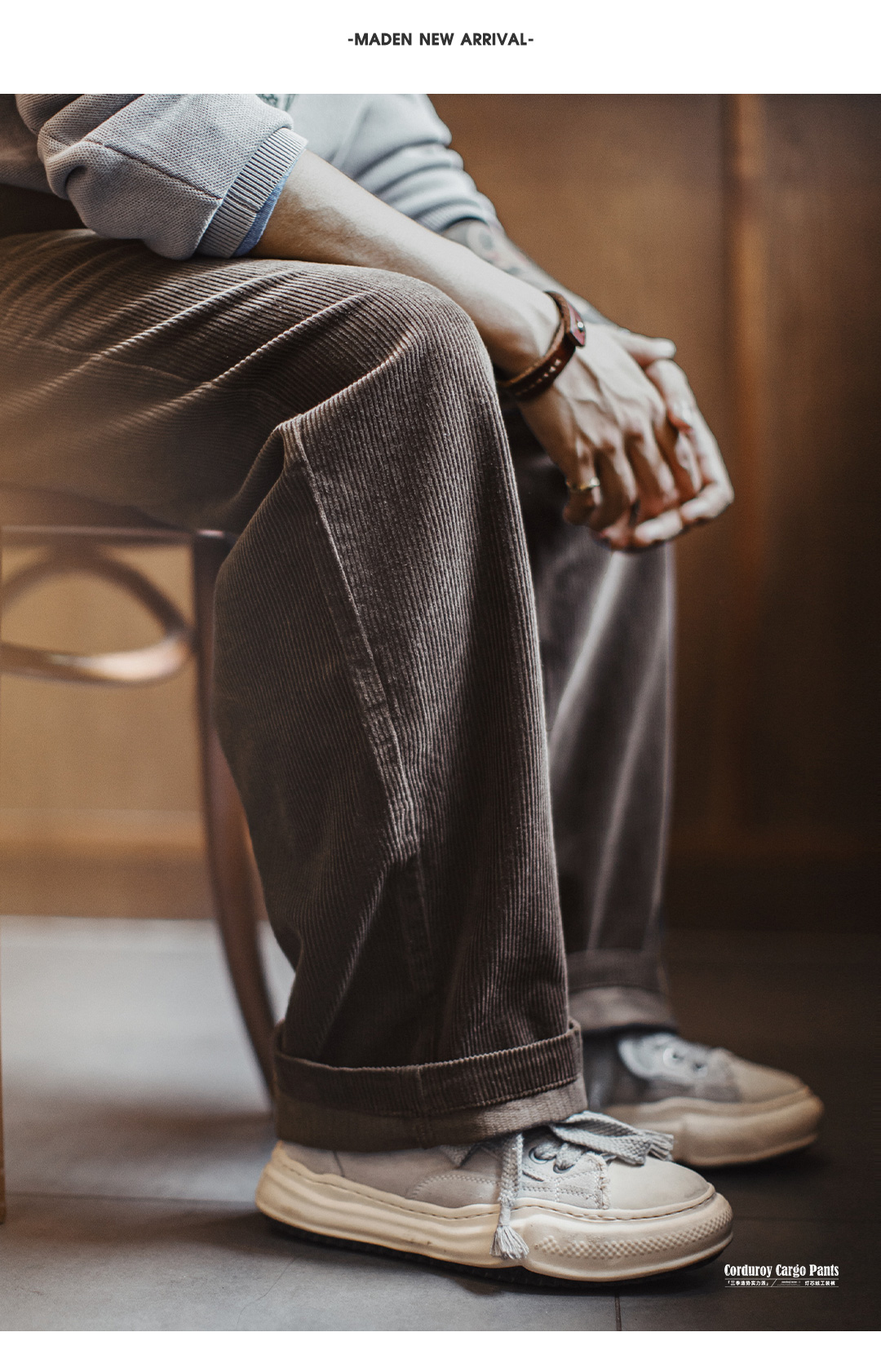 马登工装美式复古灯芯绒休闲裤咖色加厚直筒垂感阔腿长裤子男秋冬