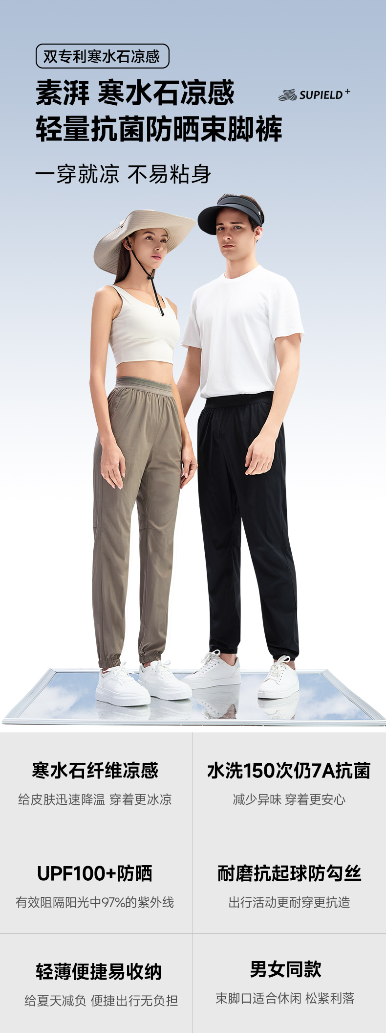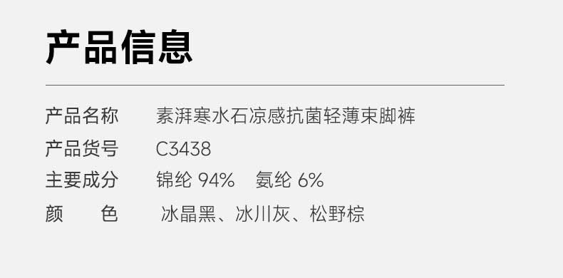 【国标凉感检测7A级抗菌】素湃寒水石凉感抗菌轻薄束脚裤耐磨抗起球防勾丝3438