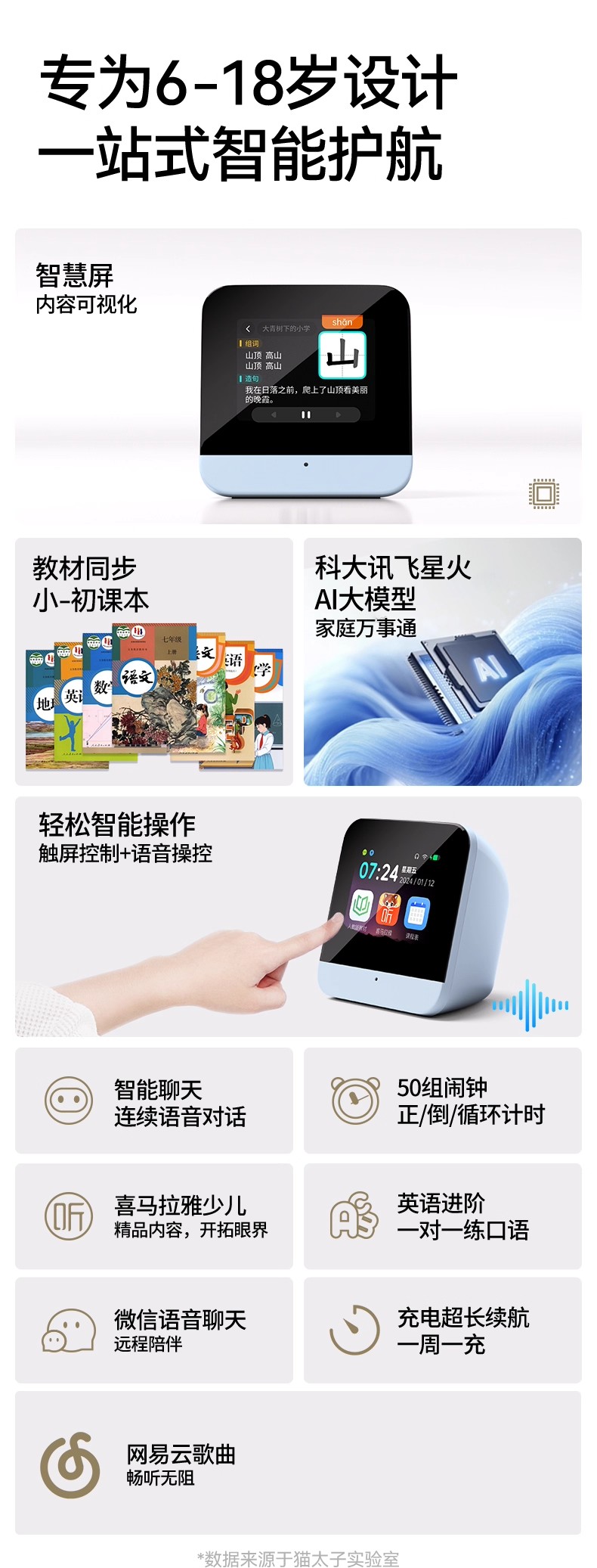 猫太子Al智能闹钟时间管理器ai计划管家同步小学初中教材课本