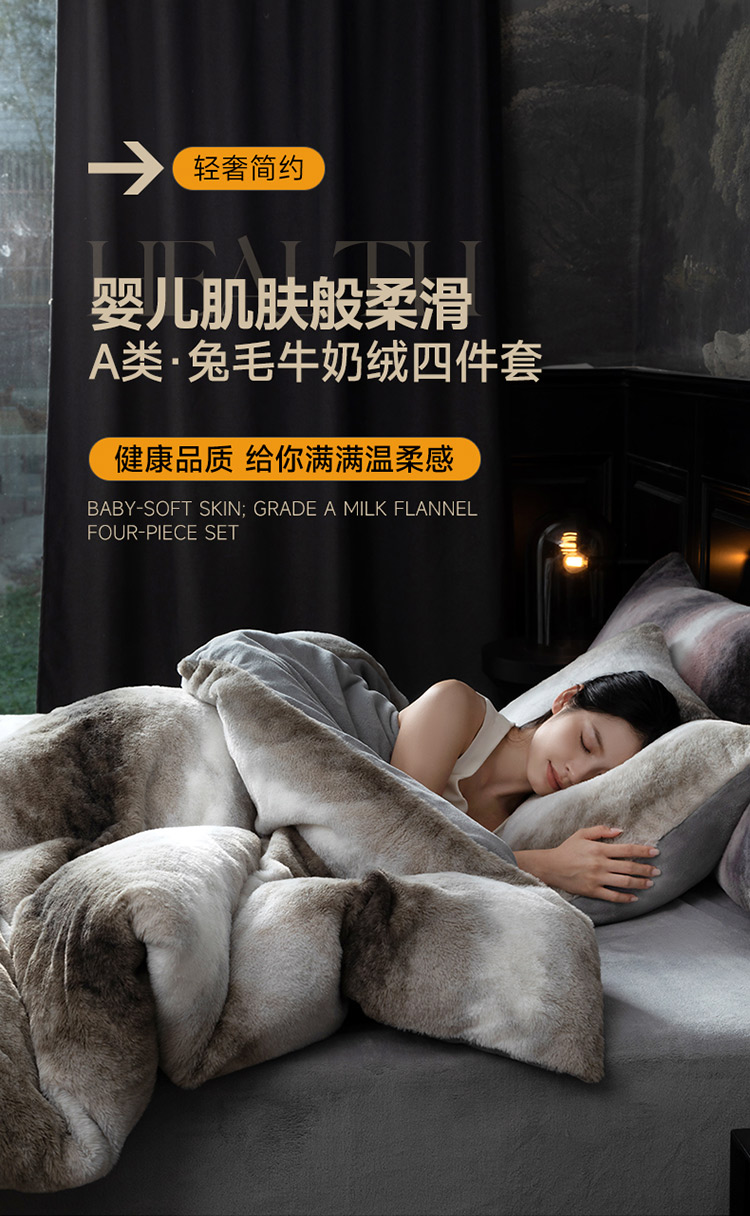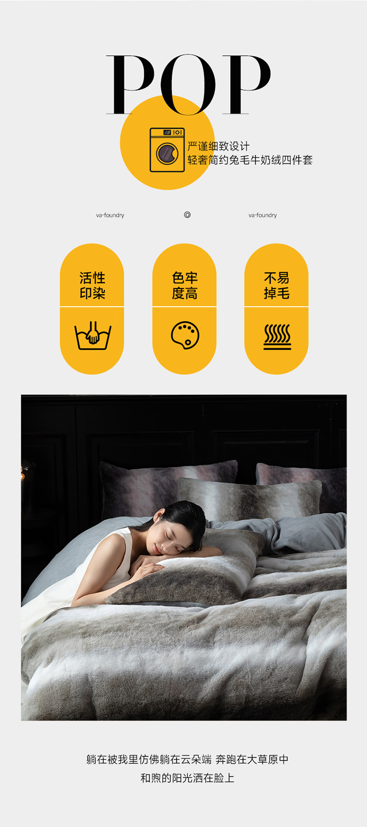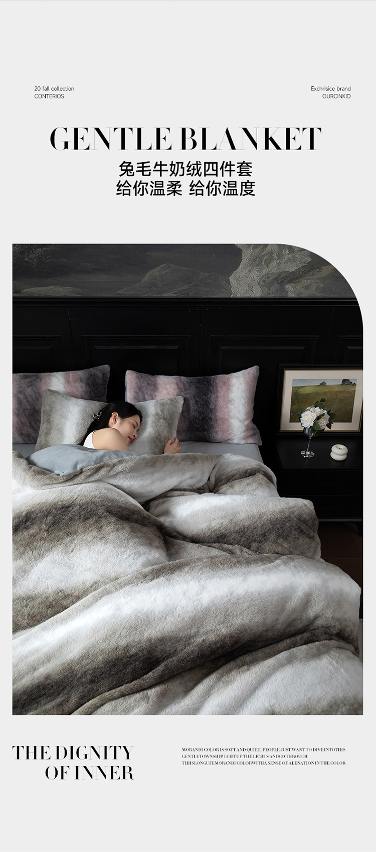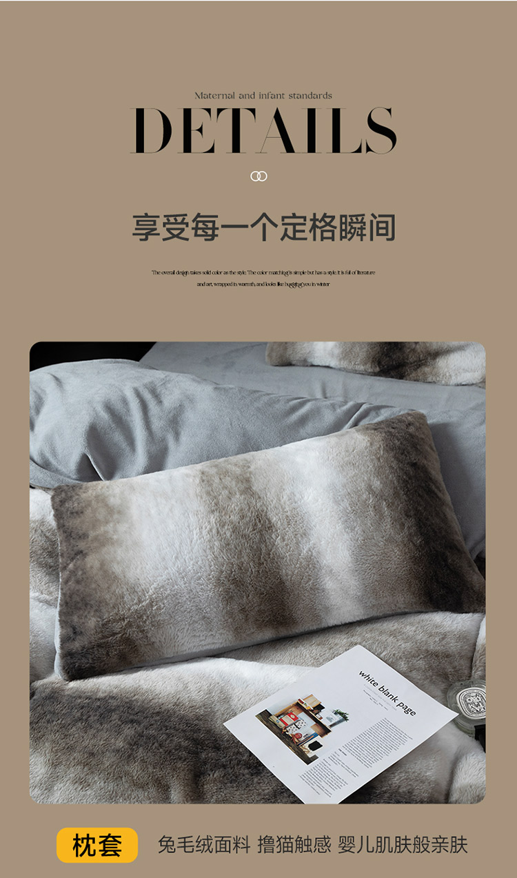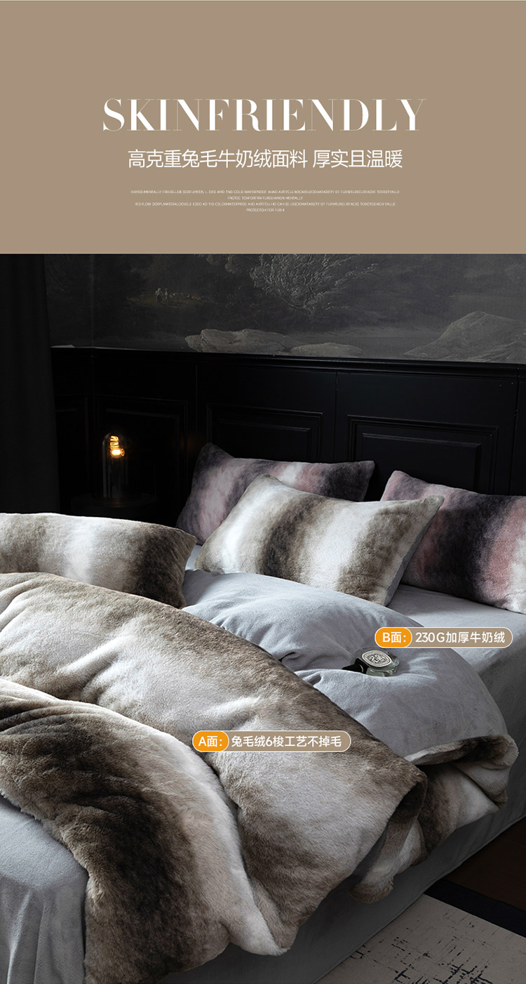 【品名】费斯巴赫 仿兔毛四件套 柔软亲肤不掉毛 标准款/加大款 3种颜色可选 【规格】高级灰、高级粉、高级驼 【尺寸】 标准款:被套200*230cm床单230*245cm枕套*2 加大款:被套220*240cm床单245*265cm枕套*2 【产地】国内 【材质】聚酯纤维100% 【发货包装】独立包装 【发货地】南通 【发货快递】中通、圆通、申通、韵达随机发 【不发货区域】新疆、西藏、内蒙古、宁夏、甘肃、青海、海南、港澳台 【发货时效】48-72小时,周末节假日顺延 【售后说明】拒收/无理由退货,需要扣除费用标准款16元/套 加大款19元/套 |
