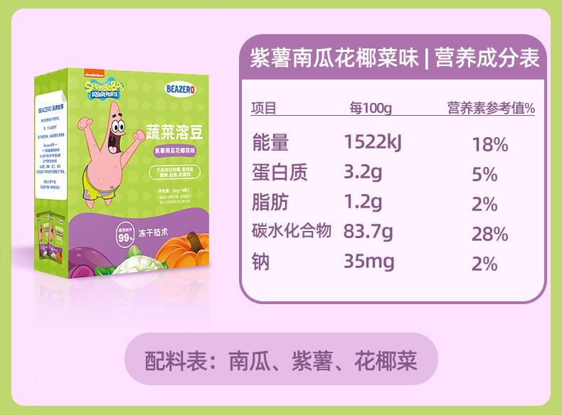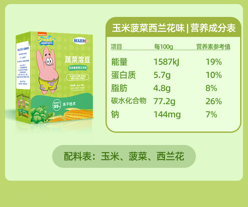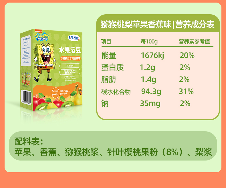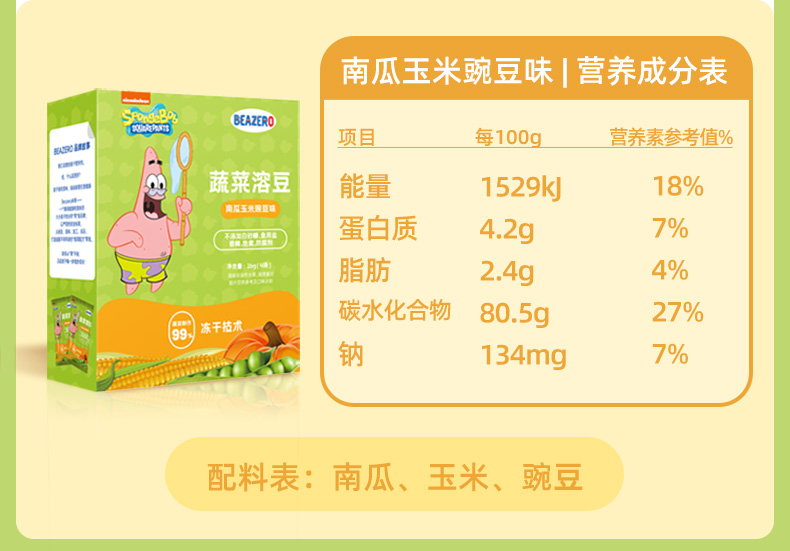 Beazero海绵宝宝水果/蔬菜溶豆 入口易溶不上火