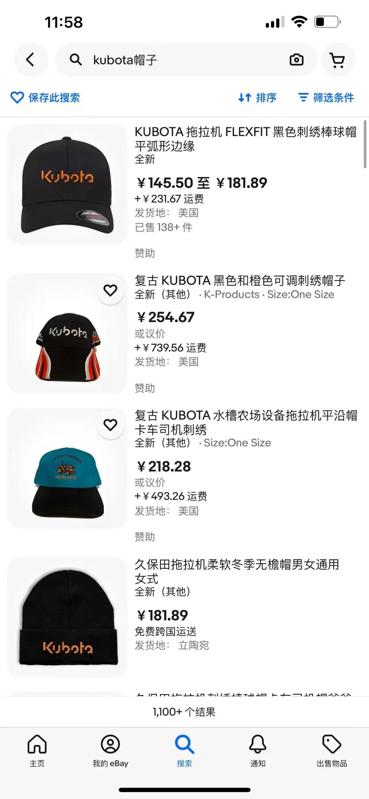 正品订单!KUBOTA立体刺绣字母渔夫帽