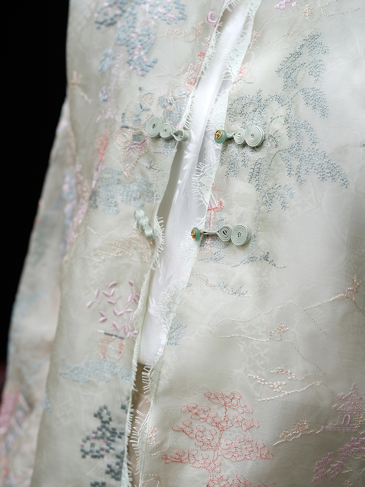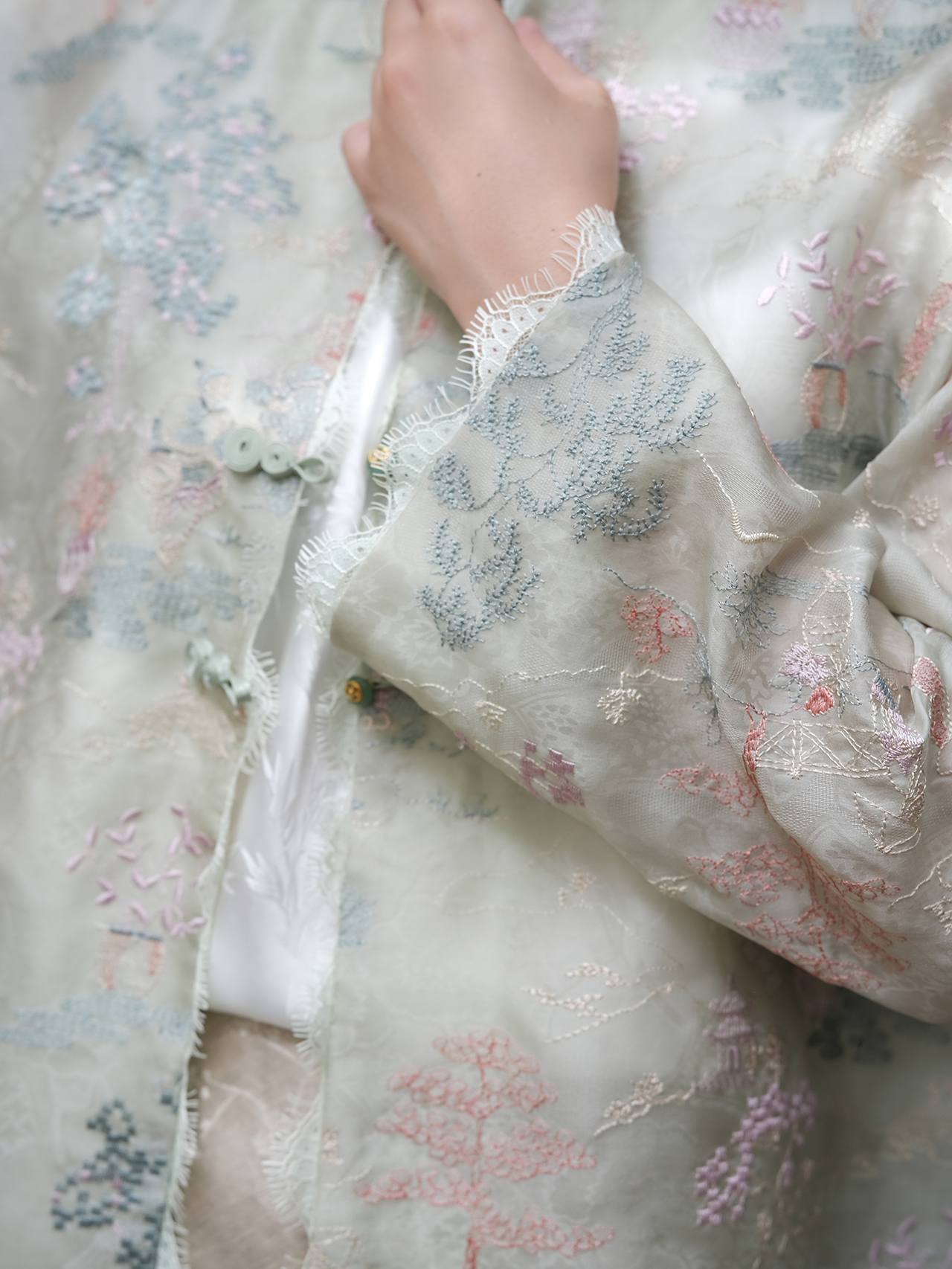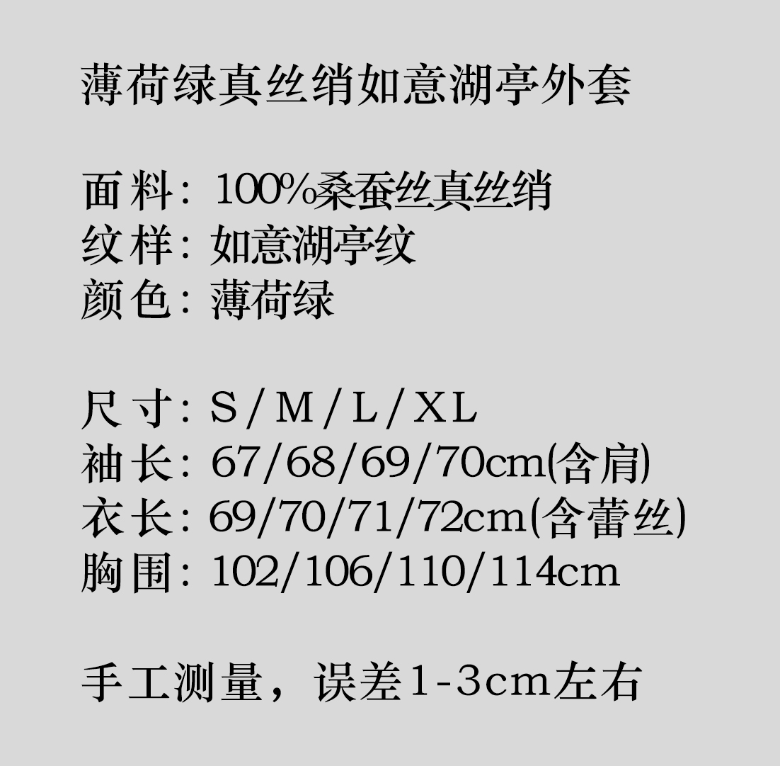 盛唐牡丹 |薄荷绿真丝绡如意湖亭外套