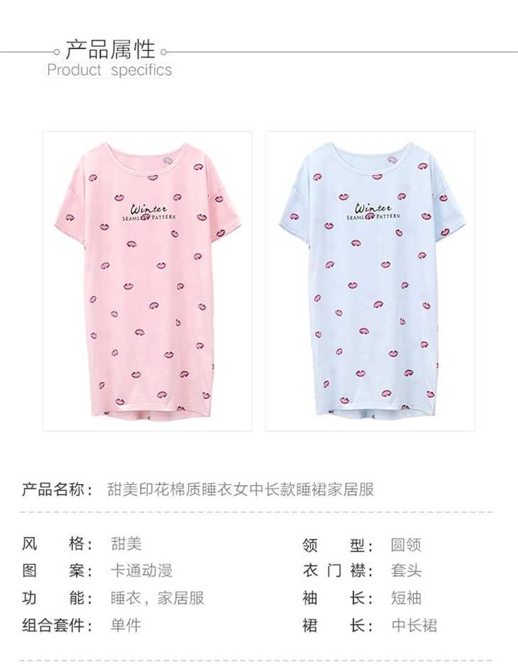 雅黛丽19夏款新品家居服性感唇印短袖中长款睡衣睡裙女DYJ91007