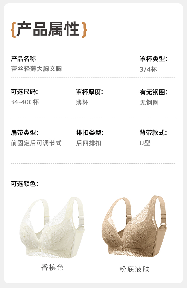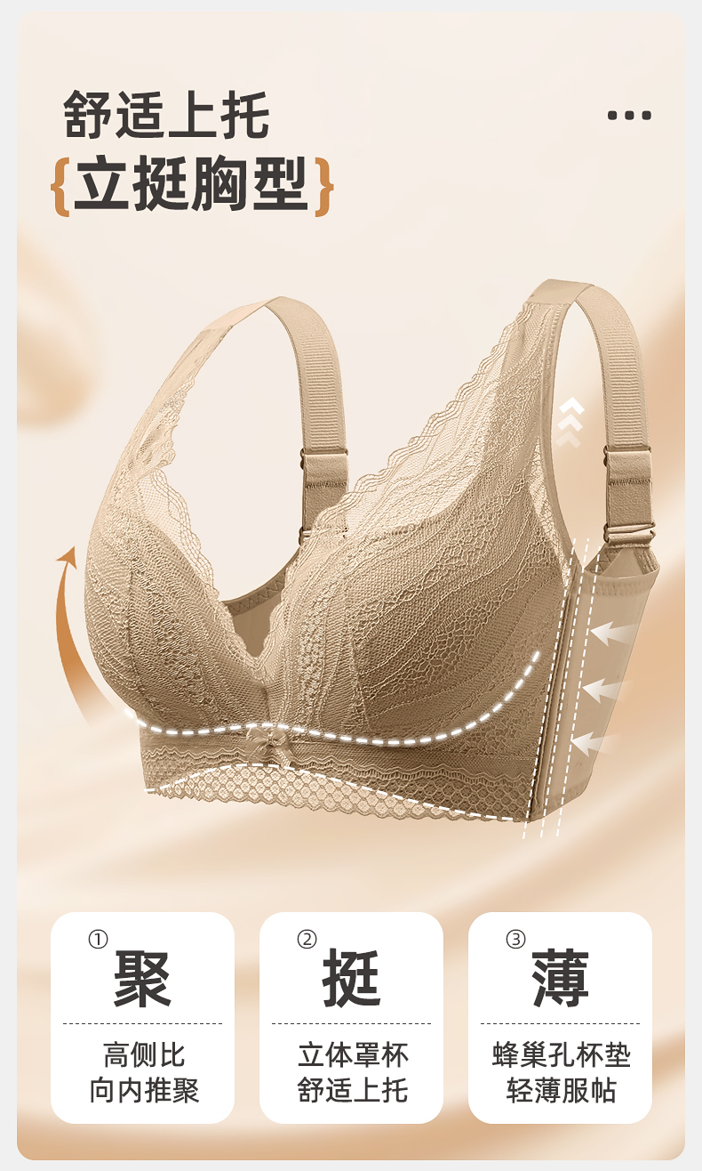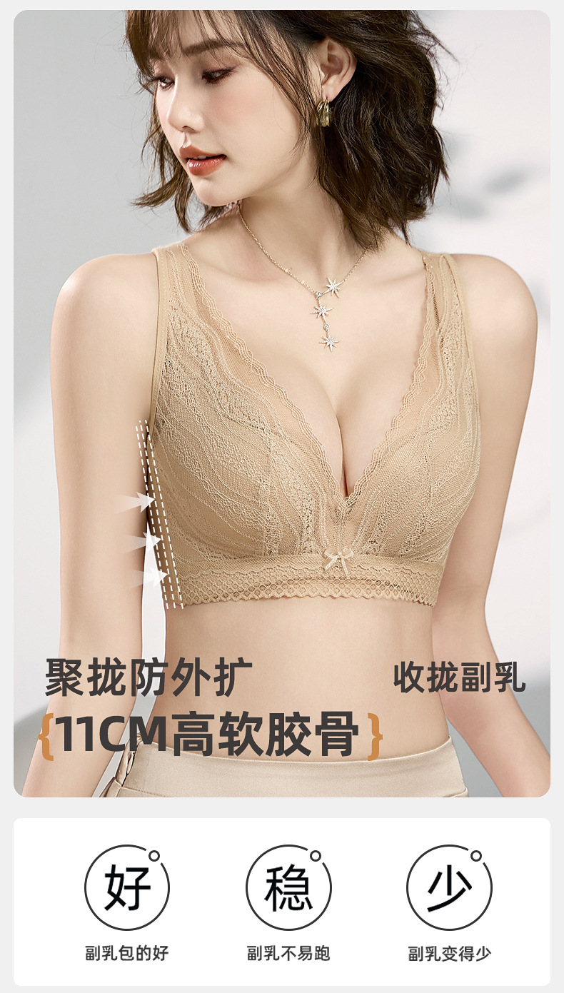 雅黛俪大胸显小显瘦内衣轻薄透气蕾丝性感提拉收副乳文胸罩