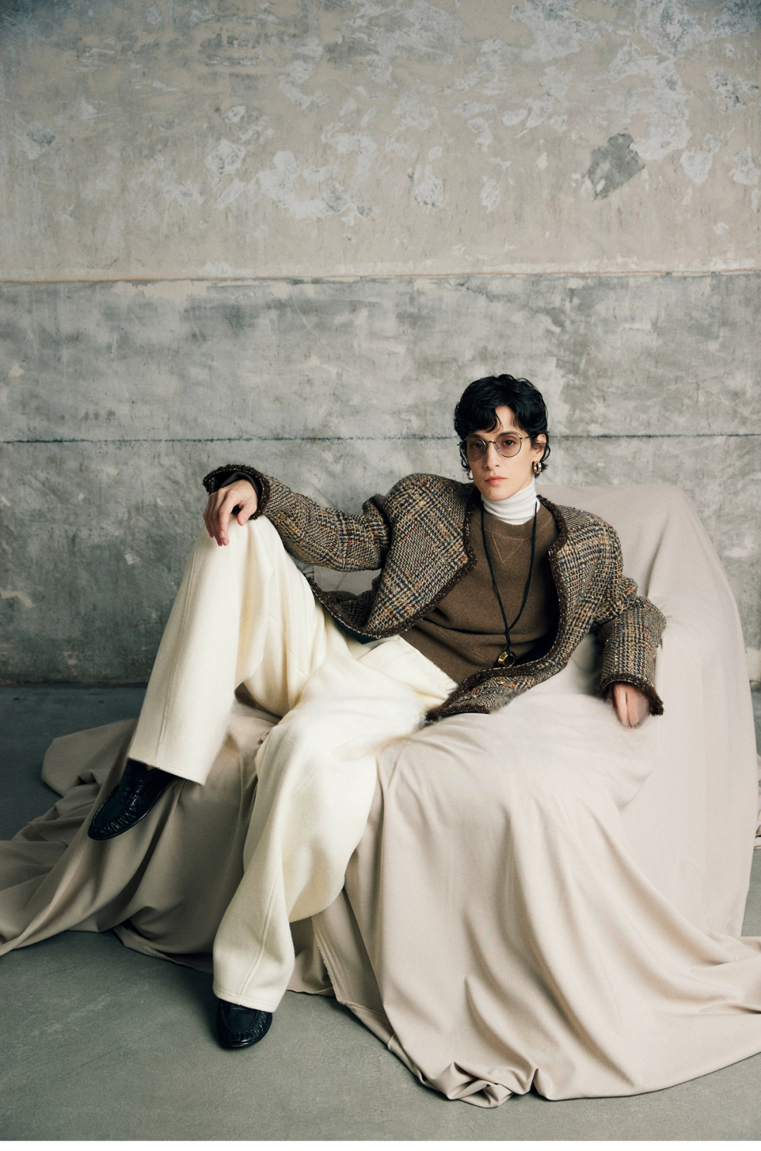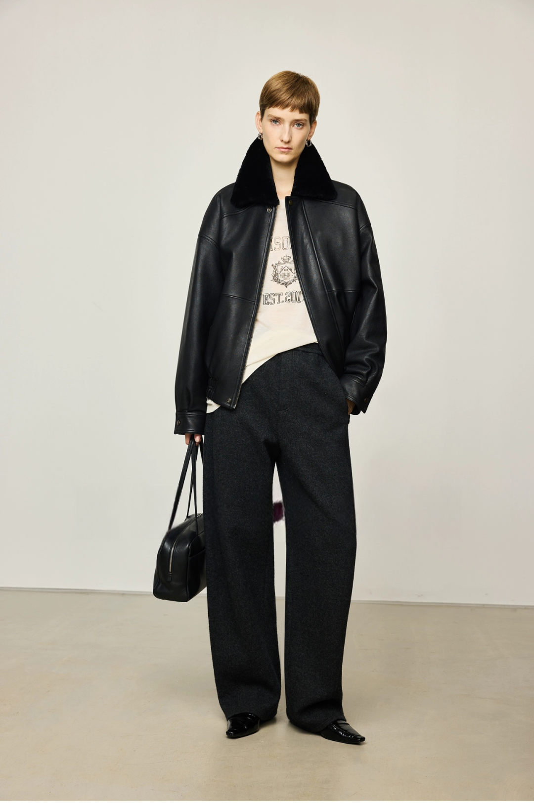 D111707温暖显瘦羊毛羽绒混纺香蕉奶奶裤休闲裤