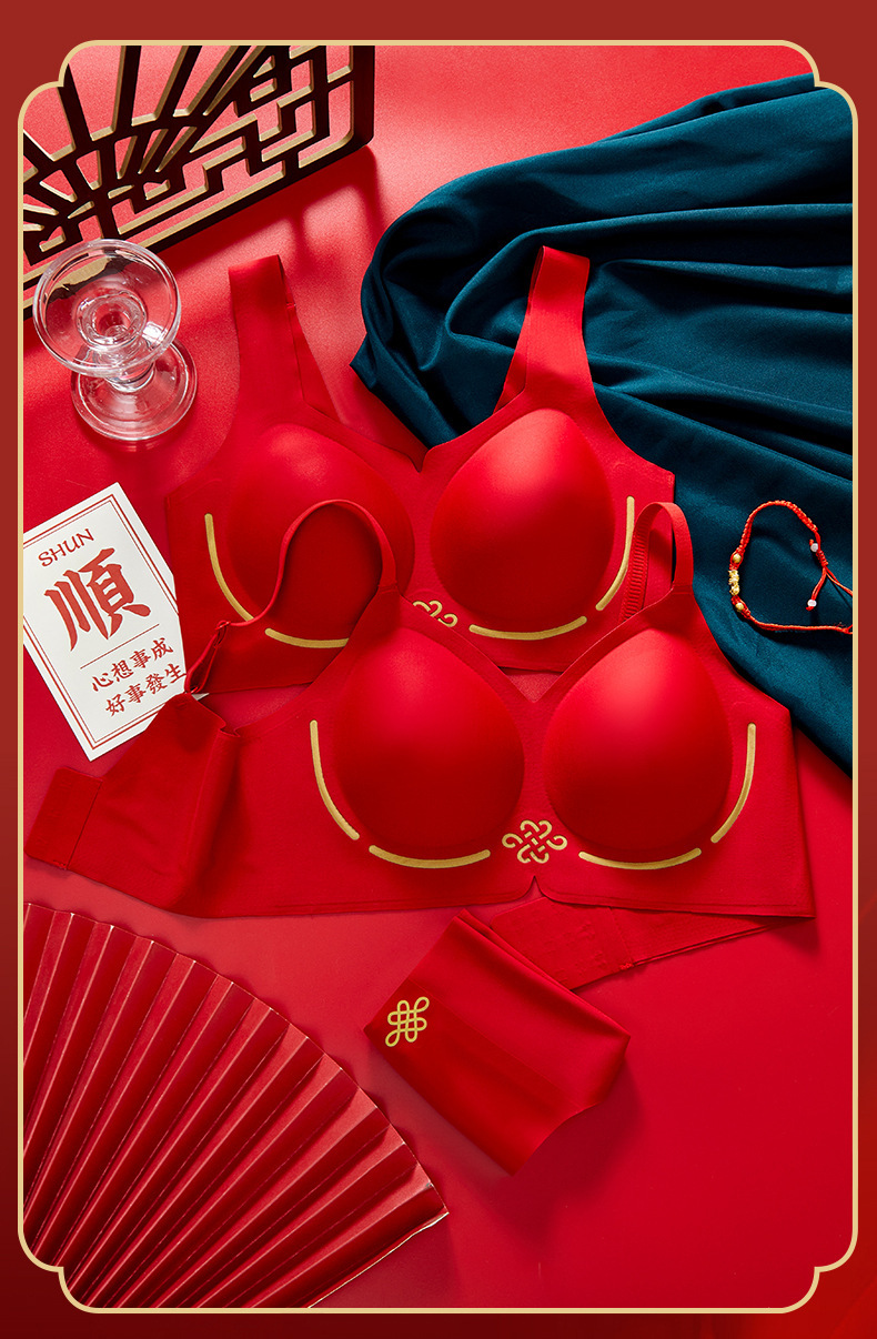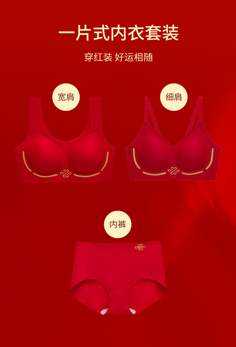 【礼盒套装❗️无痕内衣】蛇年本命年 中国红大红色 内裤套装女高颜值 新娘结婚 固定聚拢无钢圈文胸伴手礼新年礼盒年货礼盒