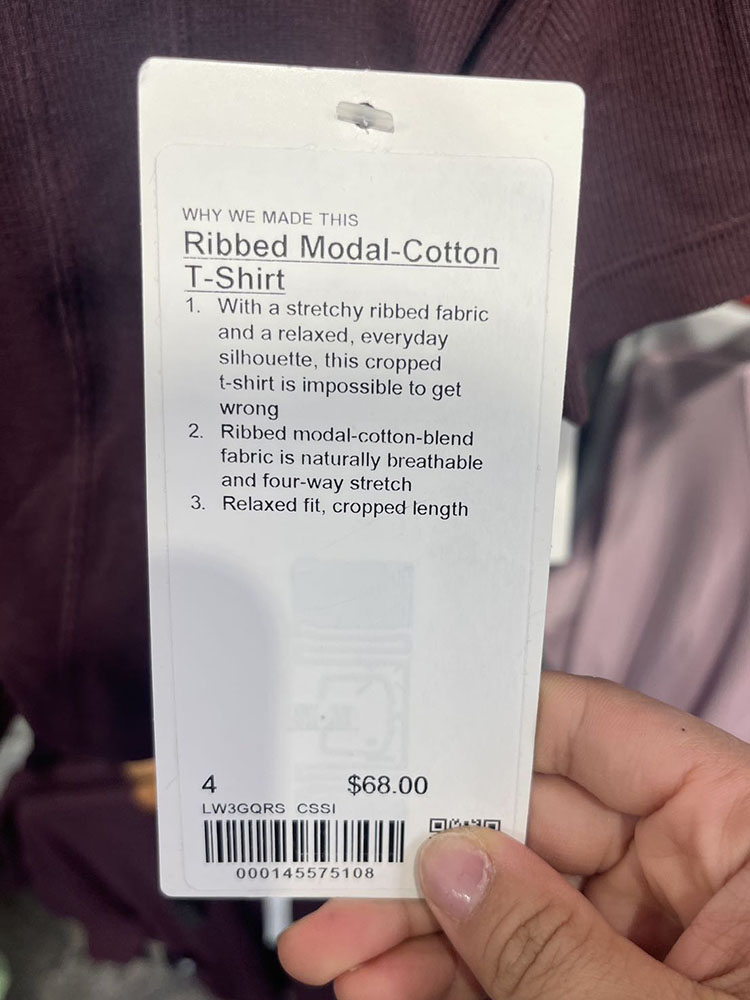 lululemon Ribbed Modal-Cotton 女士棉混纺透气微弹宽松短袖T恤