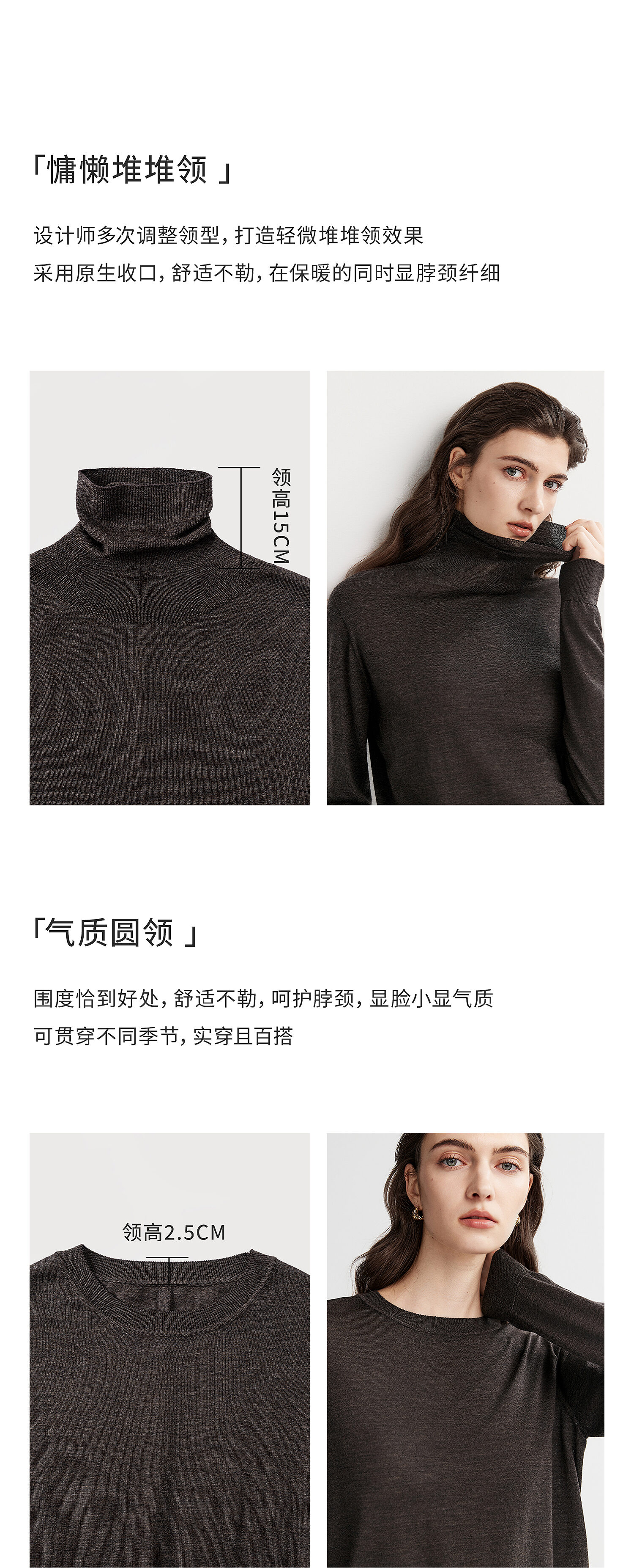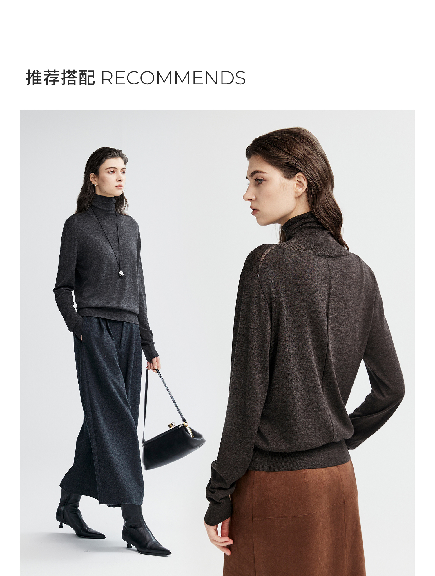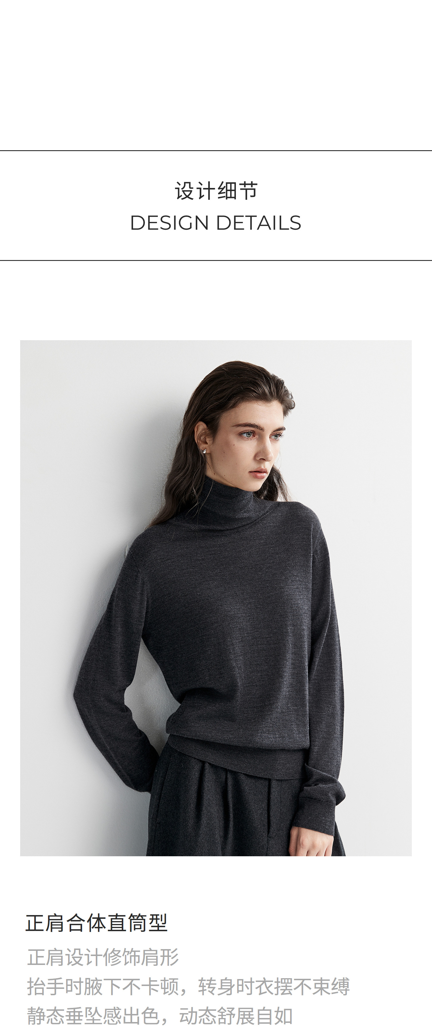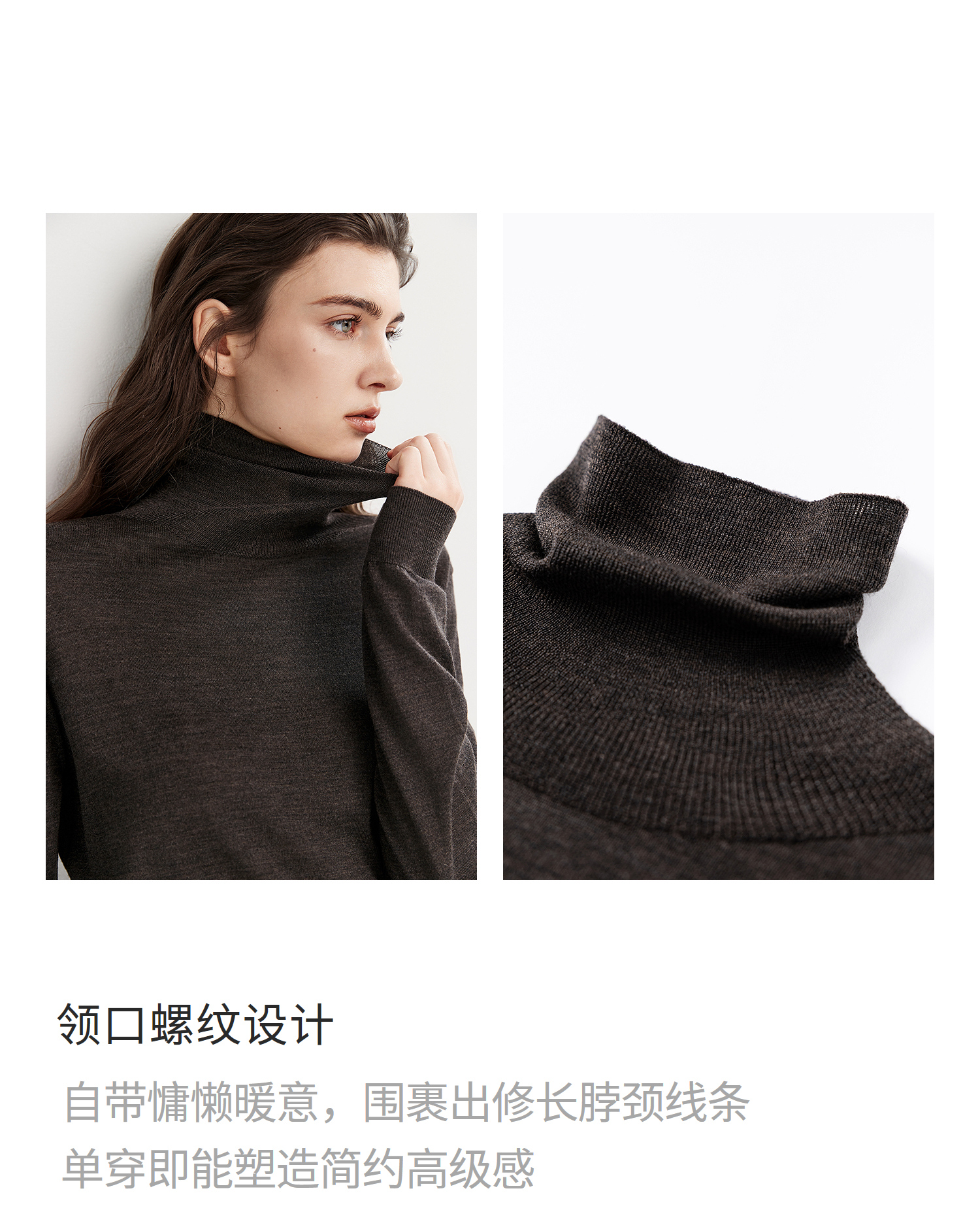 棉仓366635006-120s全羊毛静奢风可机洗毛衣女5秋新品正肩合体高领毛针织衫