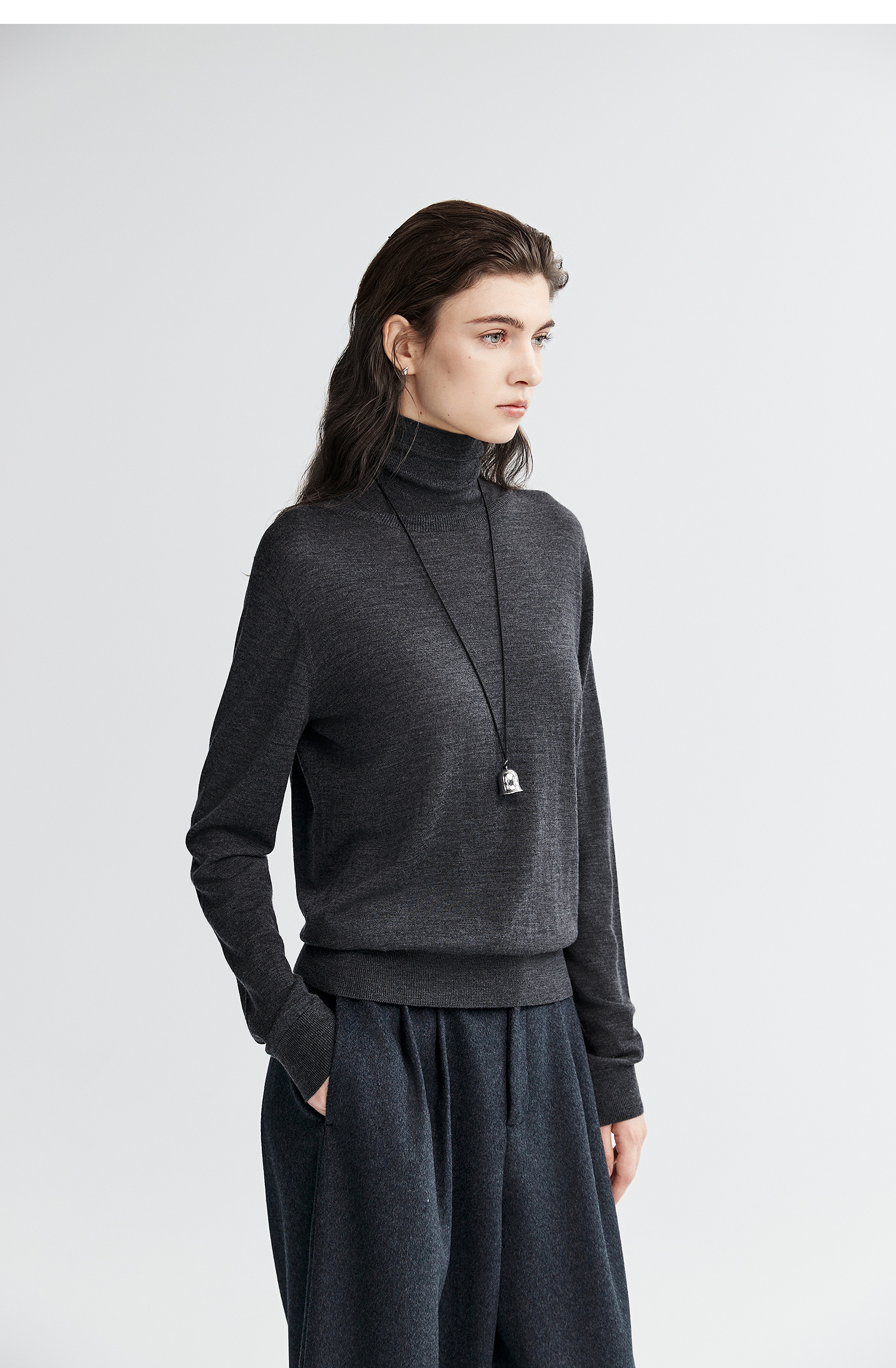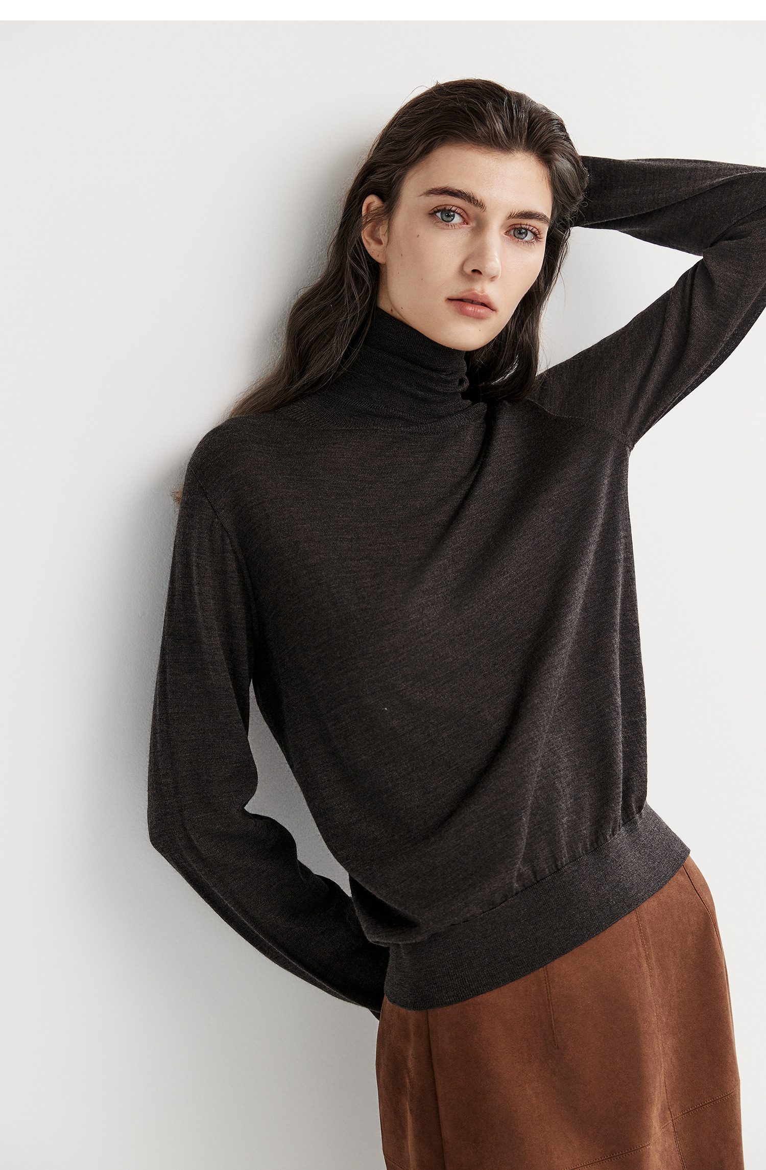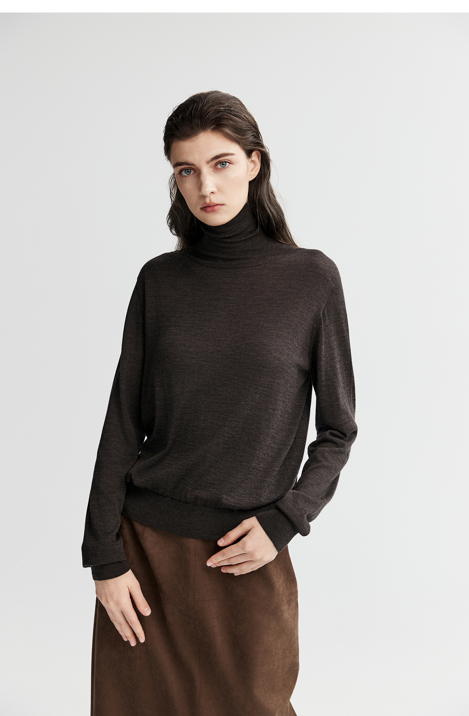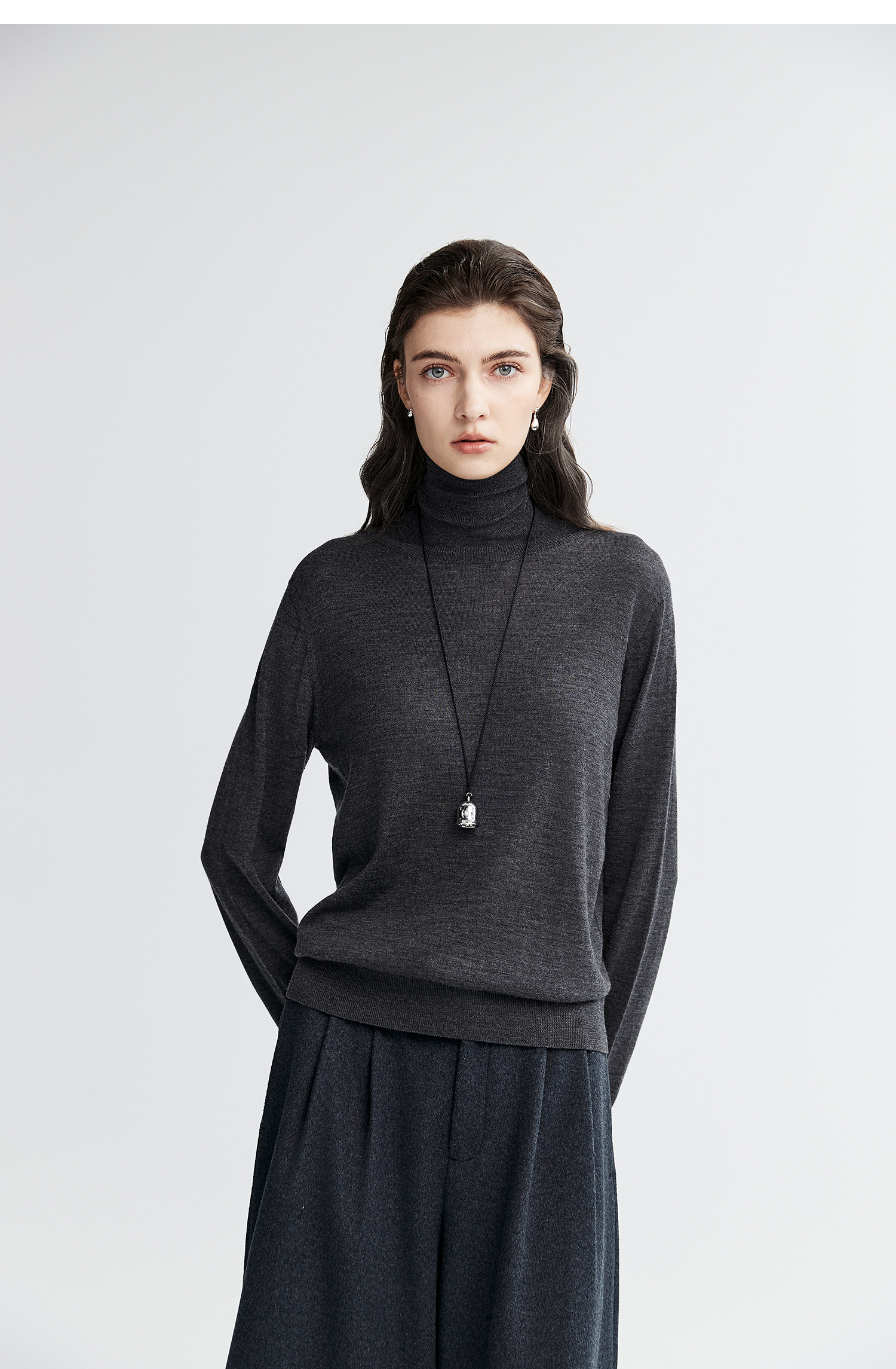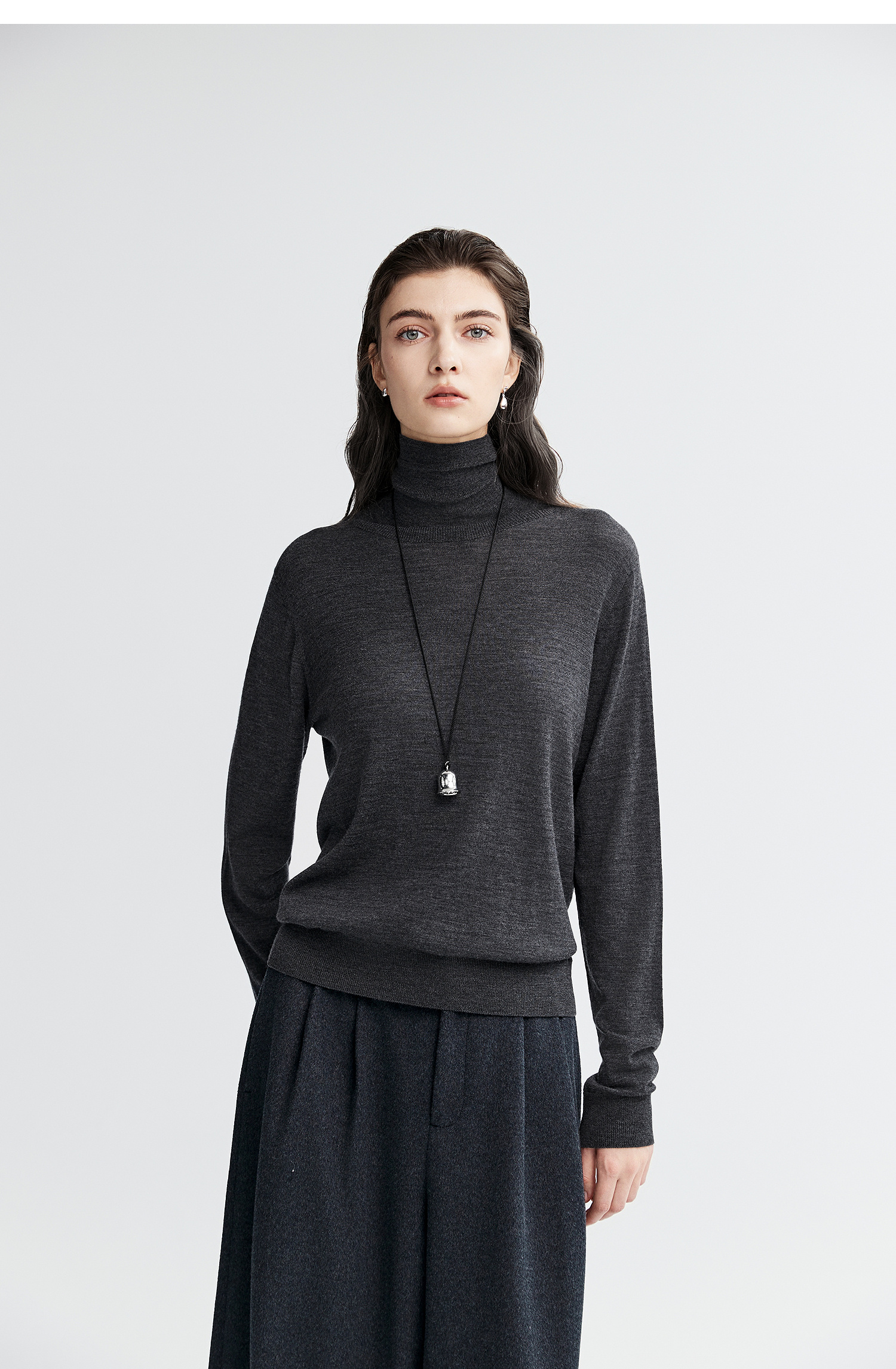 棉仓366635006-120s全羊毛静奢风可机洗毛衣女5秋新品正肩合体高领毛针织衫