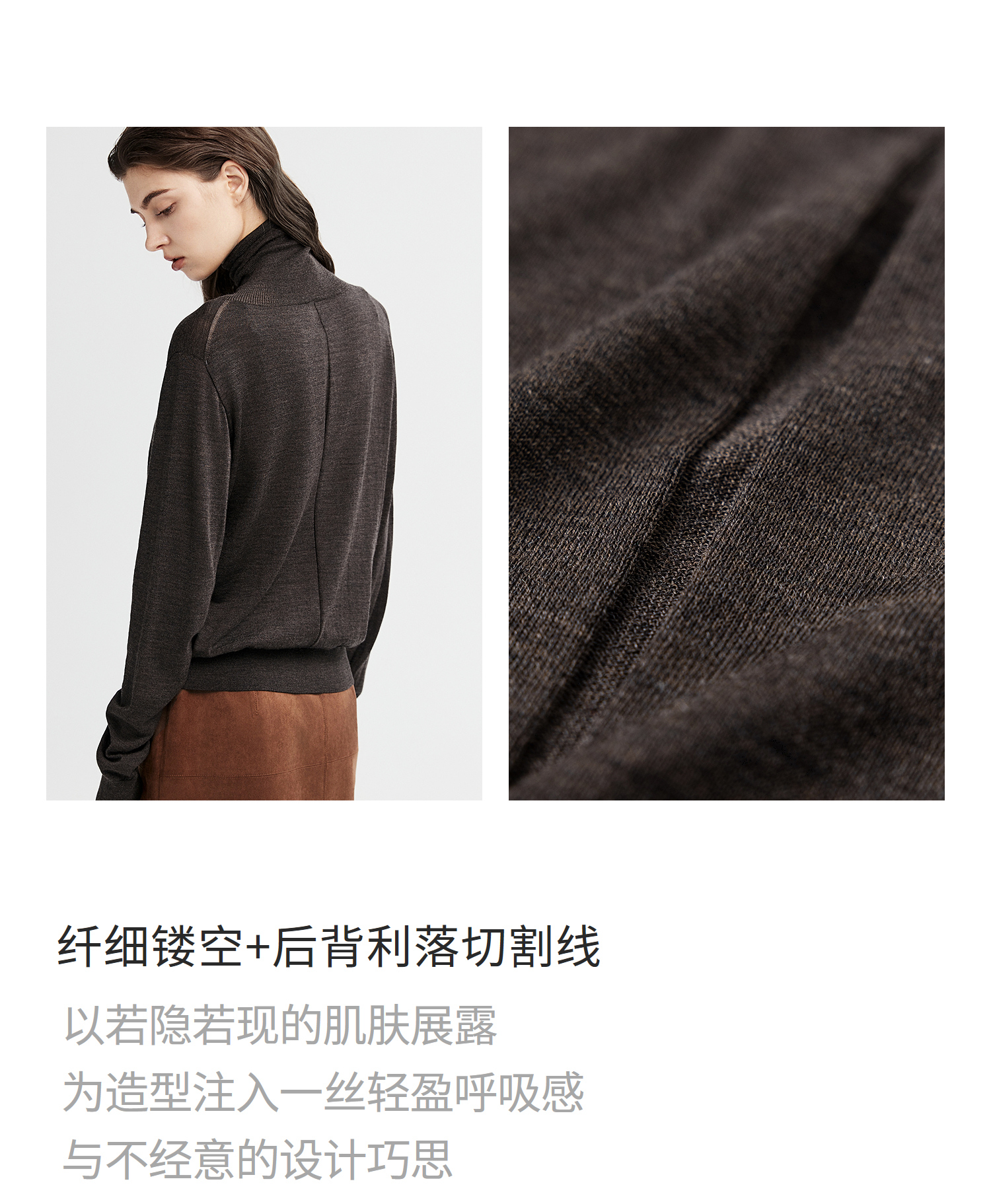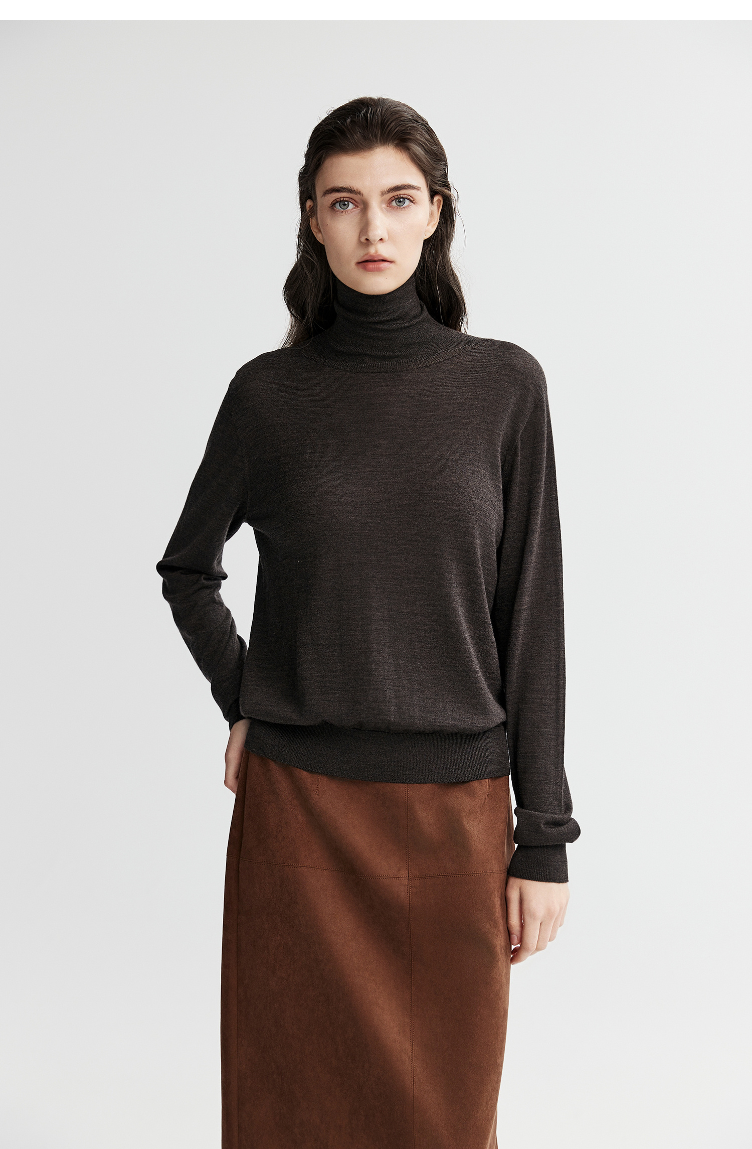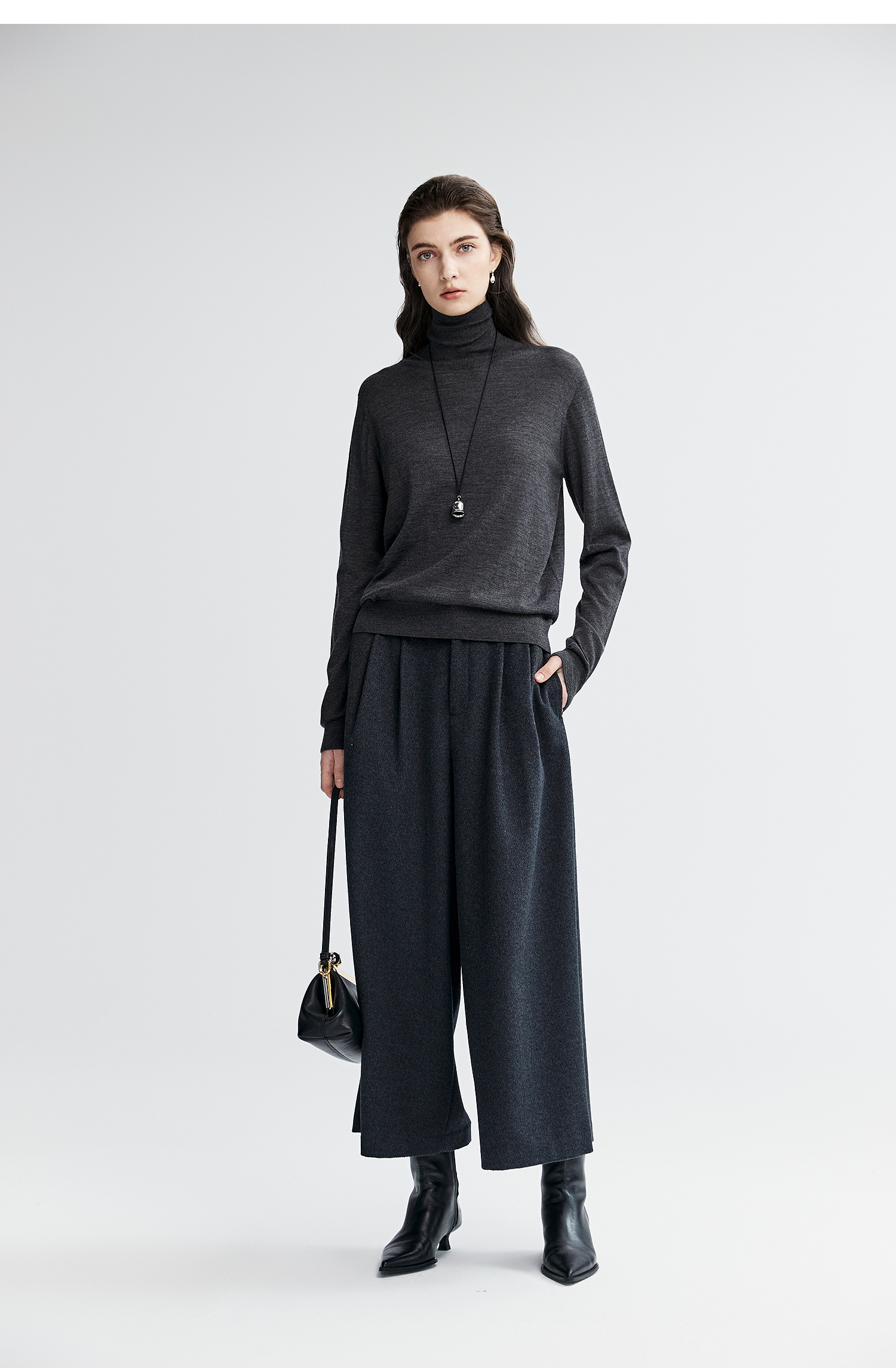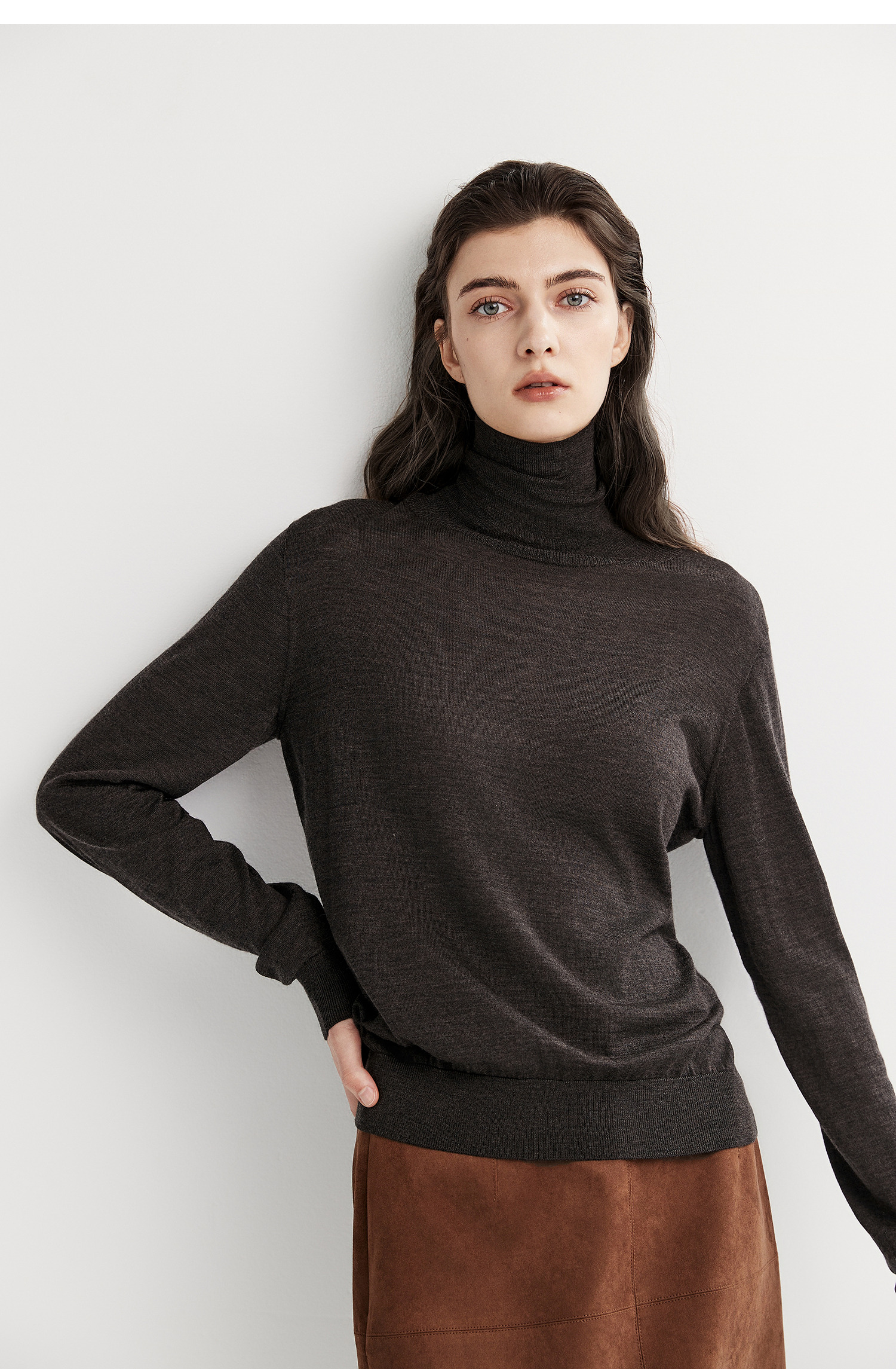 棉仓366635006-120s全羊毛静奢风可机洗毛衣女5秋新品正肩合体高领毛针织衫