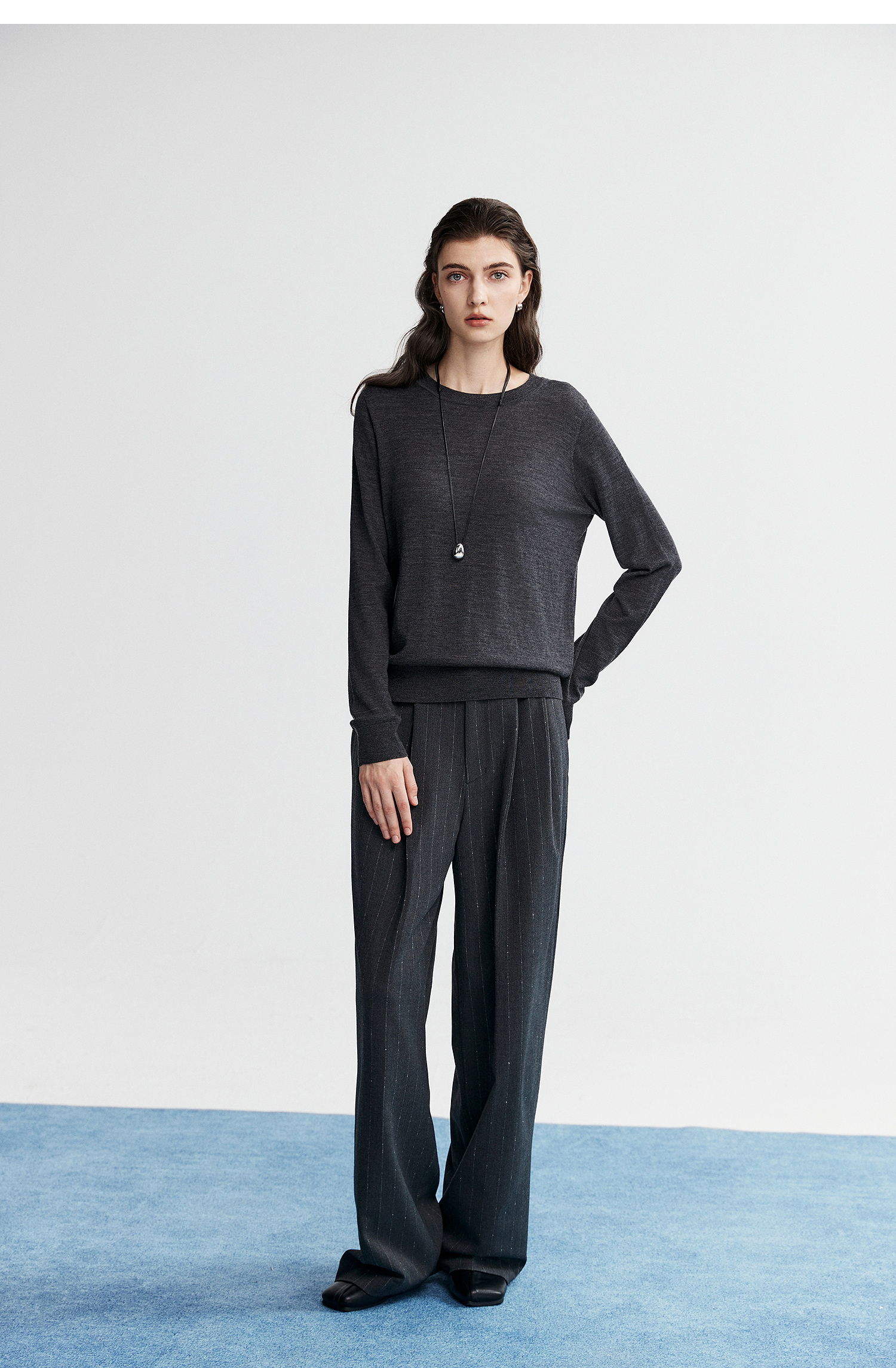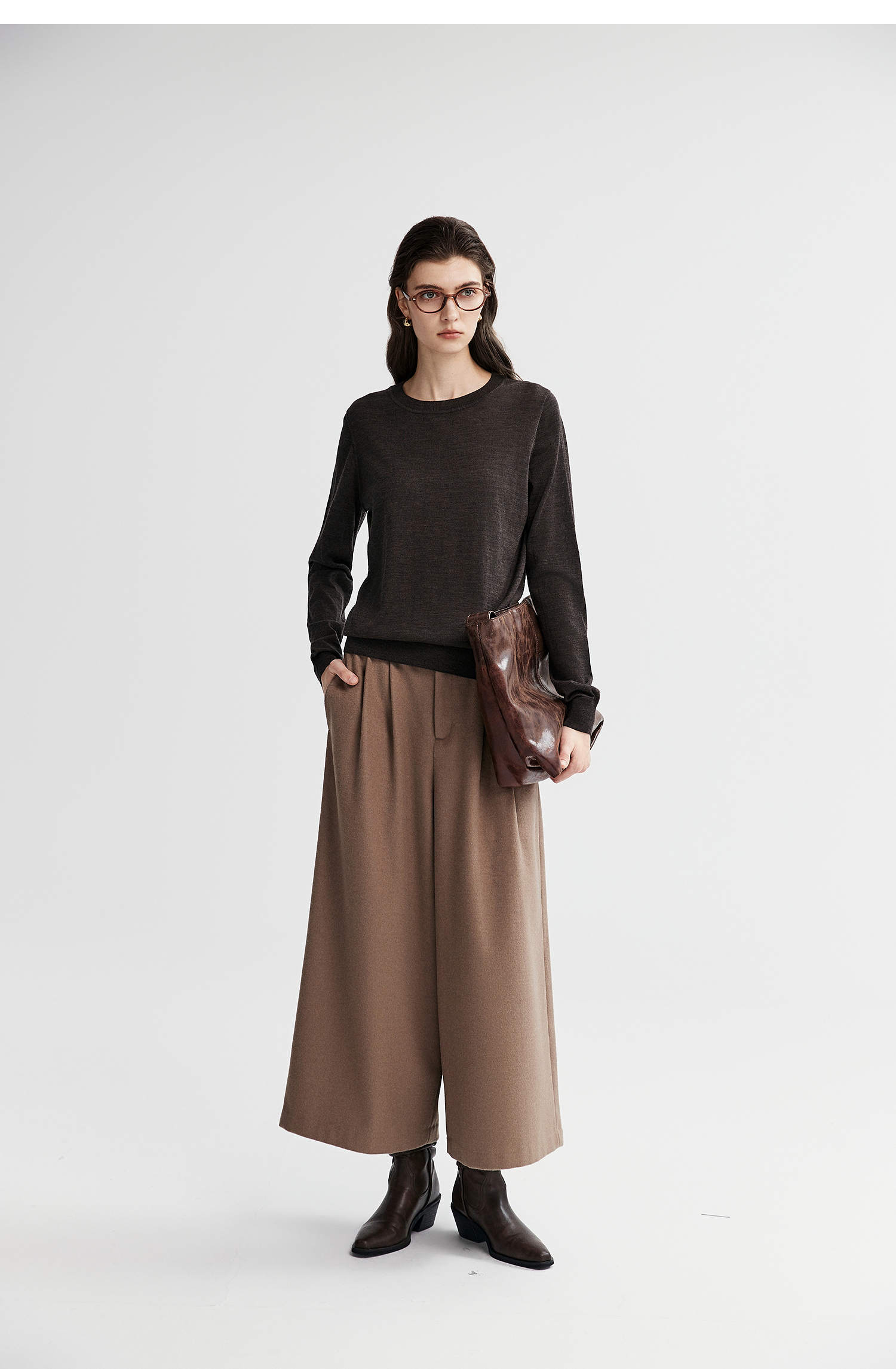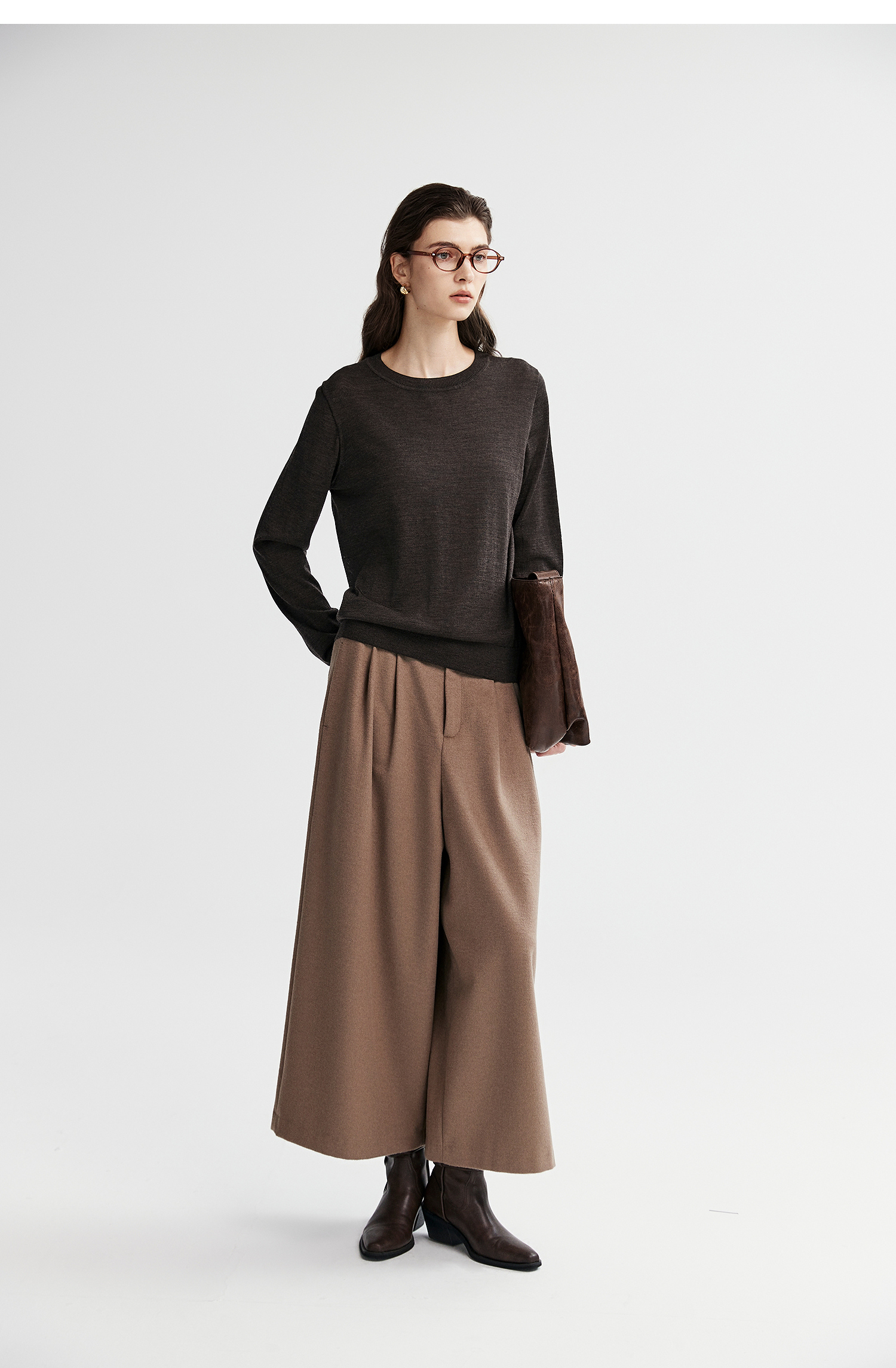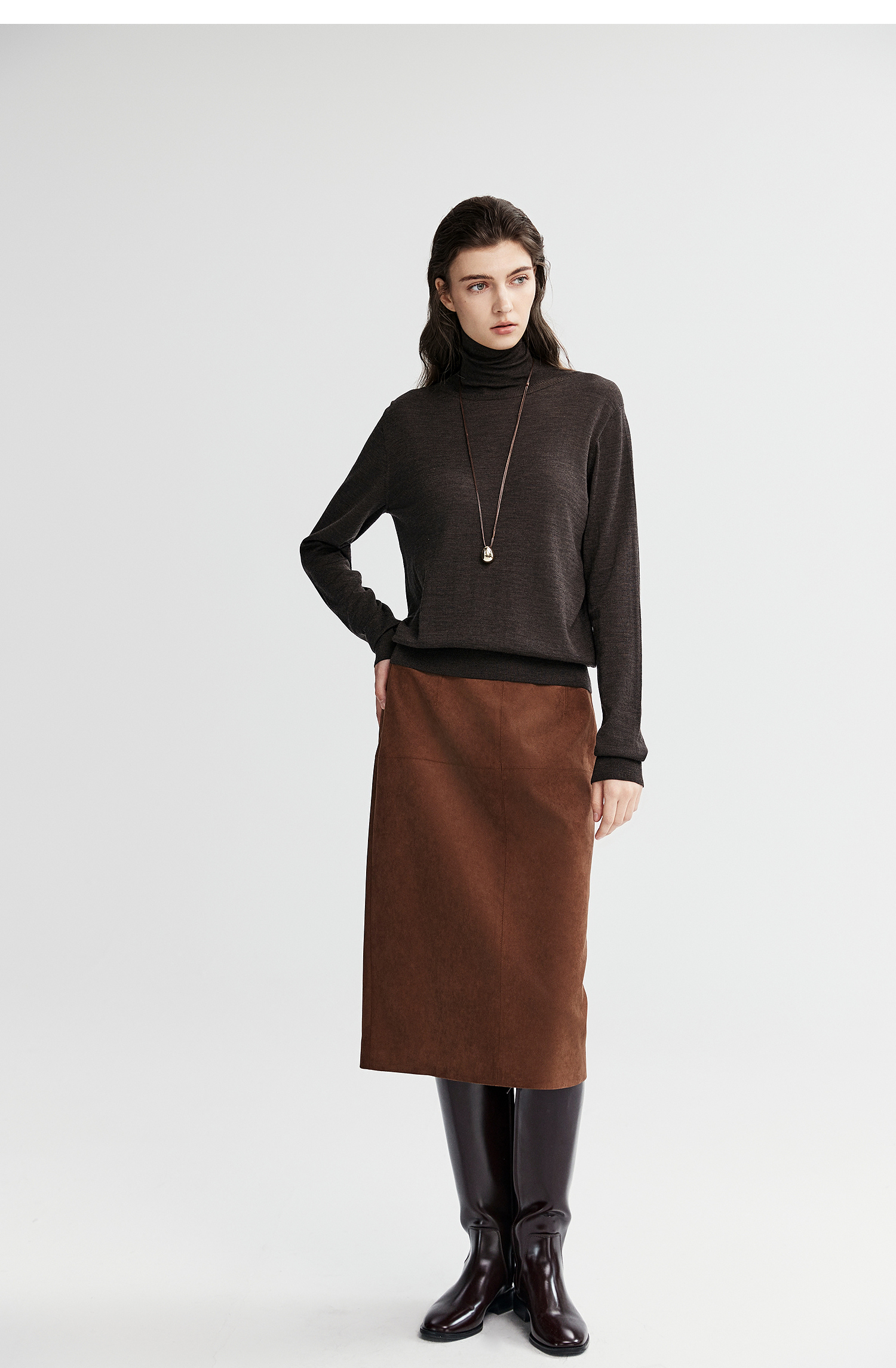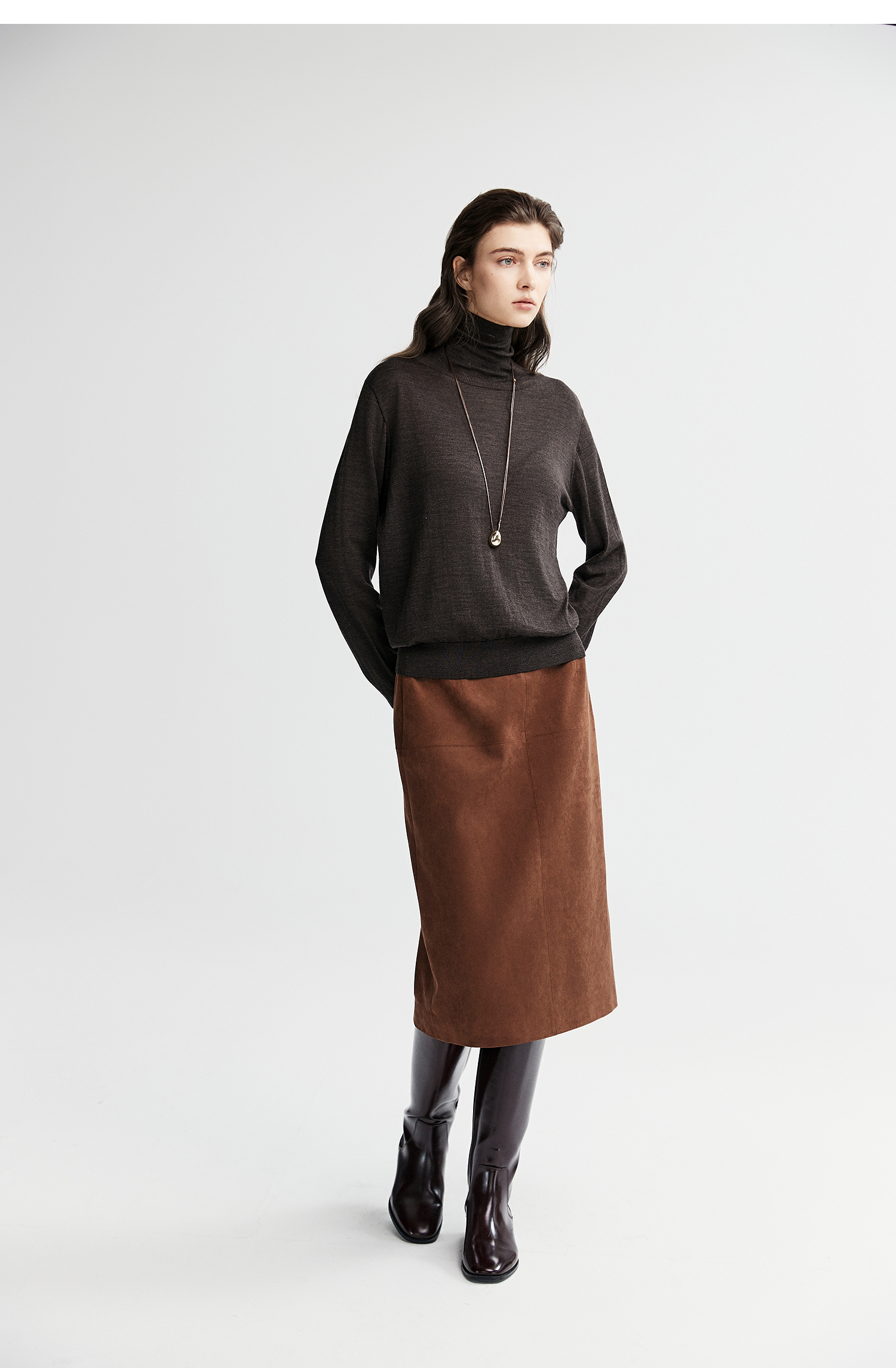 棉仓366635006-120s全羊毛静奢风可机洗毛衣女5秋新品正肩合体高领毛针织衫