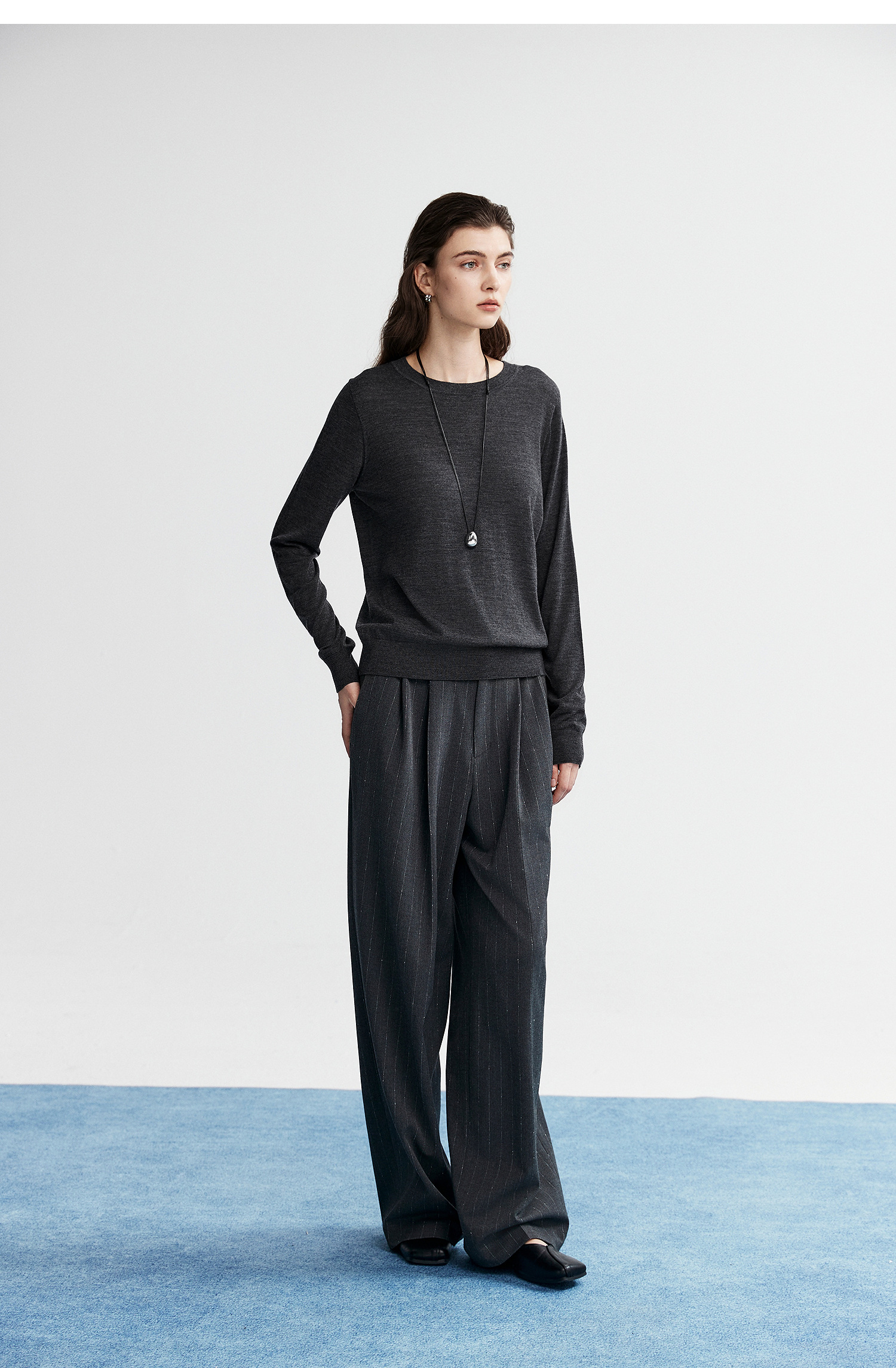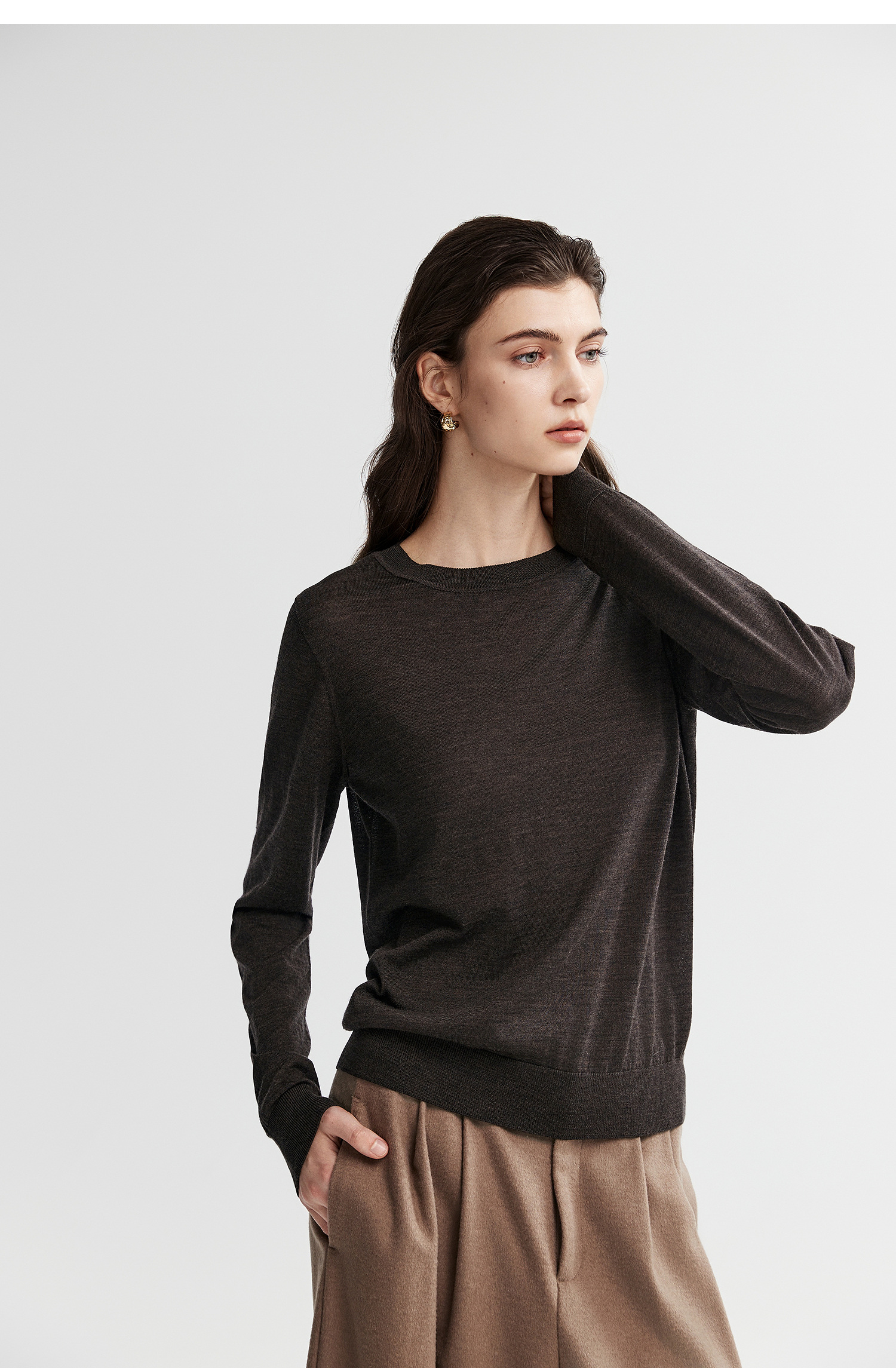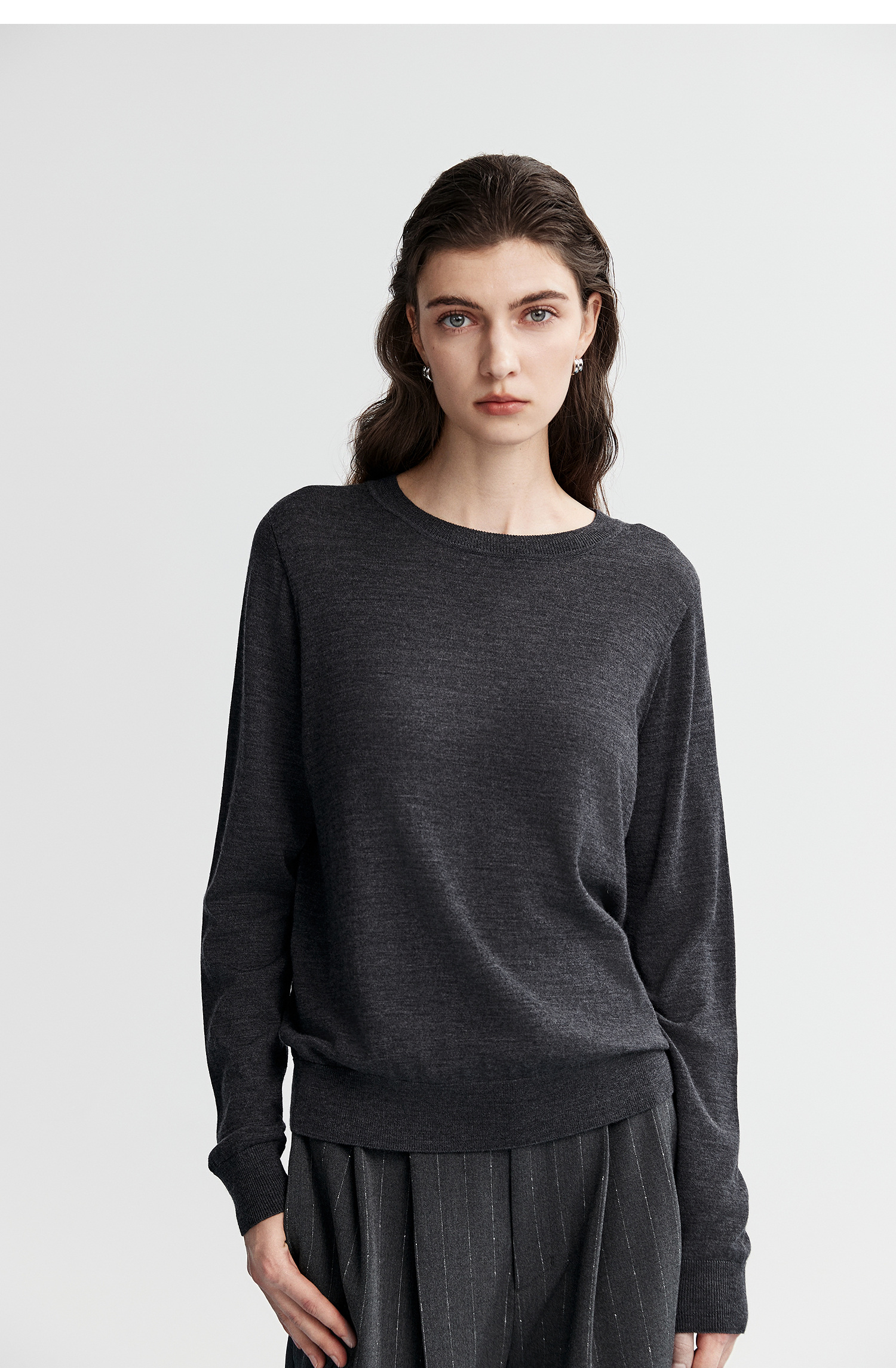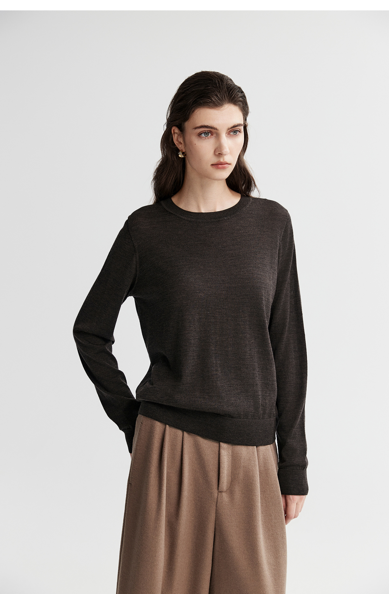 棉仓366635006-120s全羊毛静奢风可机洗毛衣女5秋新品正肩合体高领毛针织衫