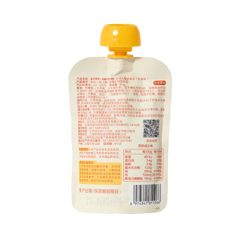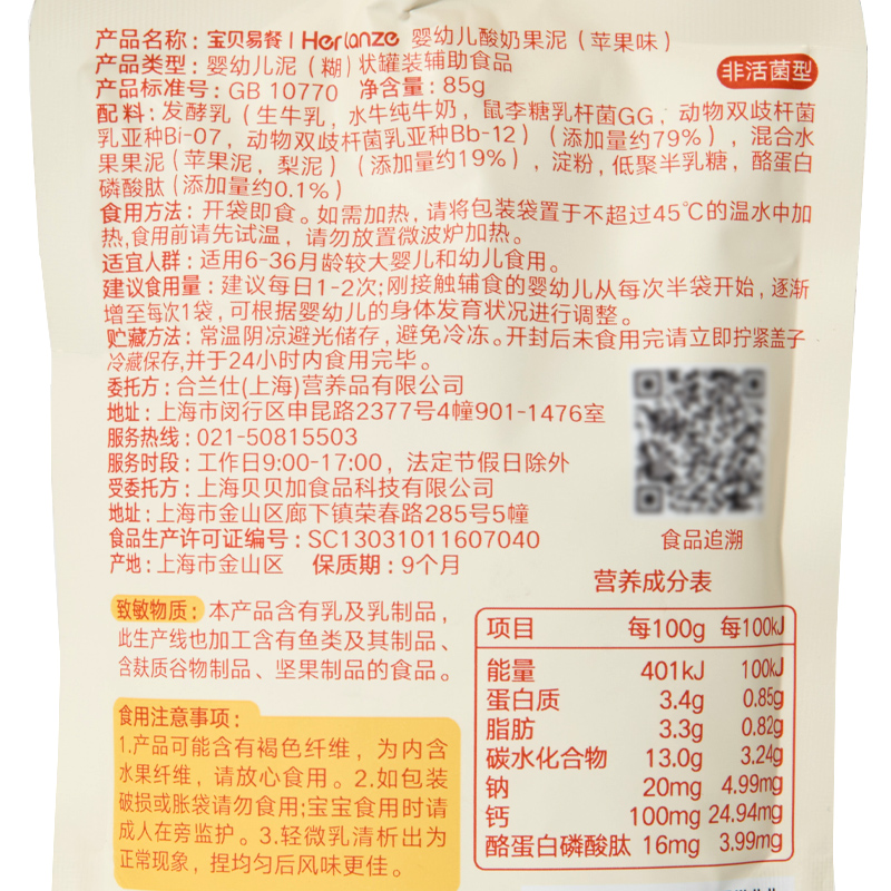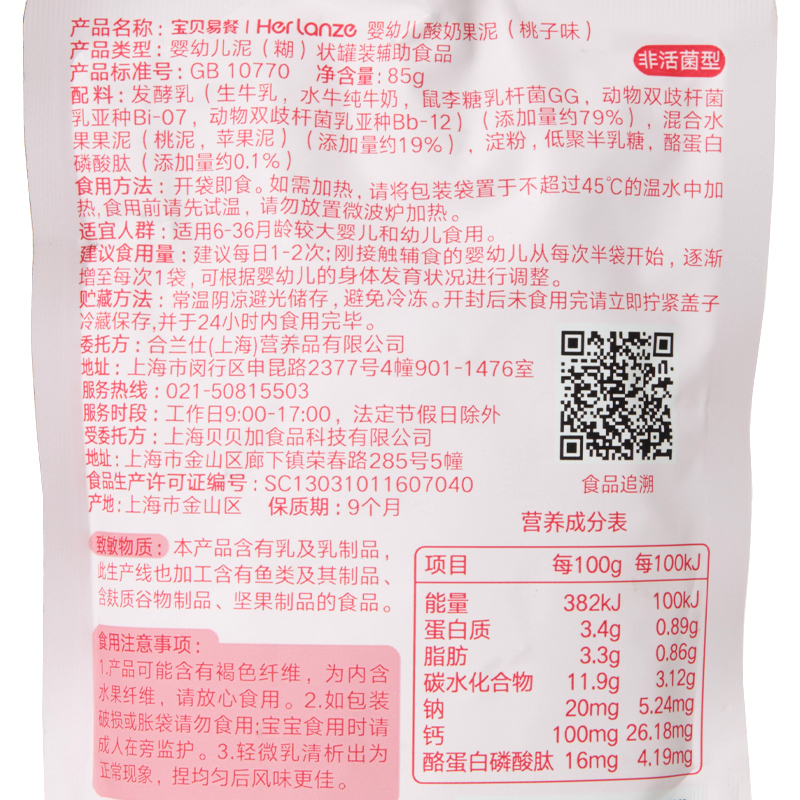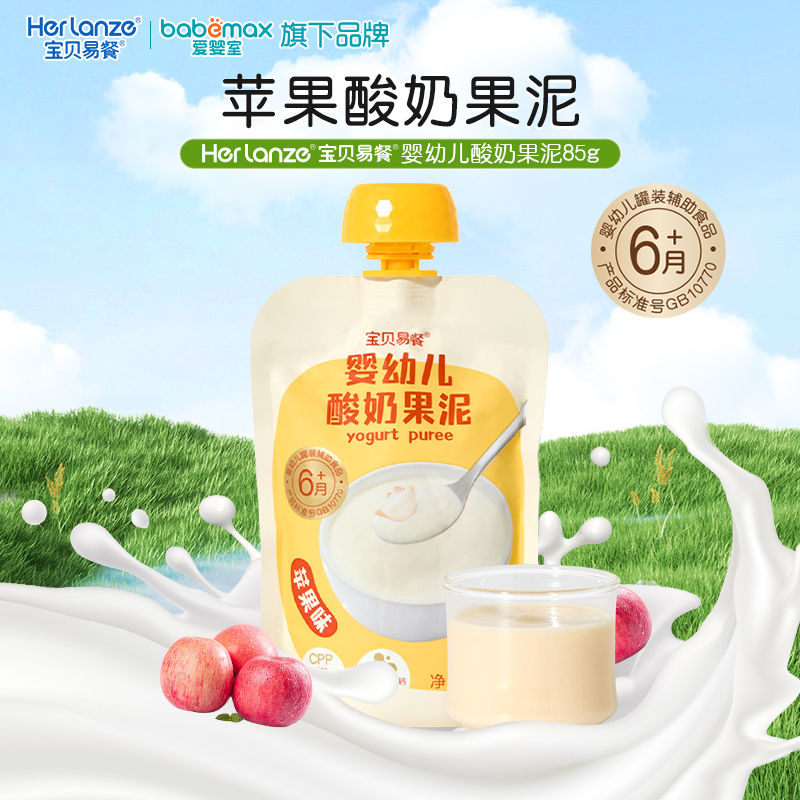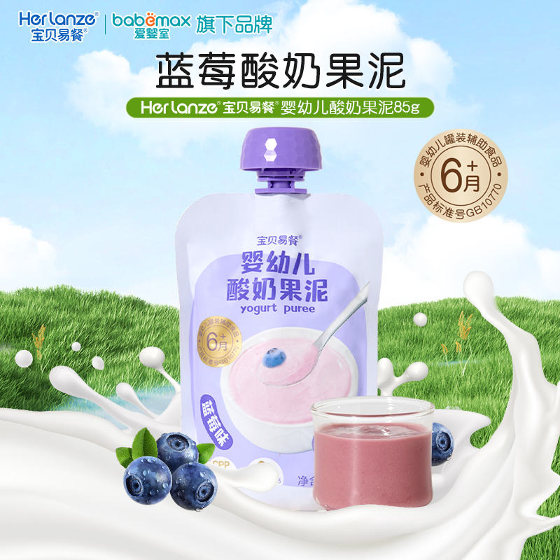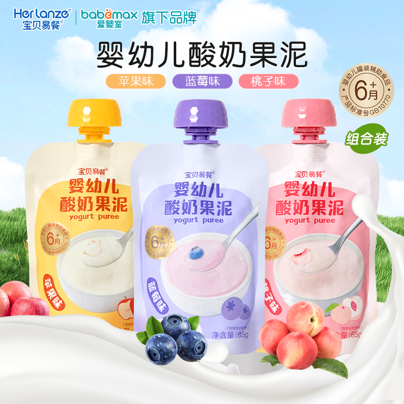 宝贝易餐婴幼儿苹果酸奶果泥\蓝莓酸奶果泥\桃子酸奶果泥85g