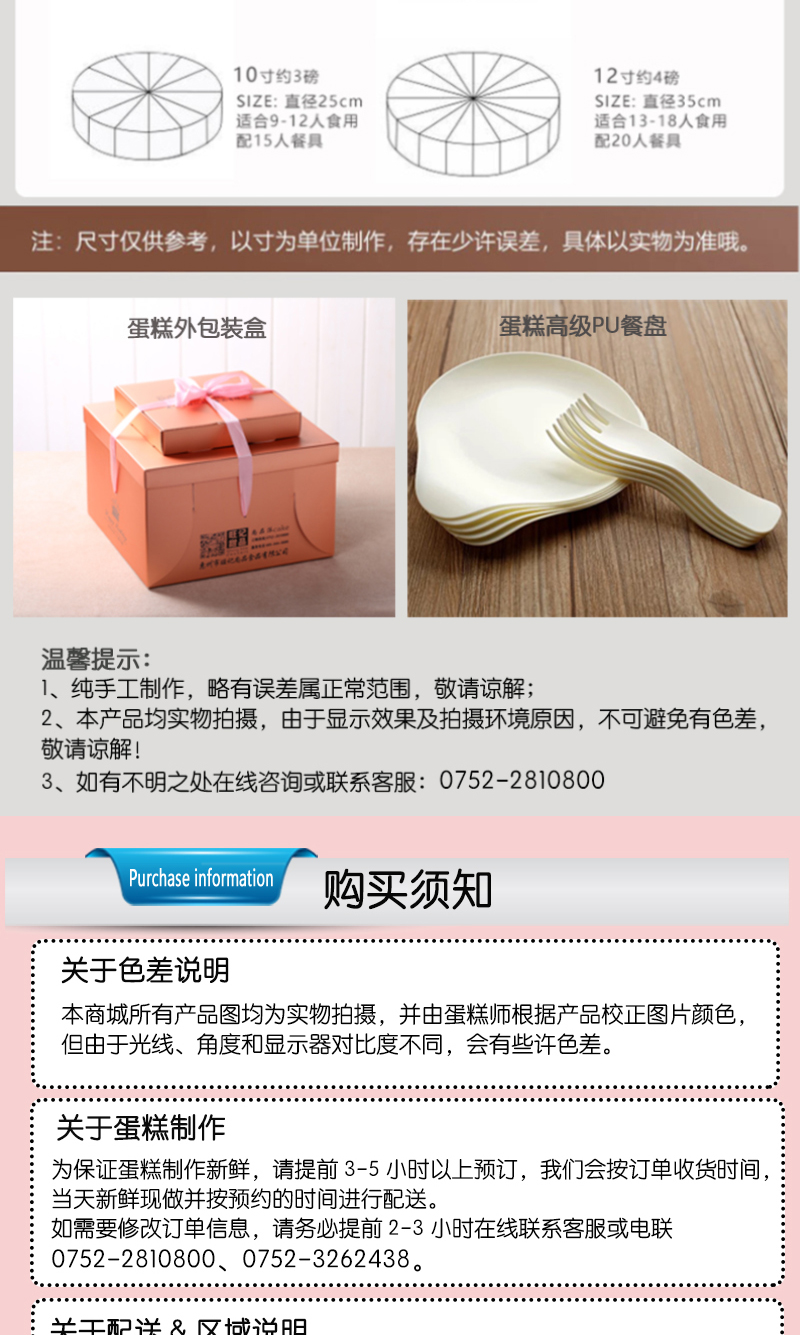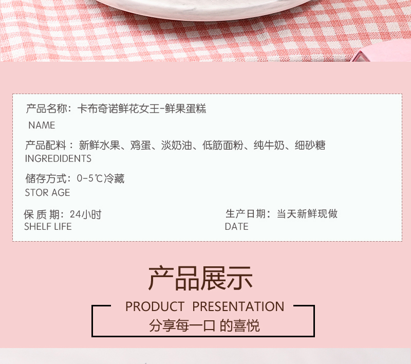 - 我们坚持当日接单、新鲜现做,拒绝罐头果肉与植物奶油,让每一口都保留食材本真的鲜活清甜。生活需要一点甜,我们的蛋糕不只是一份甜品,更是传递快乐的仪式感,为你带来视觉与味蕾的双重满足~