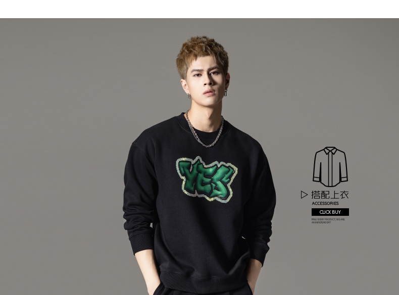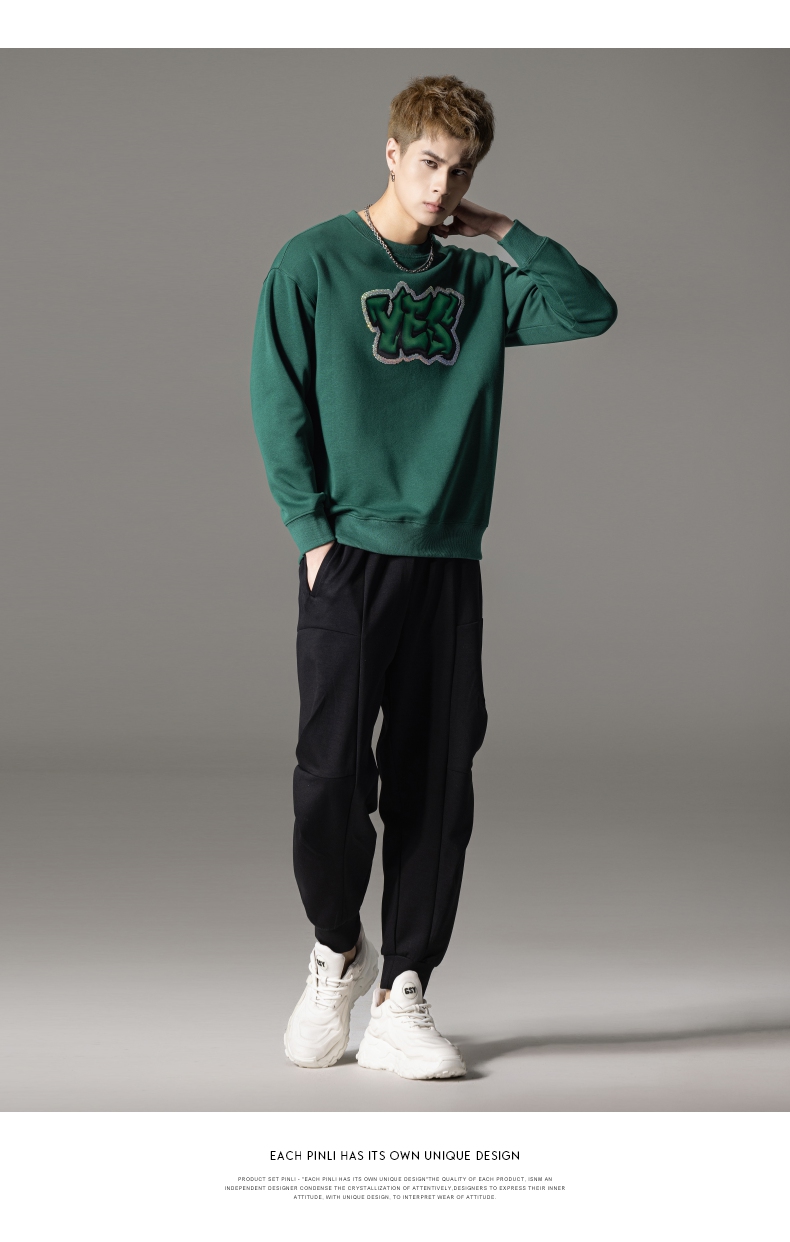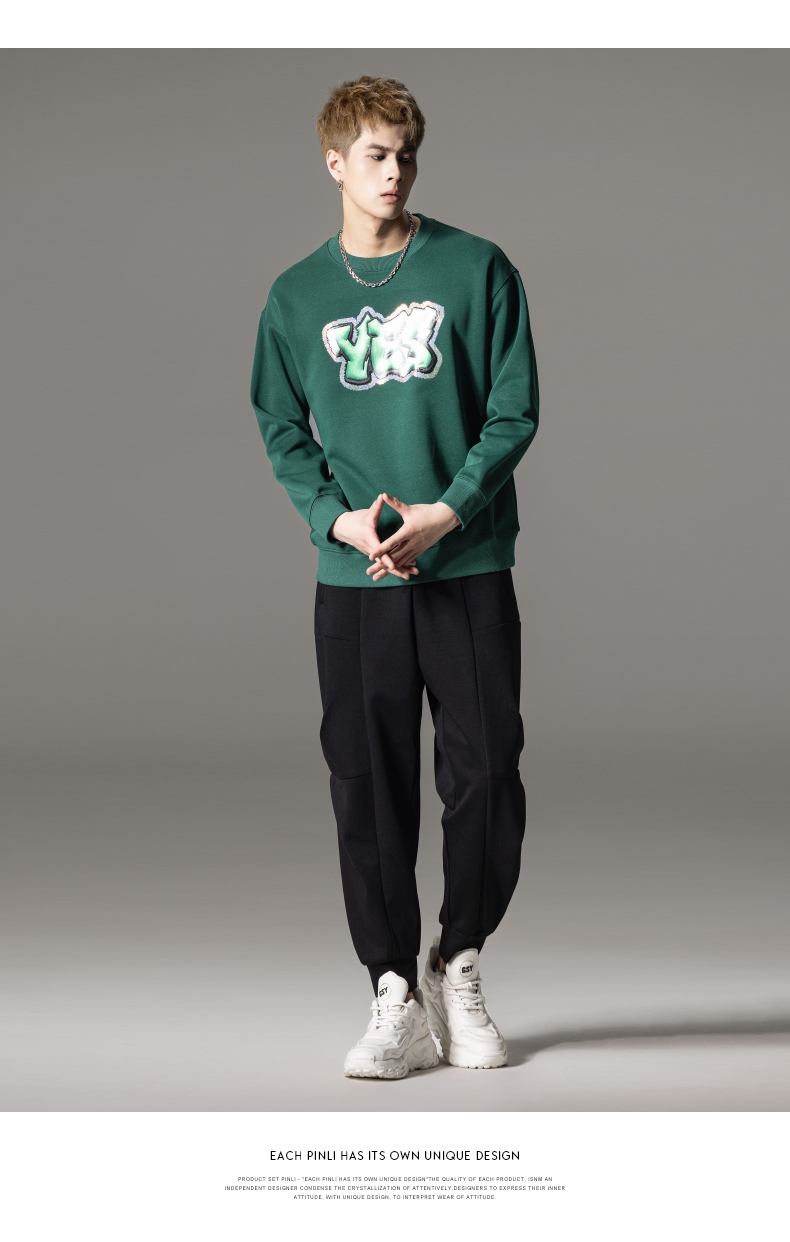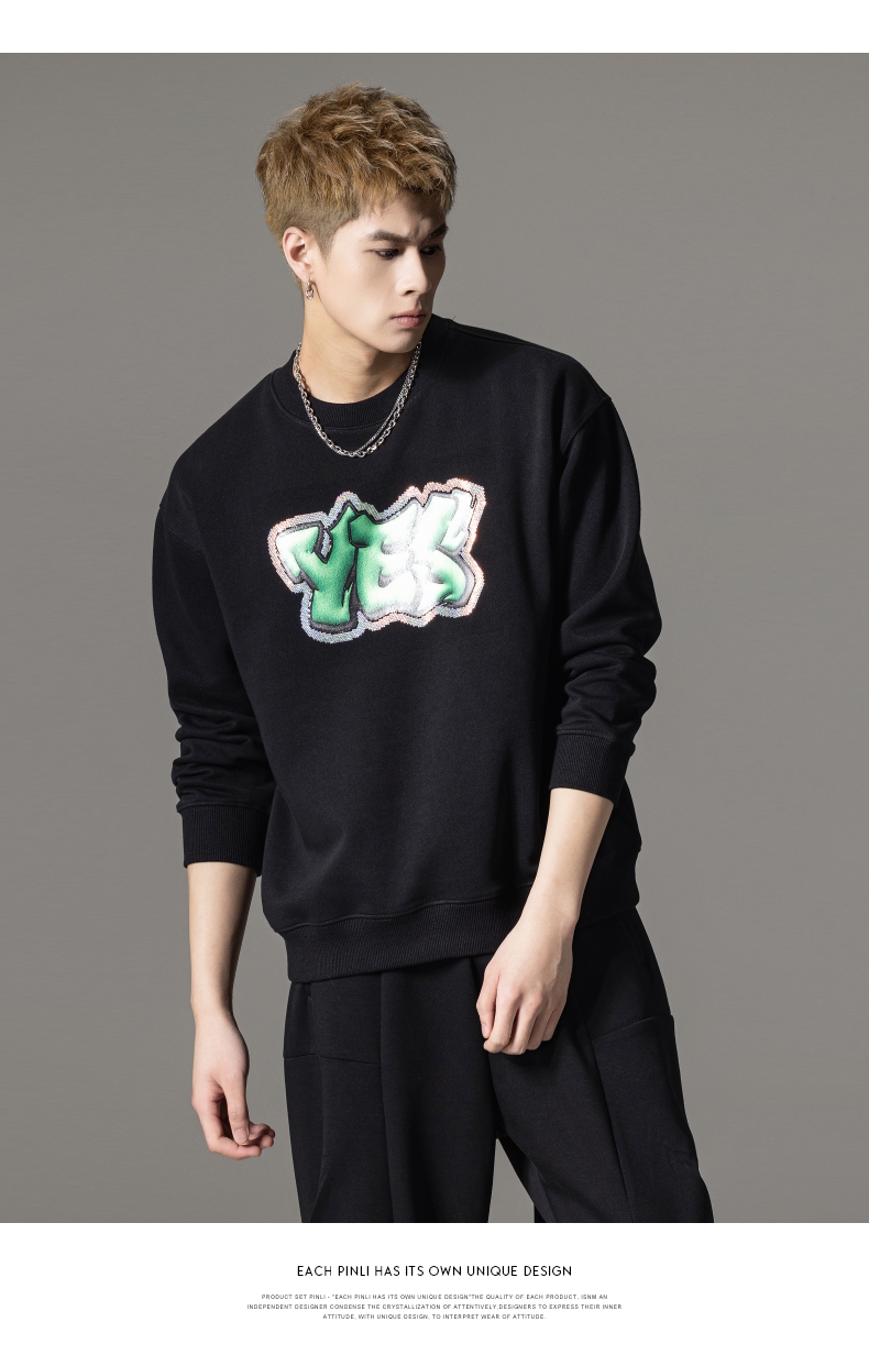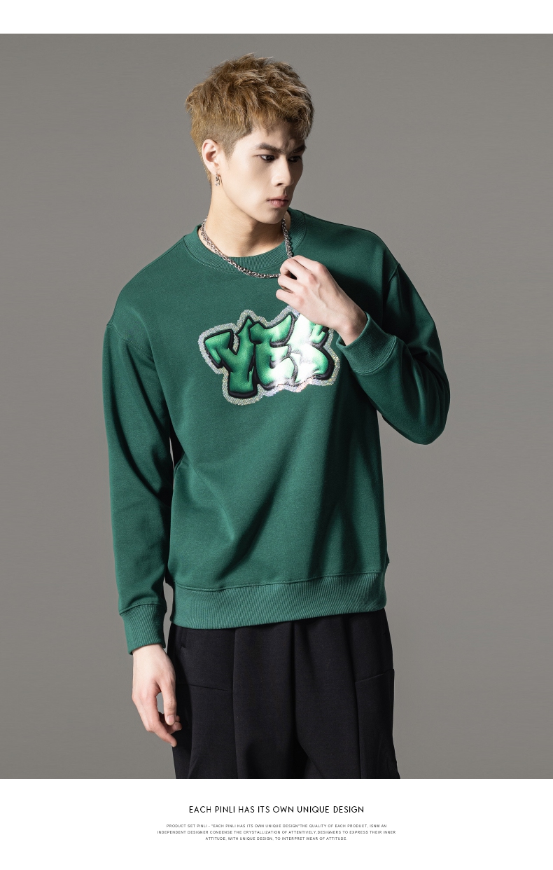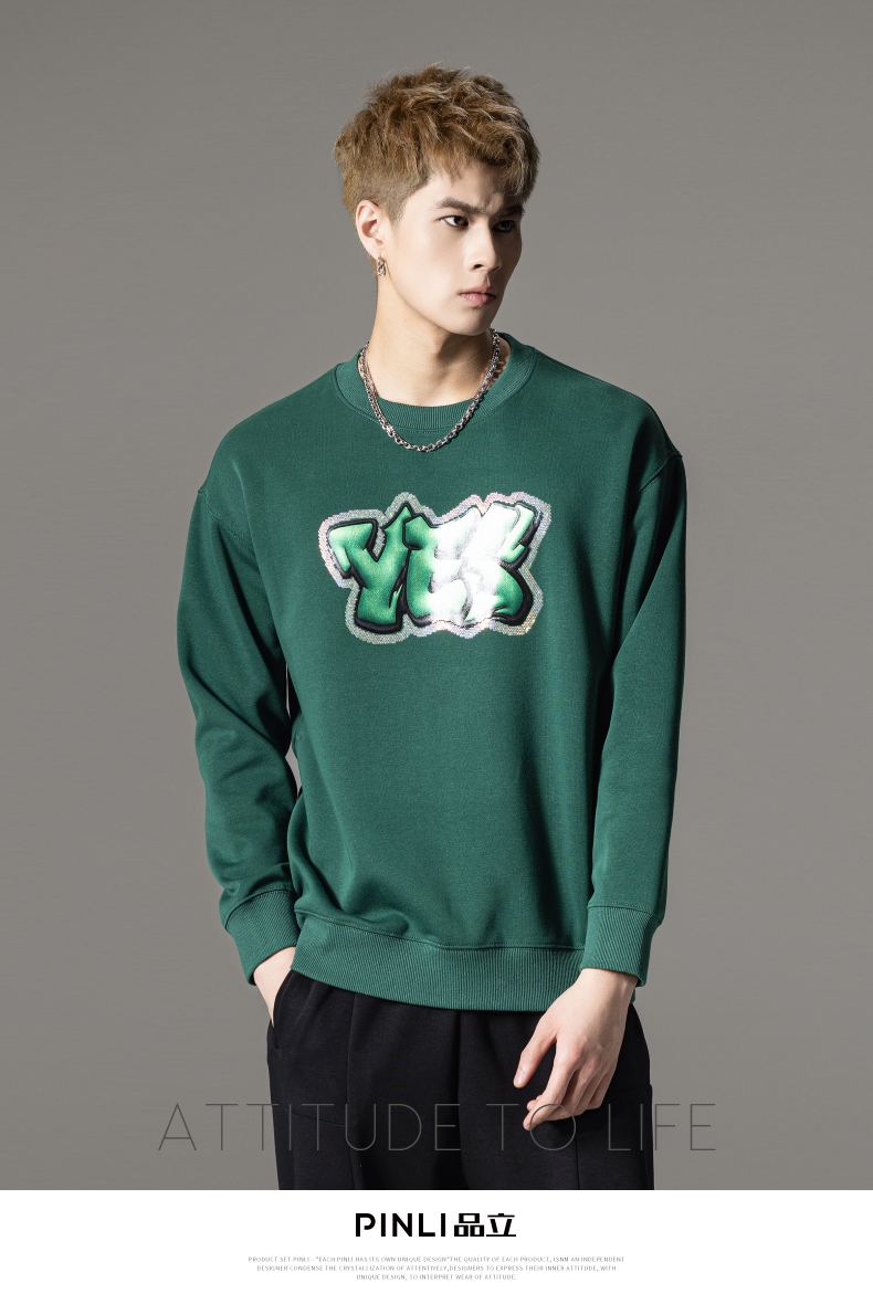 PINLI品立秋冬新款字母印花套头卫衣潮男休闲上衣BG233109042
