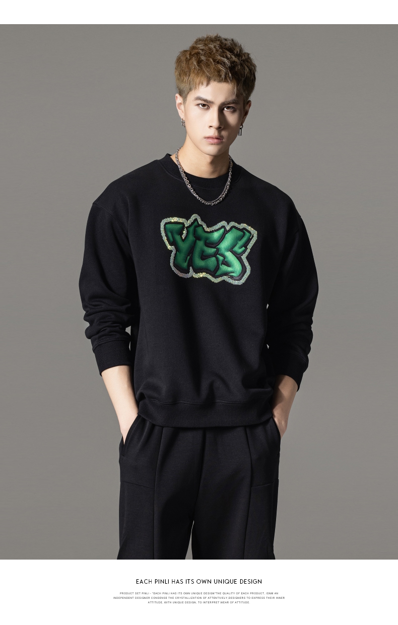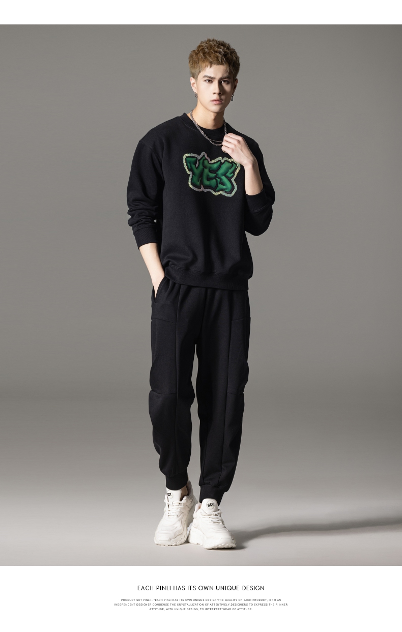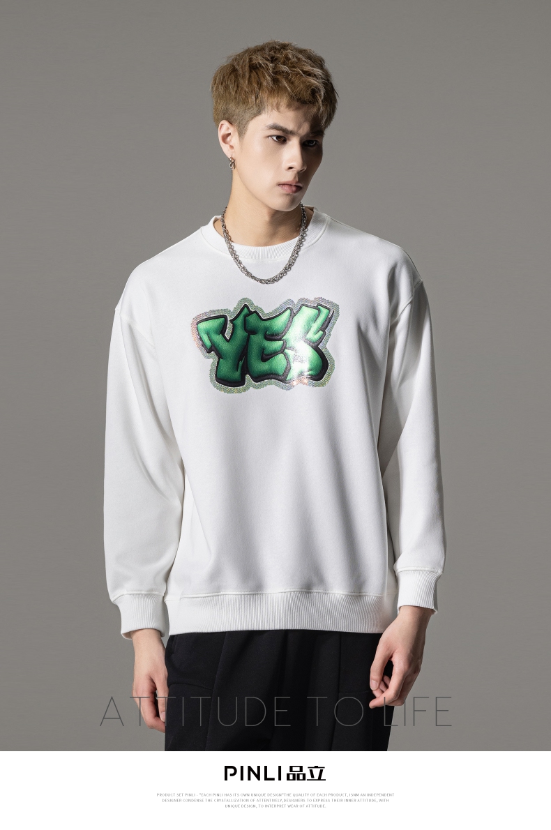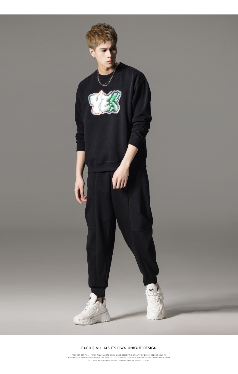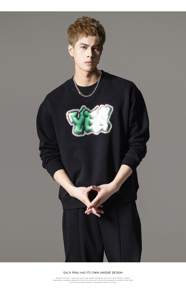 PINLI品立秋冬新款字母印花套头卫衣潮男休闲上衣BG233109042
