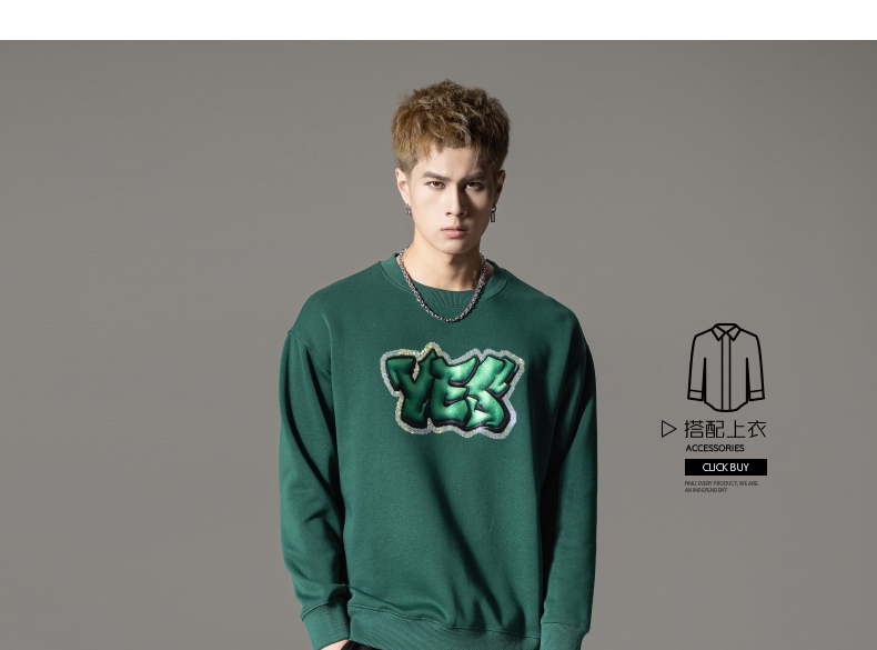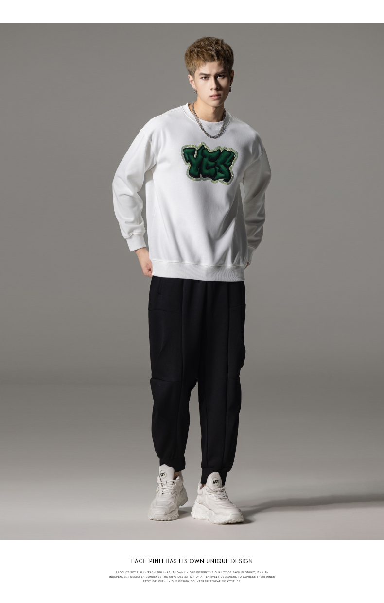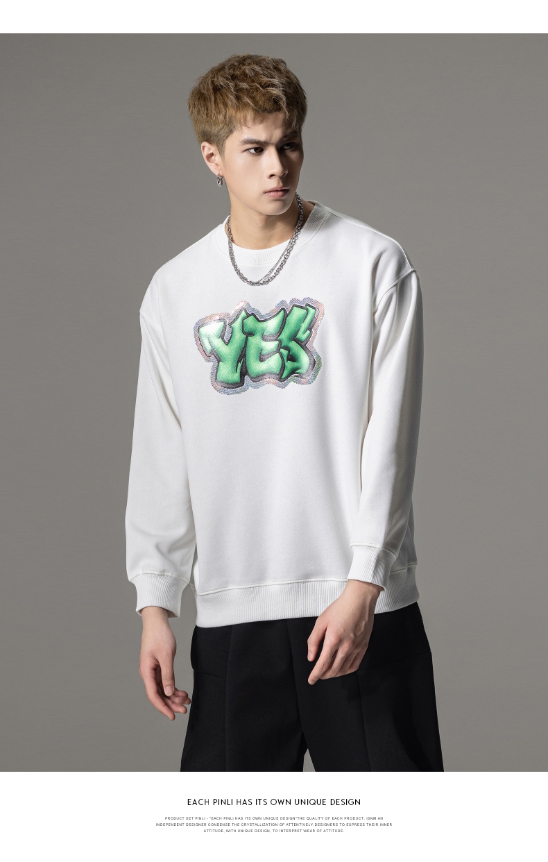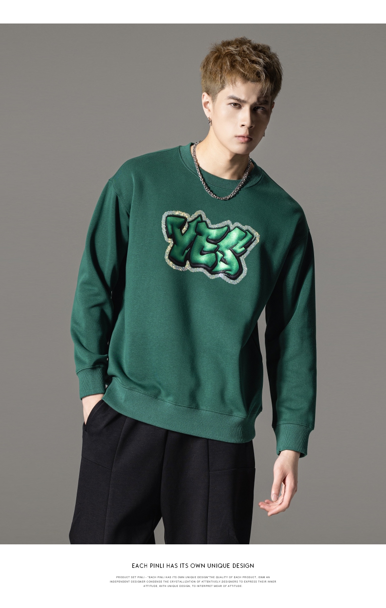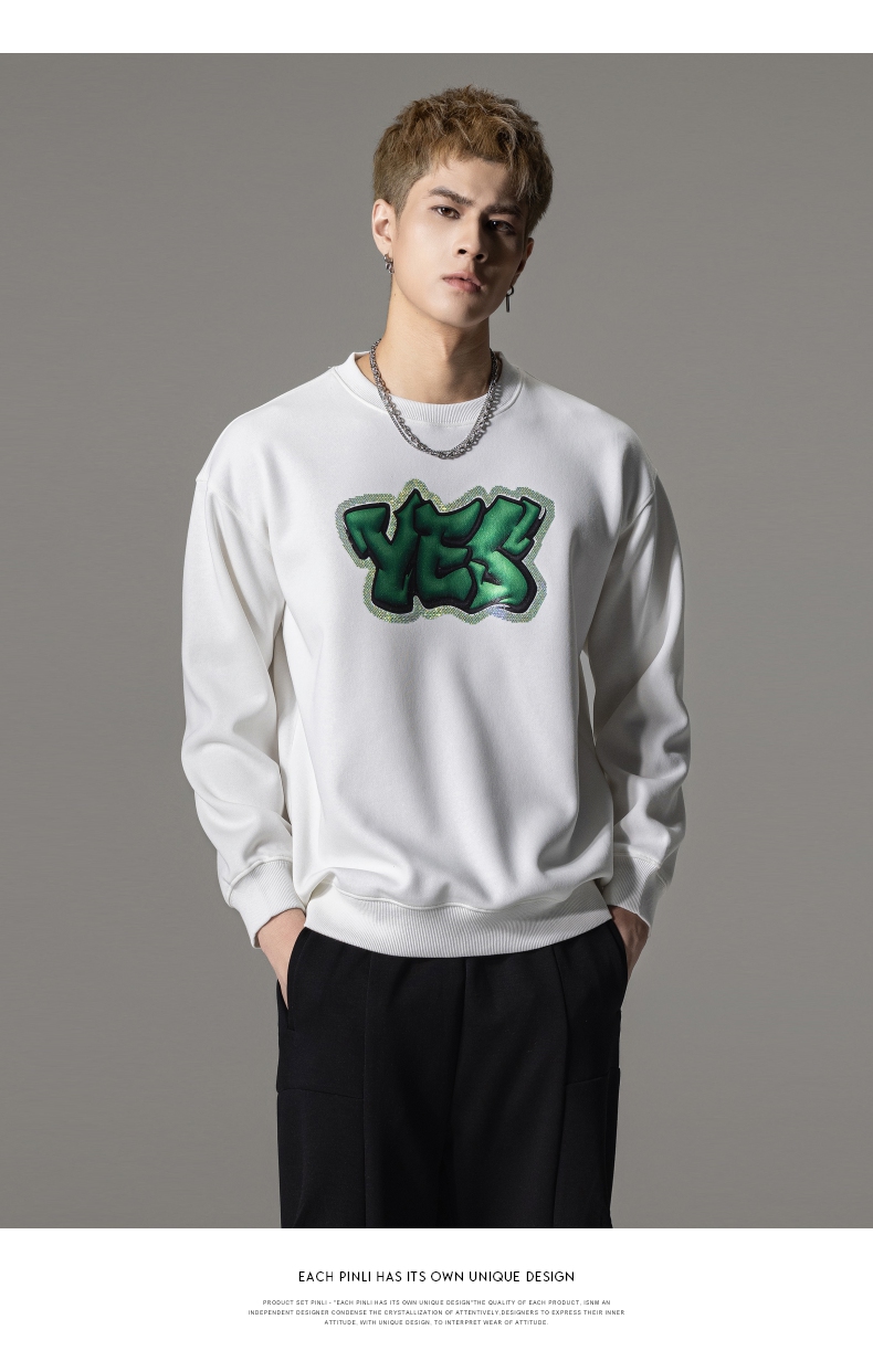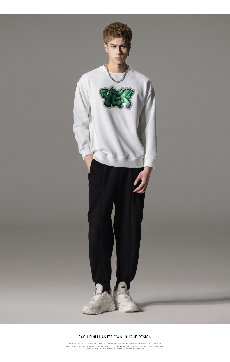 PINLI品立秋冬新款字母印花套头卫衣潮男休闲上衣BG233109042