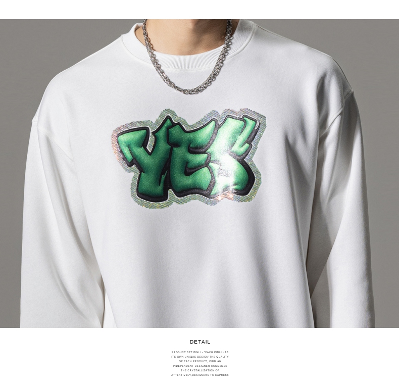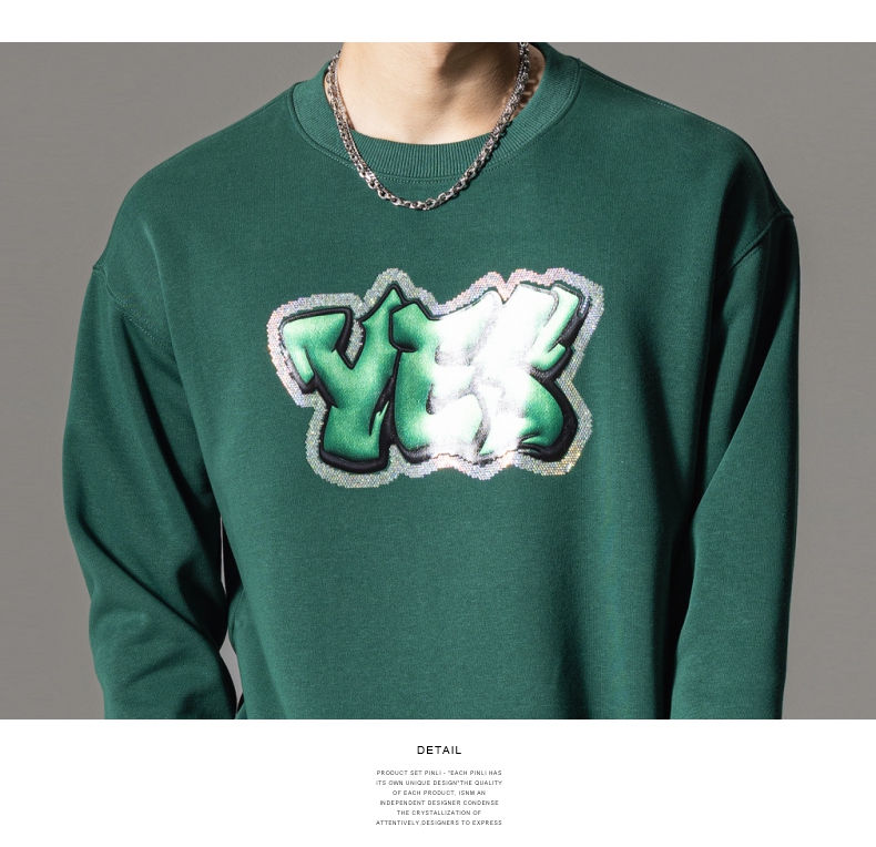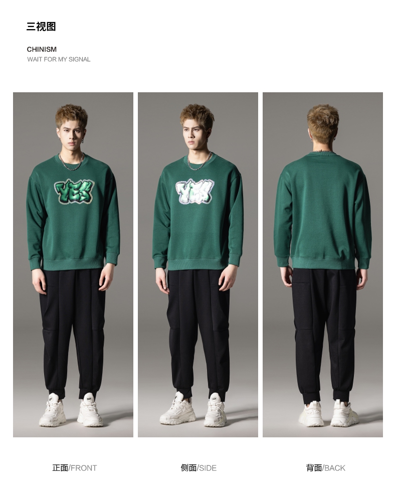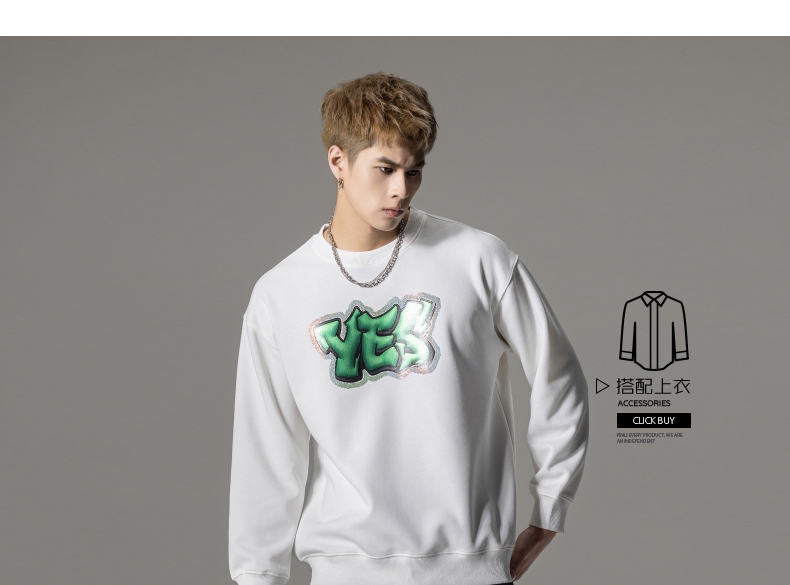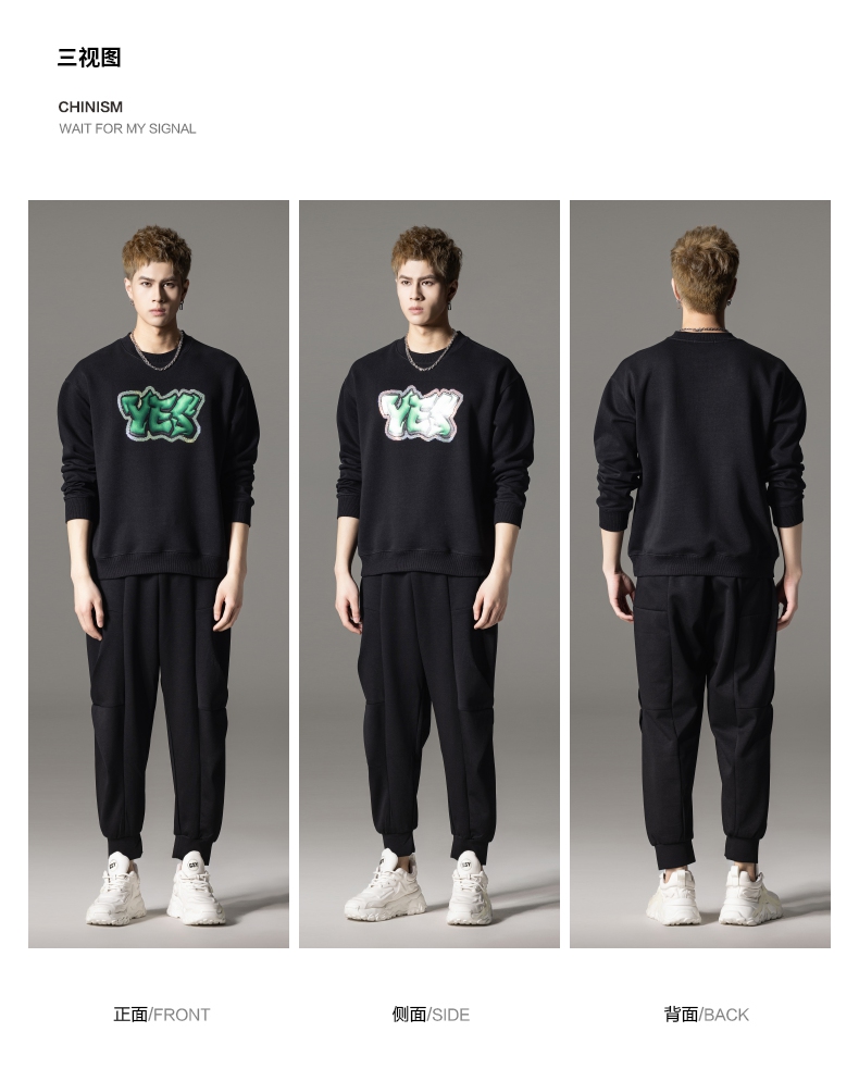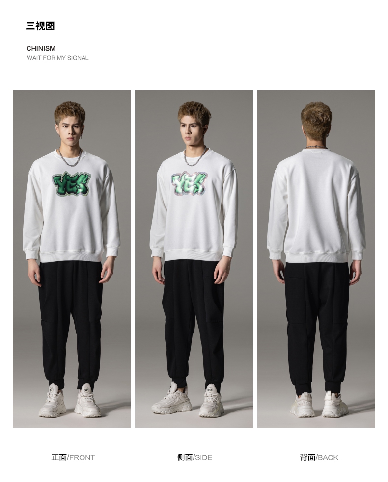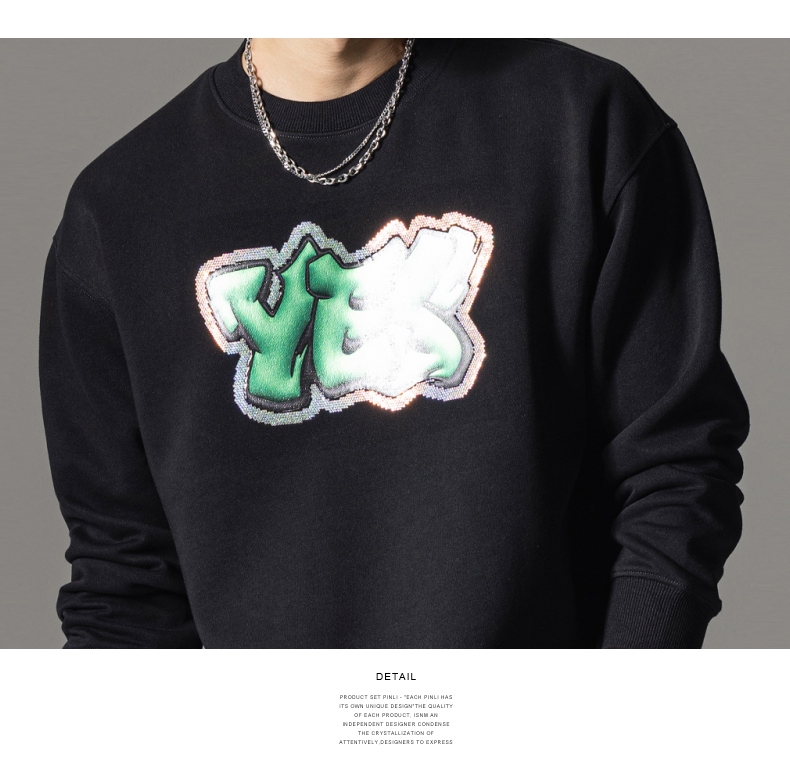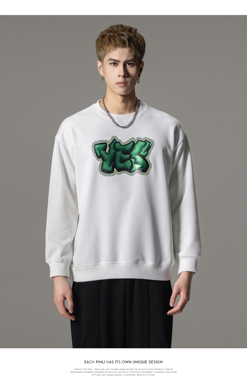 PINLI品立秋冬新款字母印花套头卫衣潮男休闲上衣BG233109042