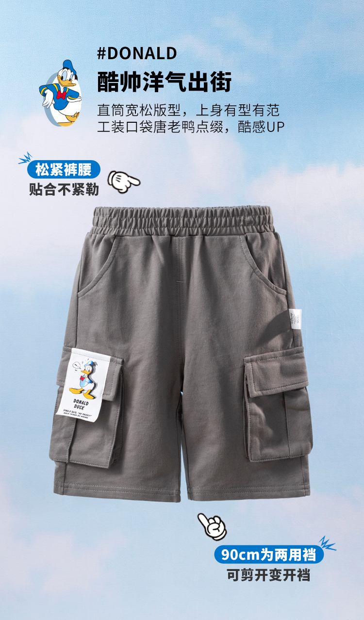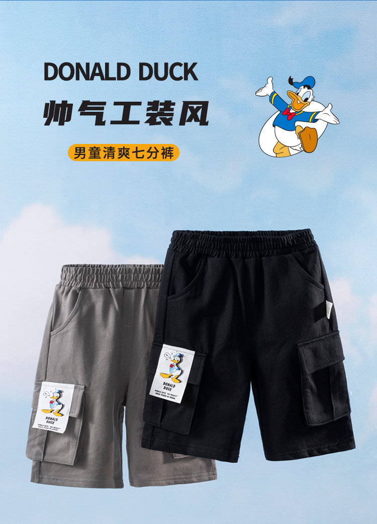 【商场同款】迪士尼童装男童帅气工装风七分裤夏季清爽中大童宝唐老鸭纯棉短裤