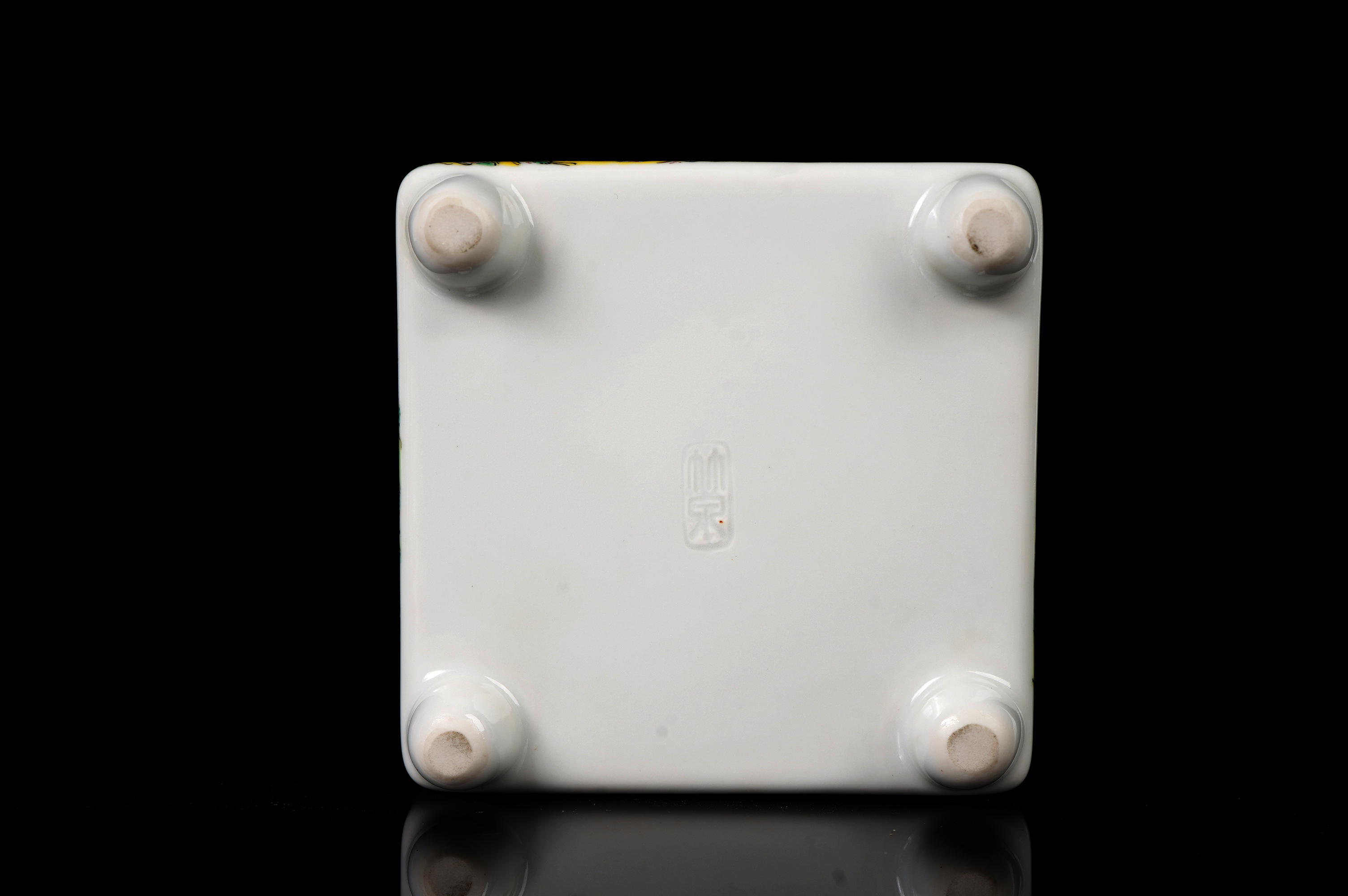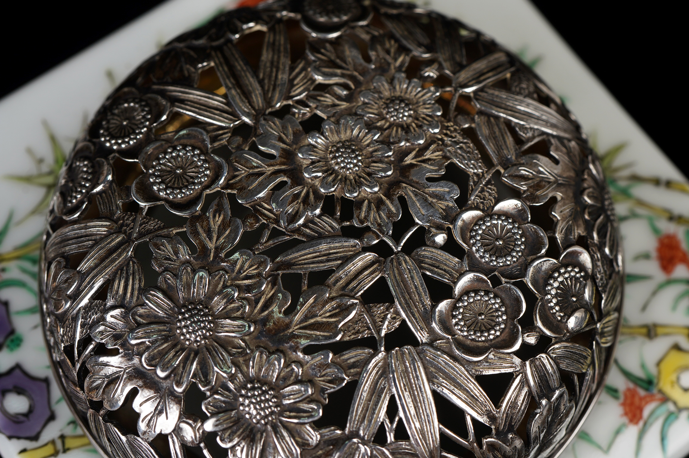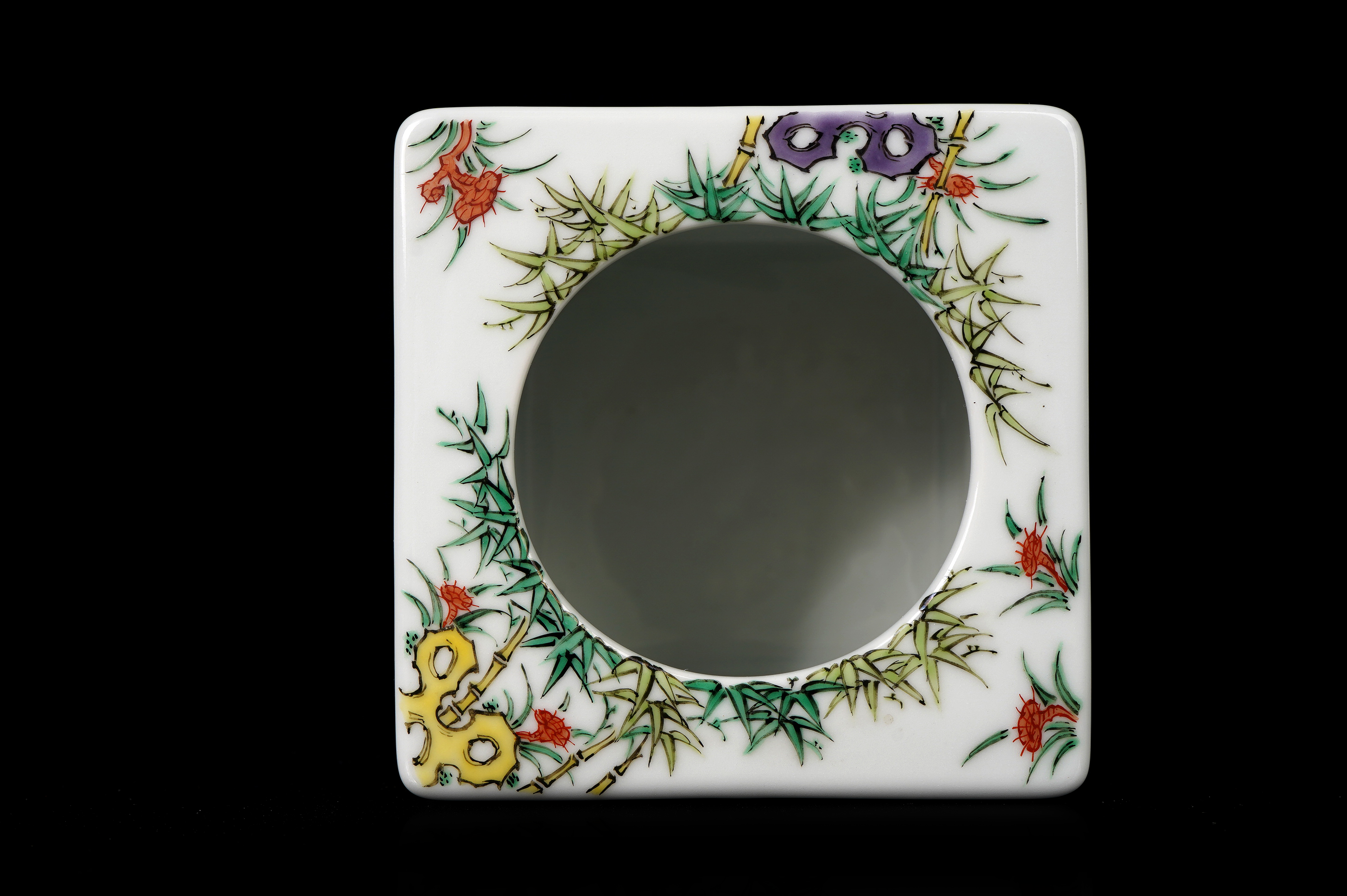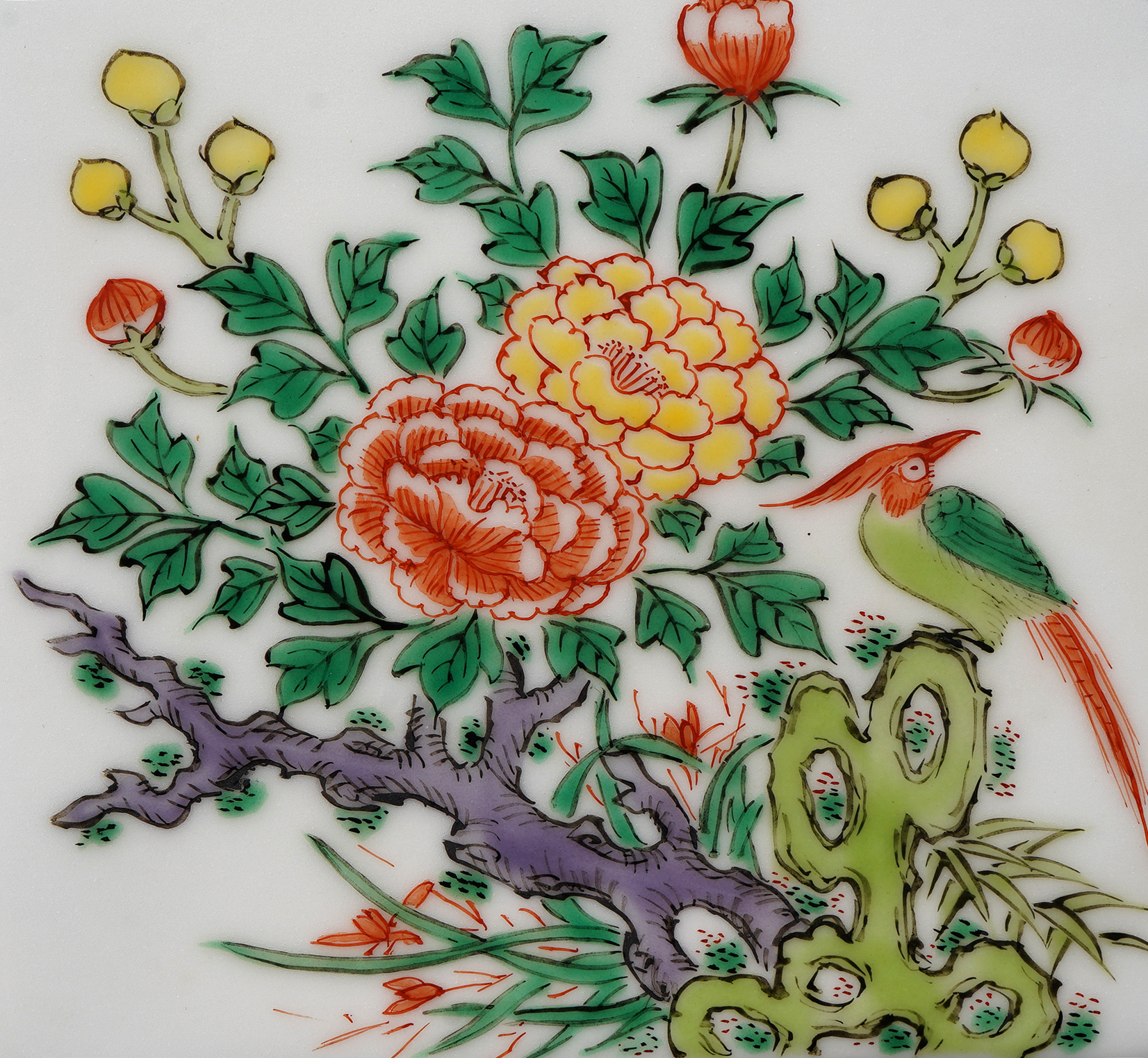 描述:以梅兰竹菊四君子为题材,瑞鸟环绕,用色鲜明,比例协调,小藏佳品。