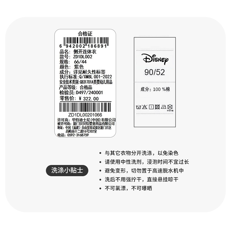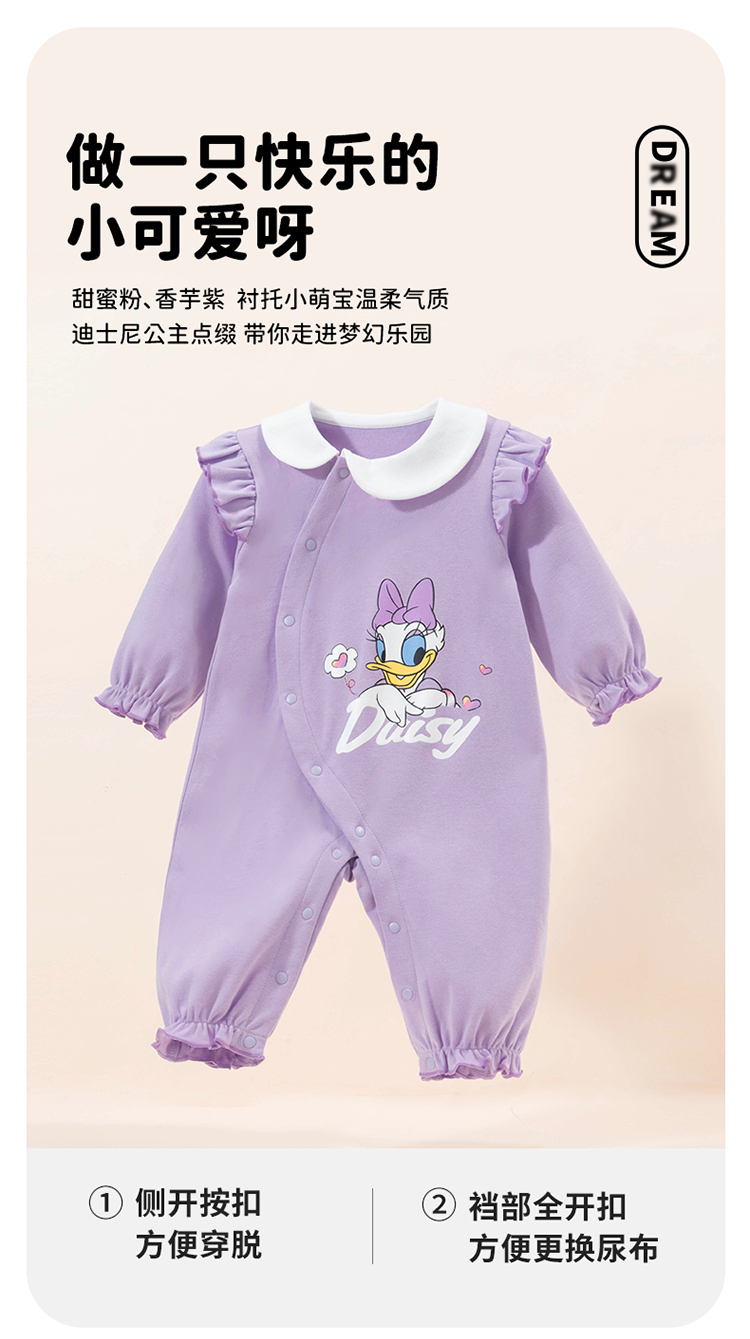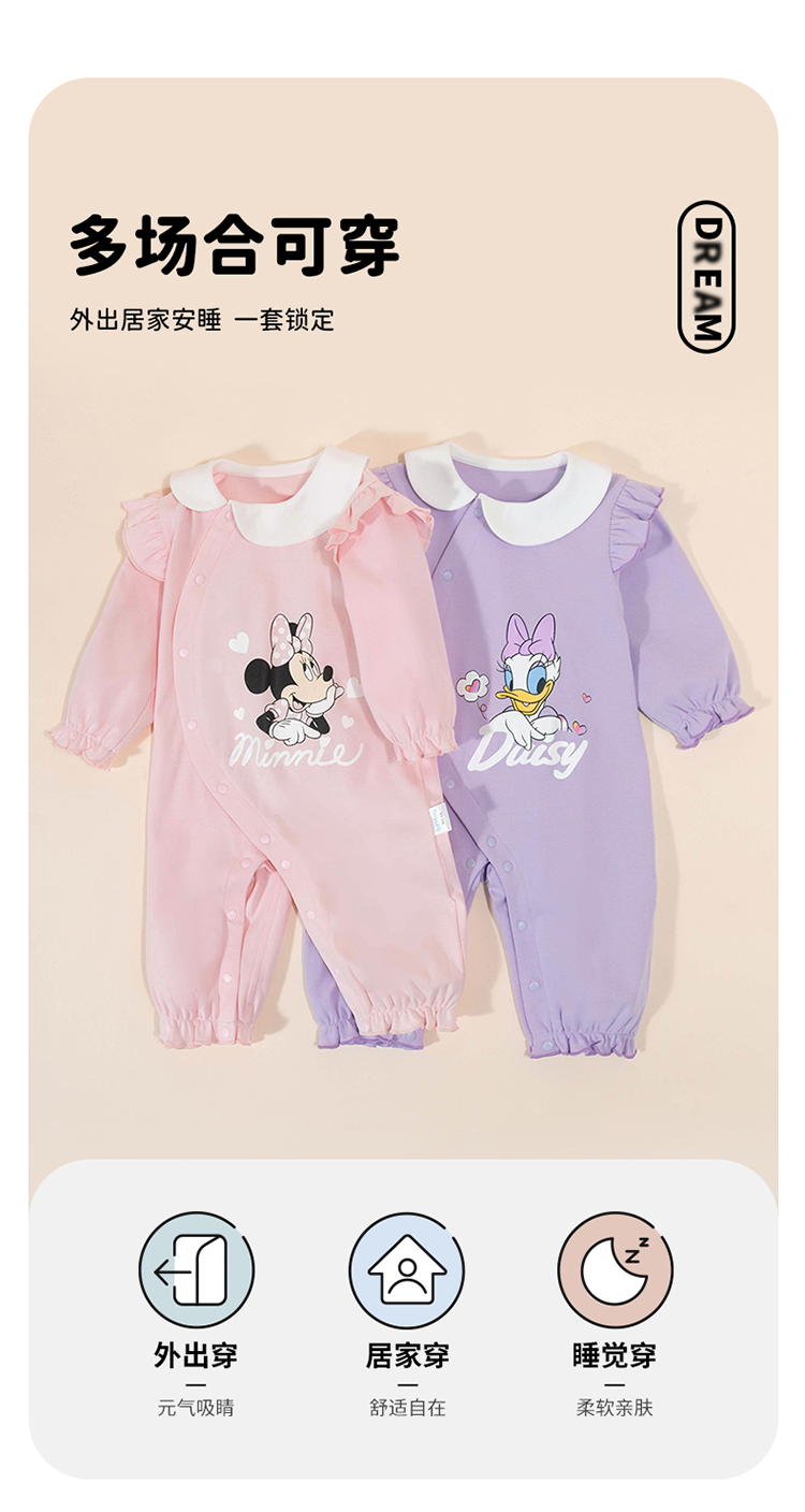 迪士尼(Disney)婴幼哈衣春秋女童侧开扣连体衣纯棉舒适连体服爬服 ZD1DL002