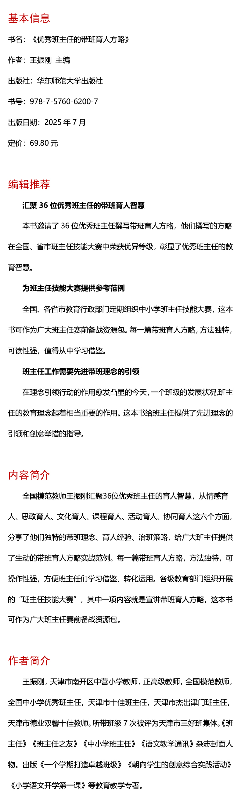 优秀班主任的带班育人方略 王振刚 大夏书系 班主任培训用书