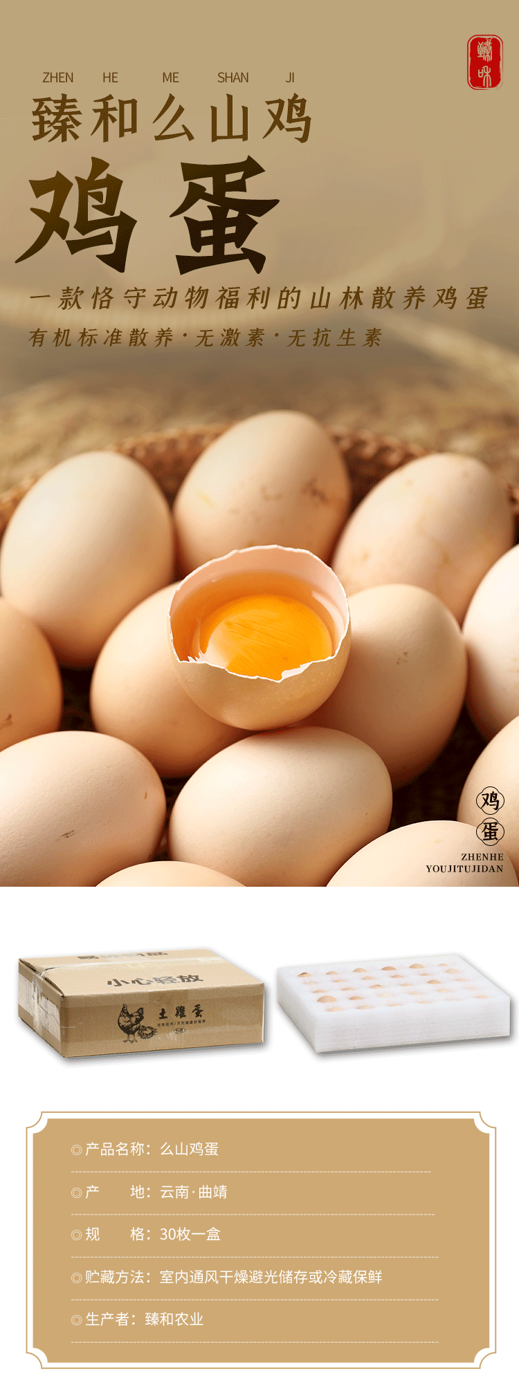 么山散养零抗鸡蛋 30枚/盒【基地直发】产地:云南曲靖 生产者:臻和农业【公平贸易农人定价】