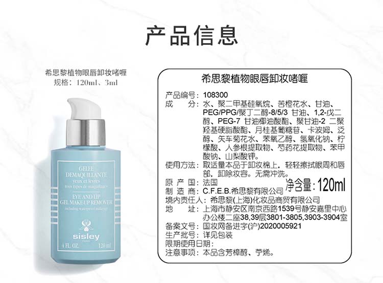 【1F】希思黎植物眼唇卸妆啫喱120ml