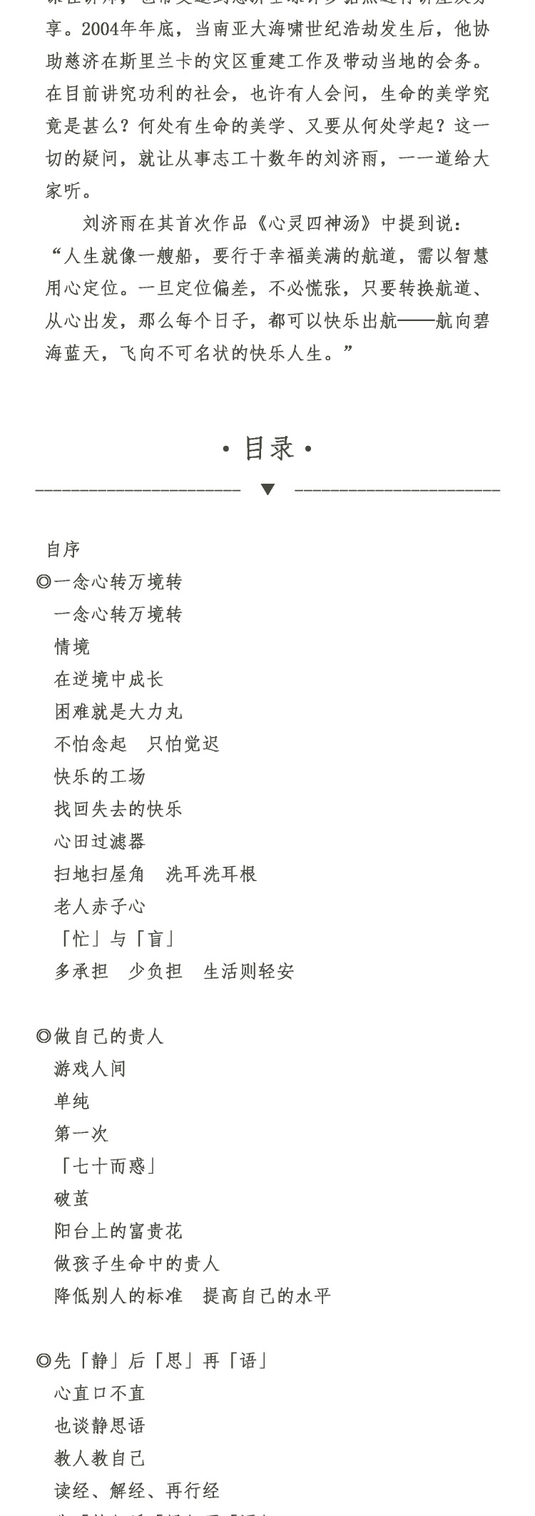 遇见静思书轩的那一刻起, 将发现,你、我、他,可以影响世界…… 盼透过有形的书籍来推展静思人文,使大家深入了解并吸收其中无形的精华来净化人心。