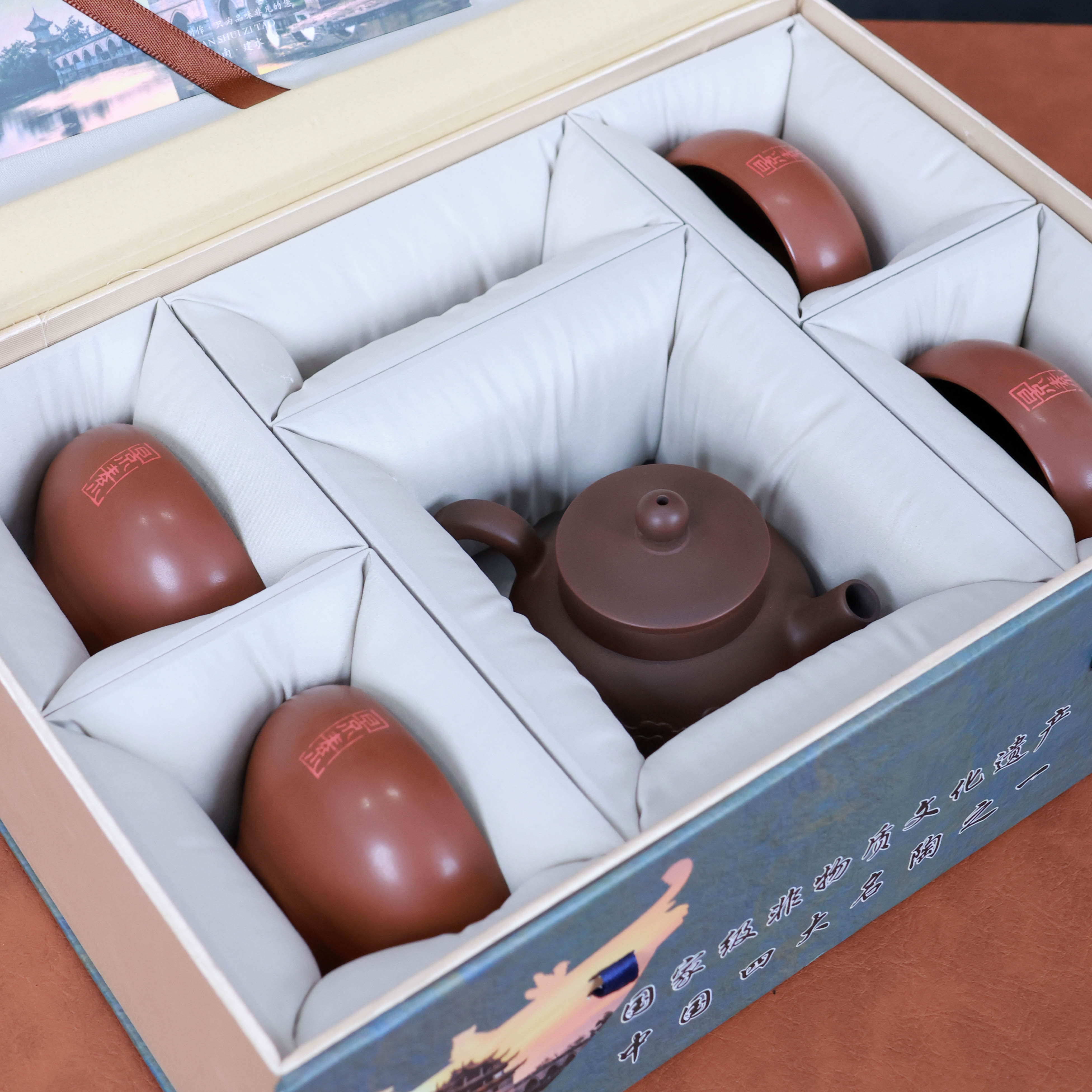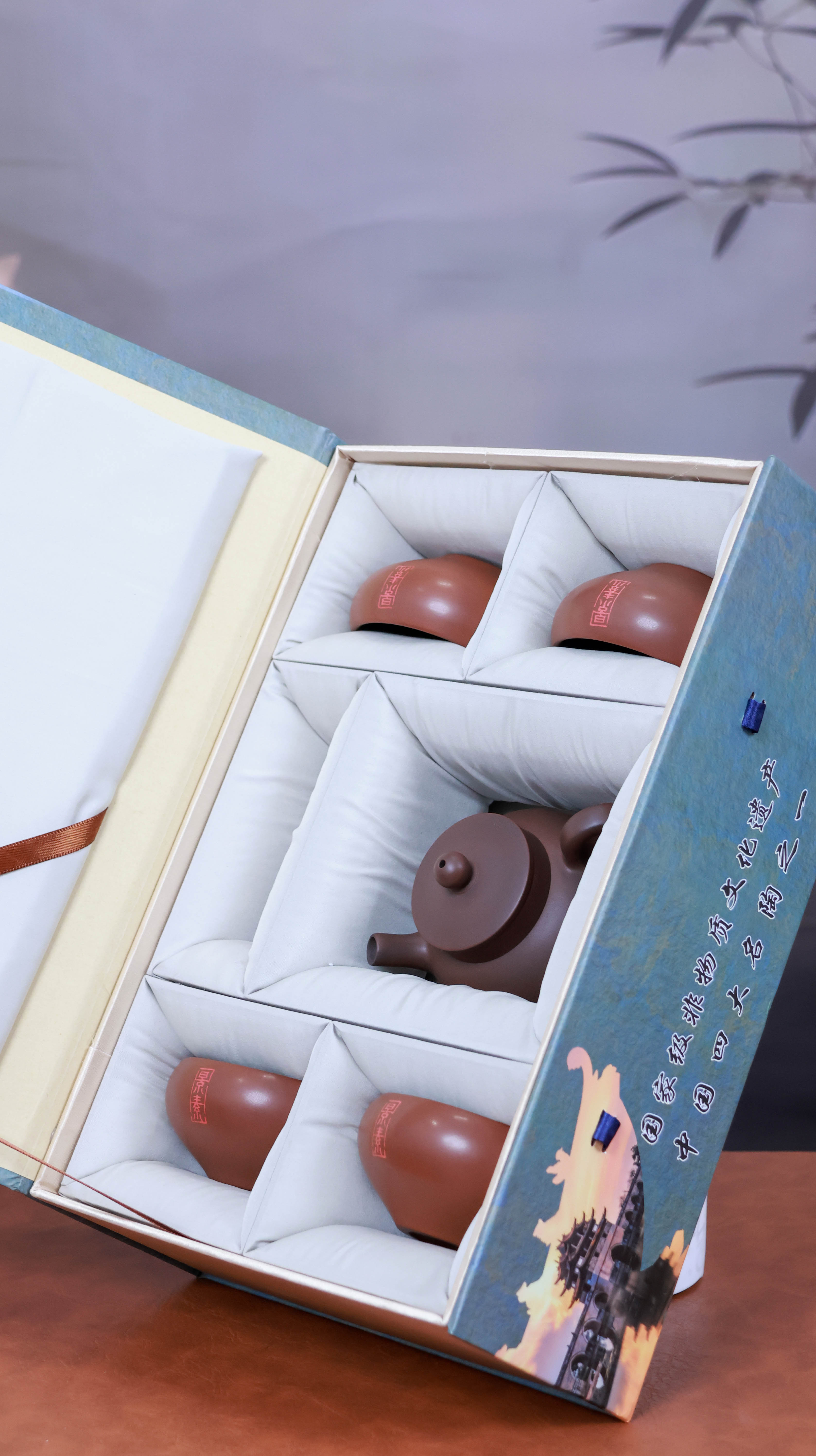 一壶4杯礼盒+紫陶特烧(坐禅杯)*4+建陶线雕薄胎壶
