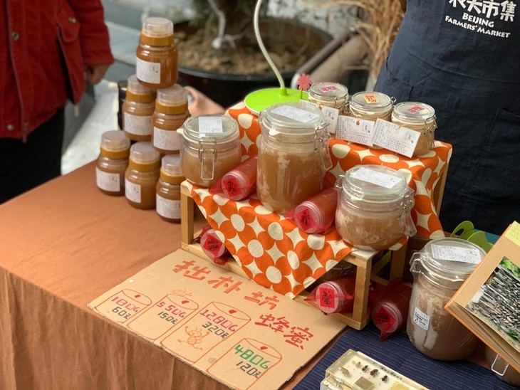 ▲郭涛在市集现场与集友们分享甜“蜜”
