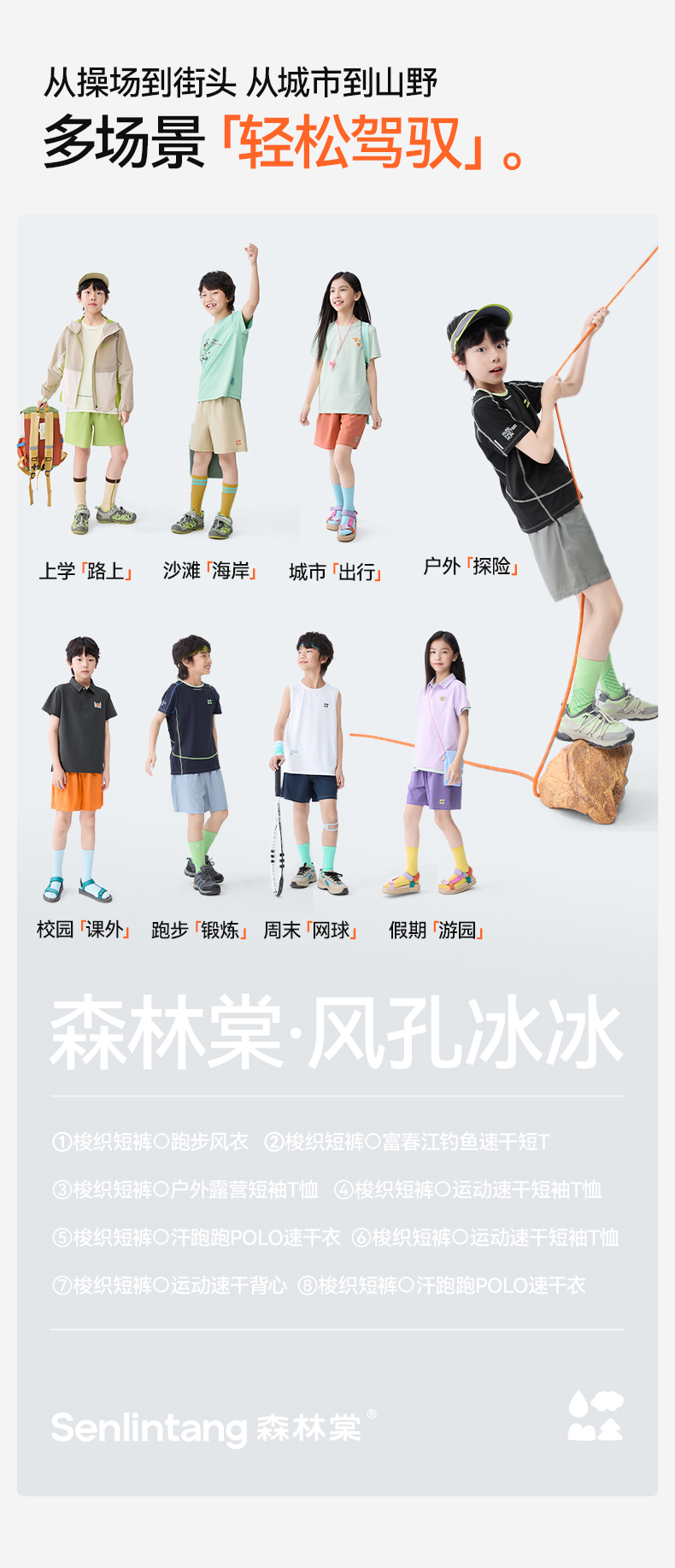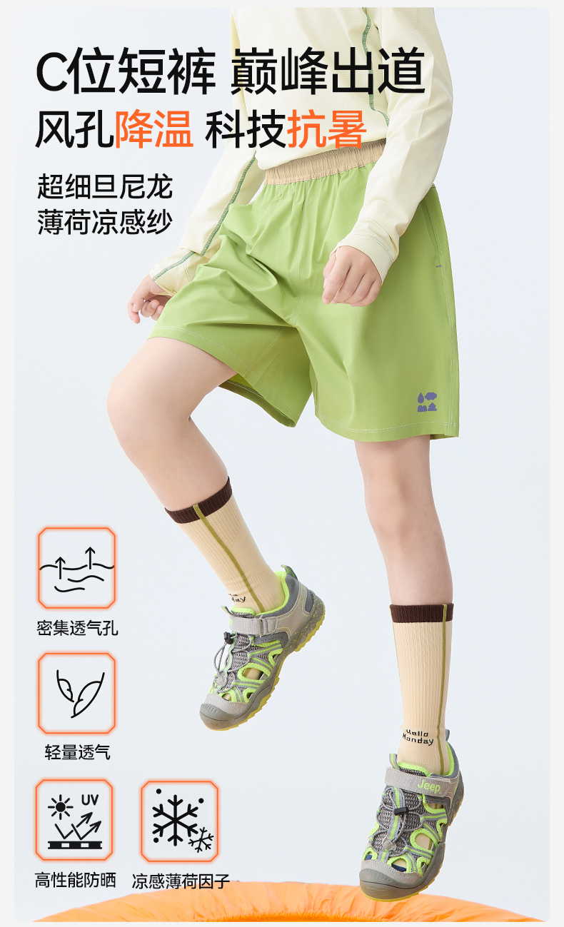 【风孔冰冰梭织短裤】森林棠25夏款儿童轻薄凉感透气休闲短裤五分裤41062507