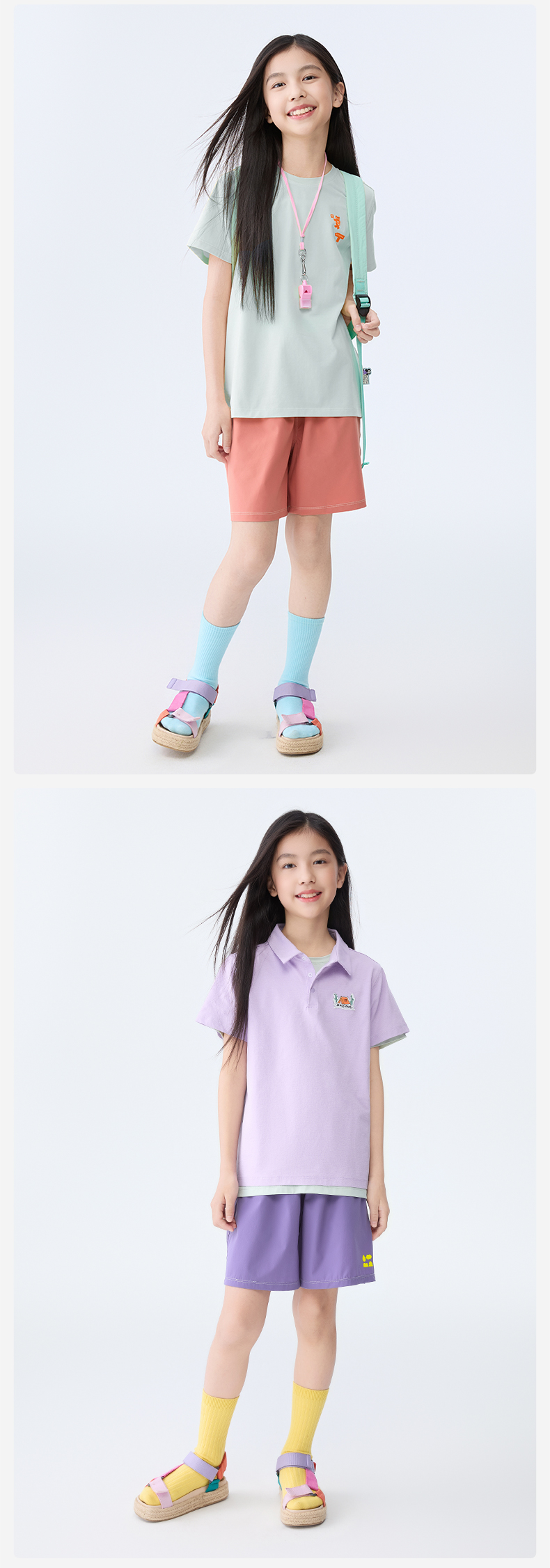 这条裤子轻薄垂顺,穿着冰冰凉凉又透气,撞色的裤腰带设计,立马吸引小朋友的视线!