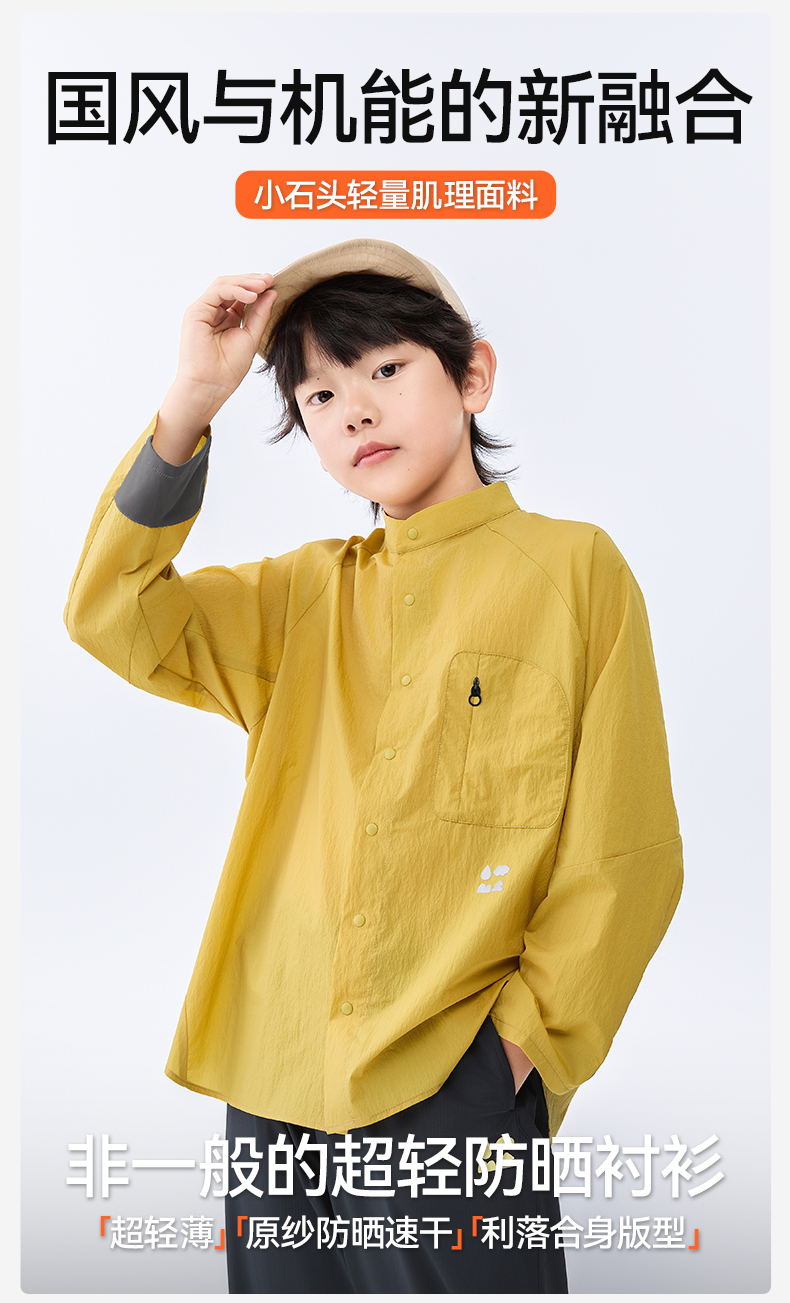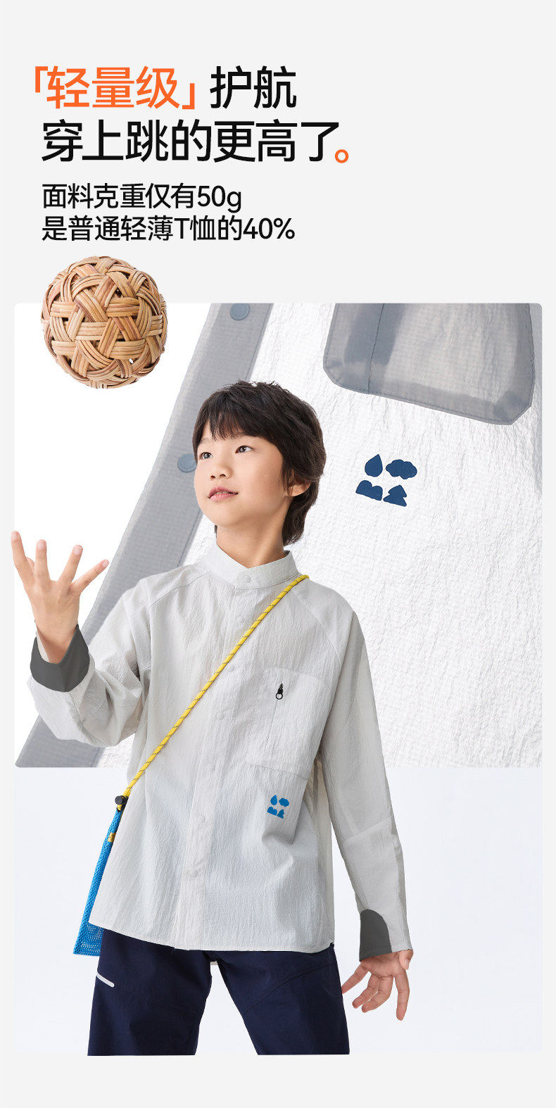 【凉感防晒速干衬衫】森林棠25夏款儿童衬衫 吸湿速干男女童户外防晒上衣20522503