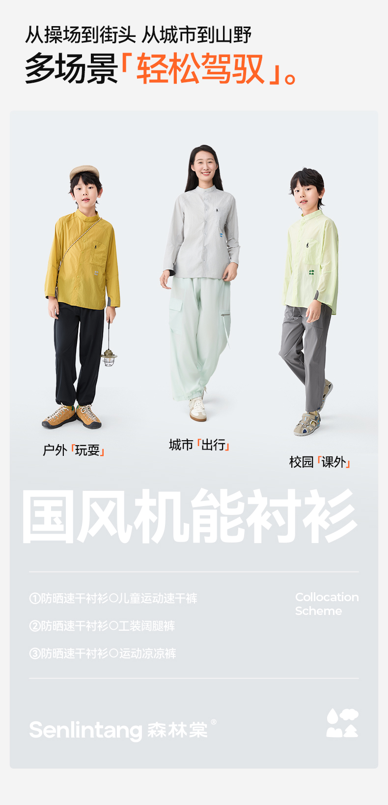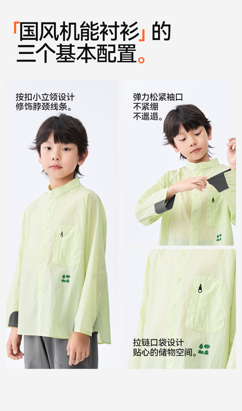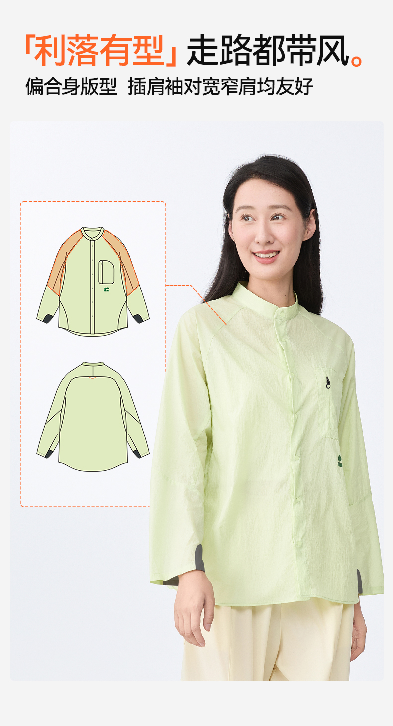 推荐理由:一件国风立领户外衬衫,同时具有防晒、吸湿速干性能