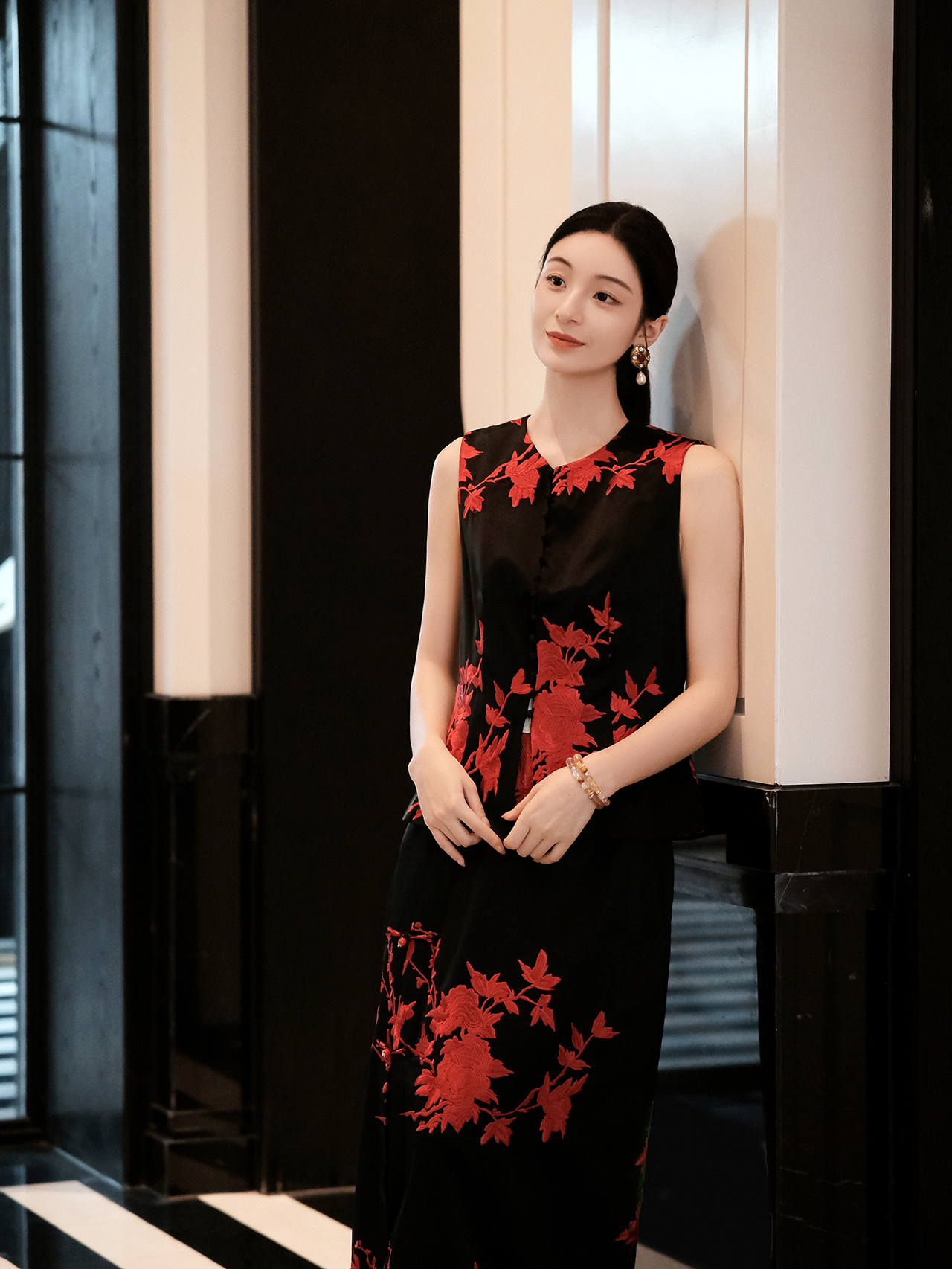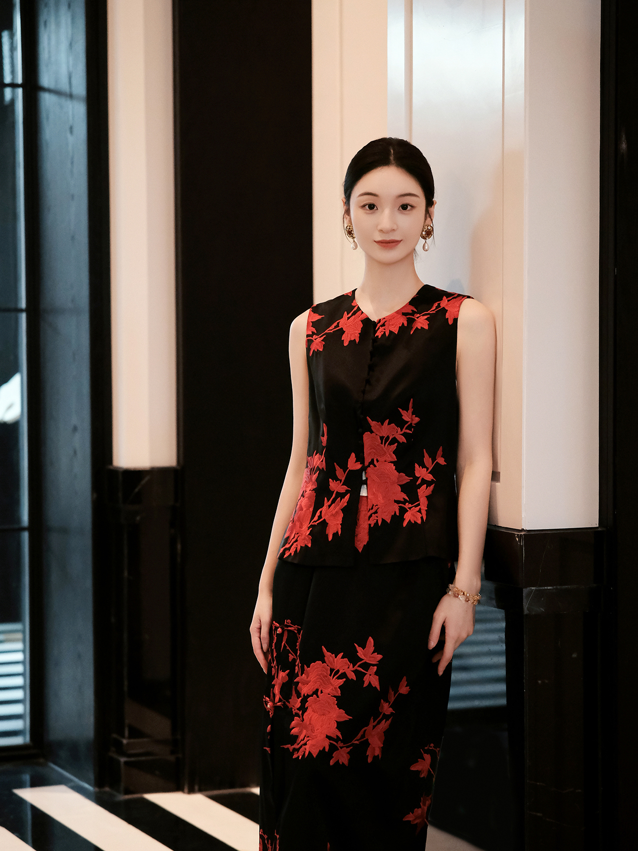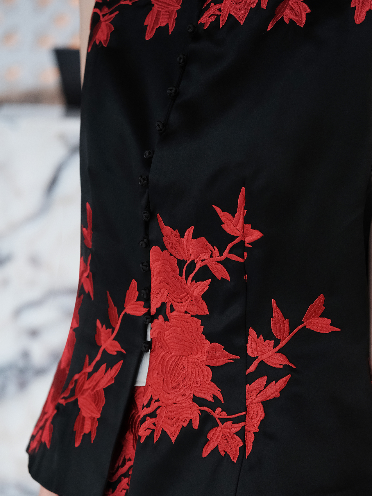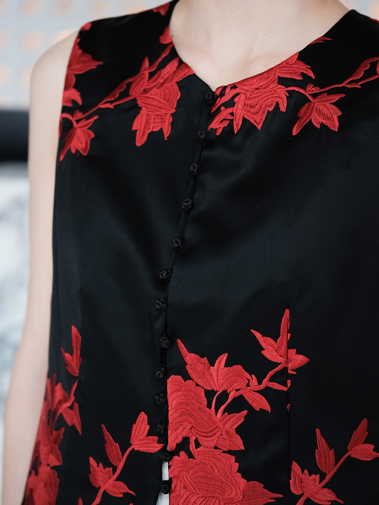 盛唐婧| 重磅三醋酸刺绣对襟修身马甲-红色