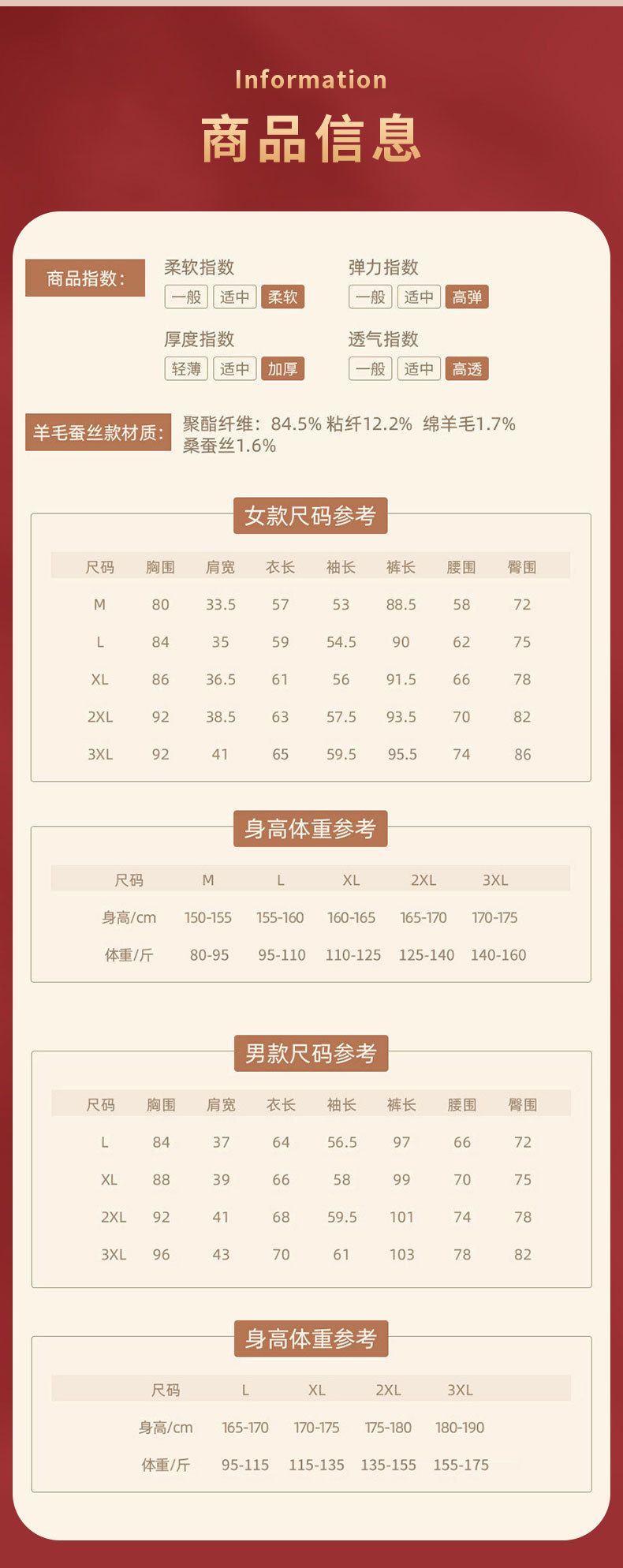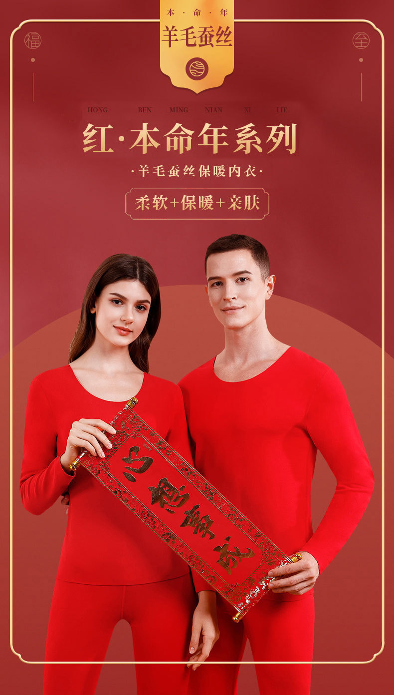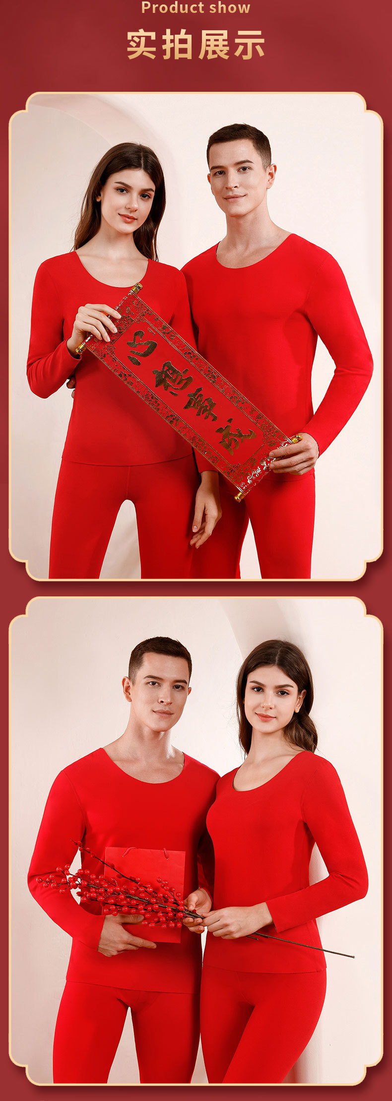 【本命年系列❗️羊毛蚕丝保暖内衣】套装 蛇年大红色 男女羊毛蚕丝 情侣结婚无痕秋衣秋裤不易变形父亲节礼物新年礼盒年货礼盒